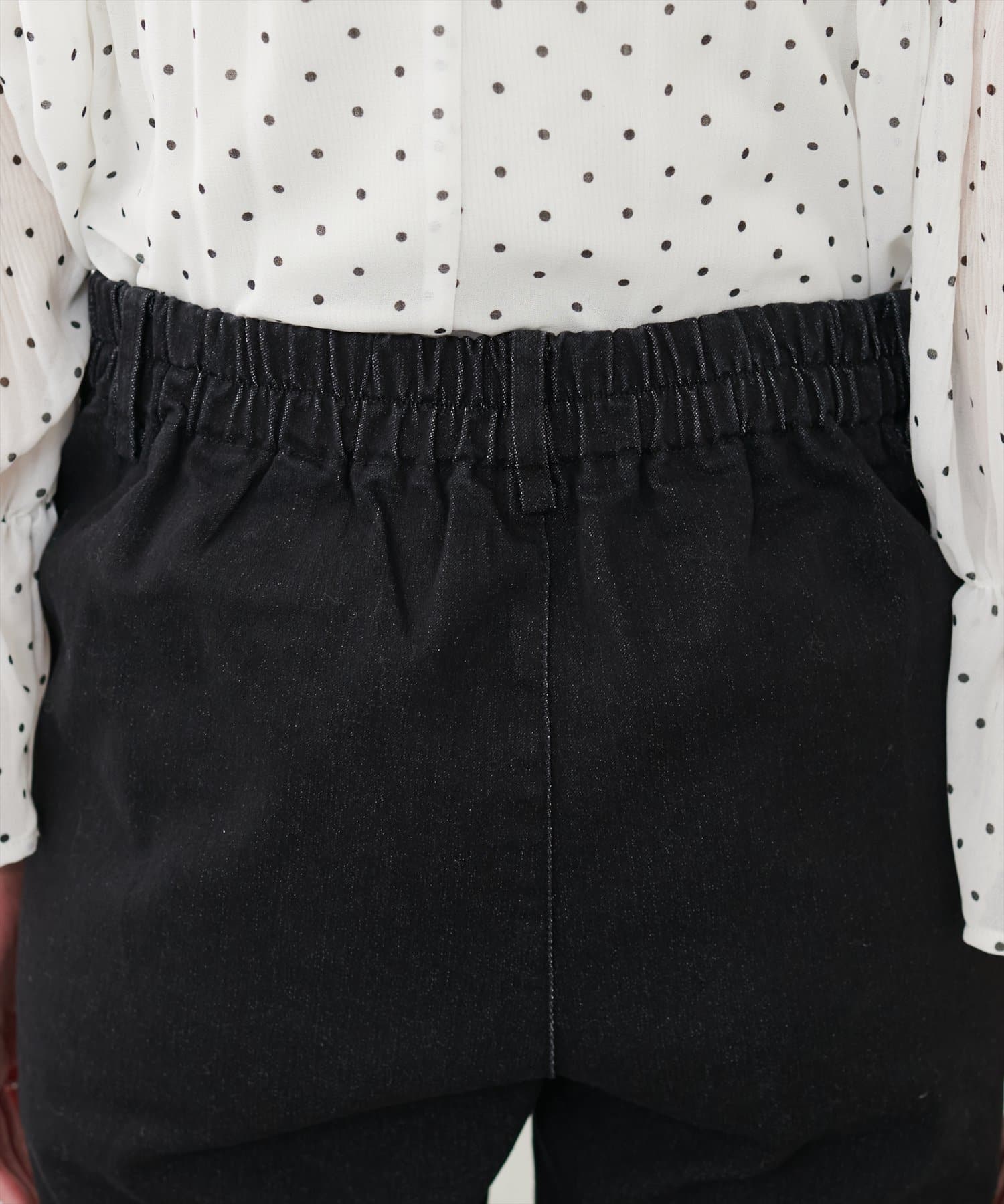 ファスナーは付いていませんが、ウエスト後ろはゴム仕様なので着脱もラクラク。