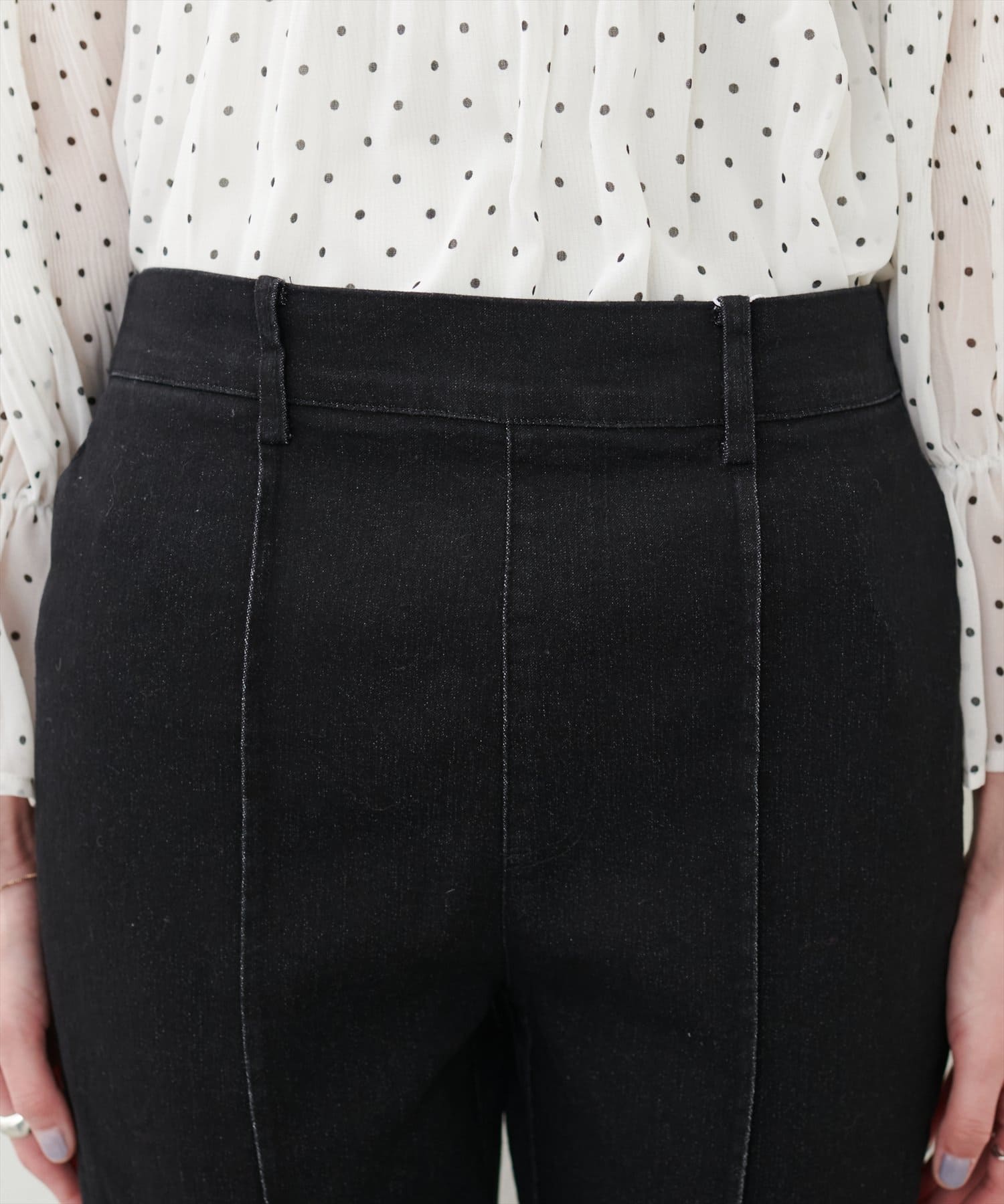 存在感のあるタックとセンタープレスが縦ラインを強調し、スタイルアップ効果が期待できます。