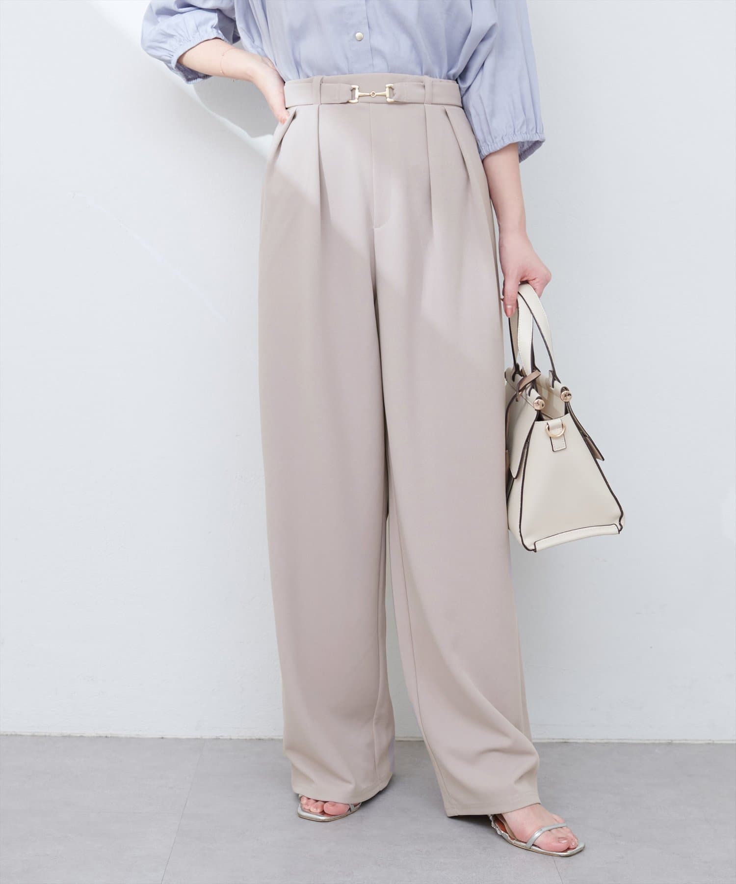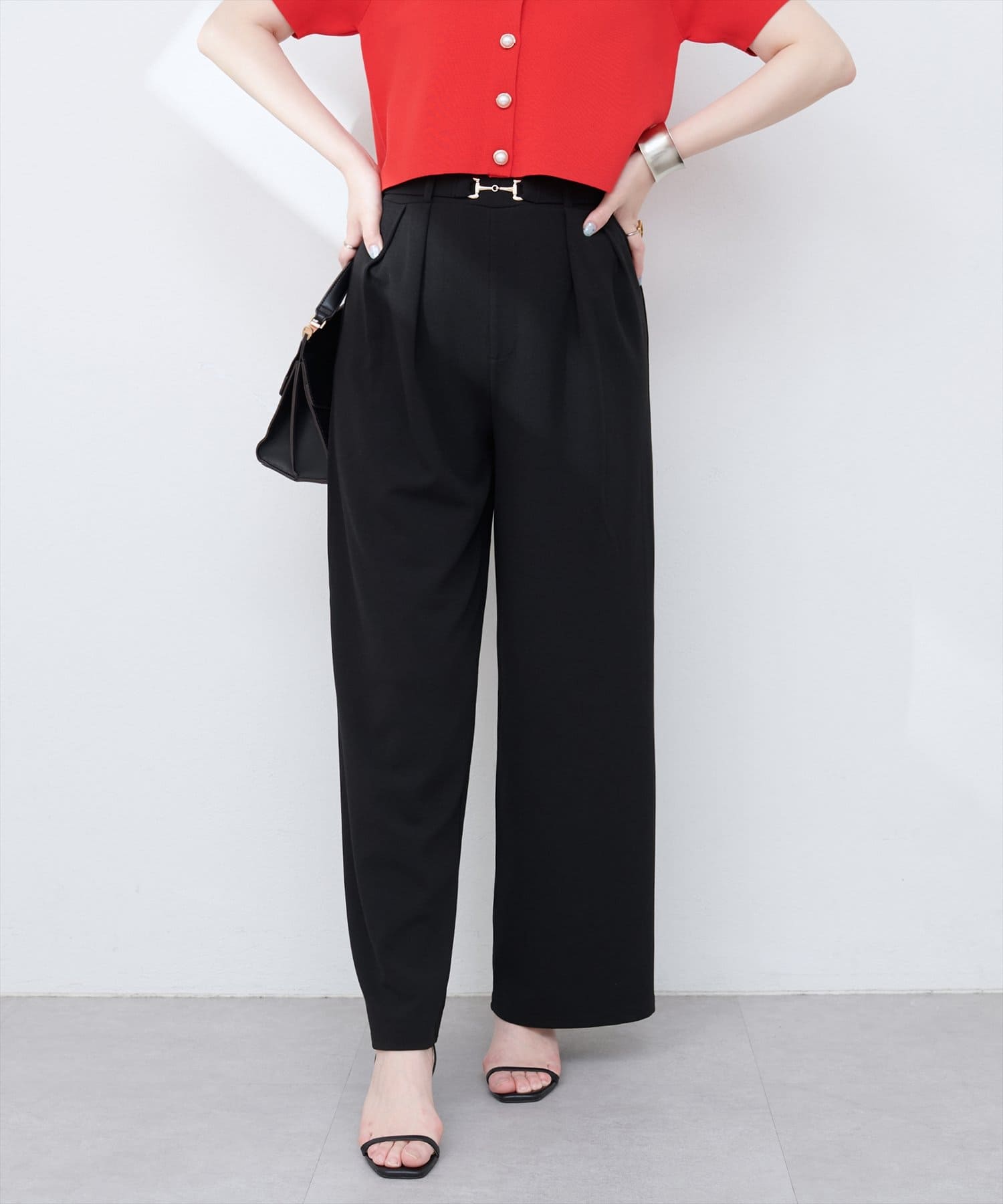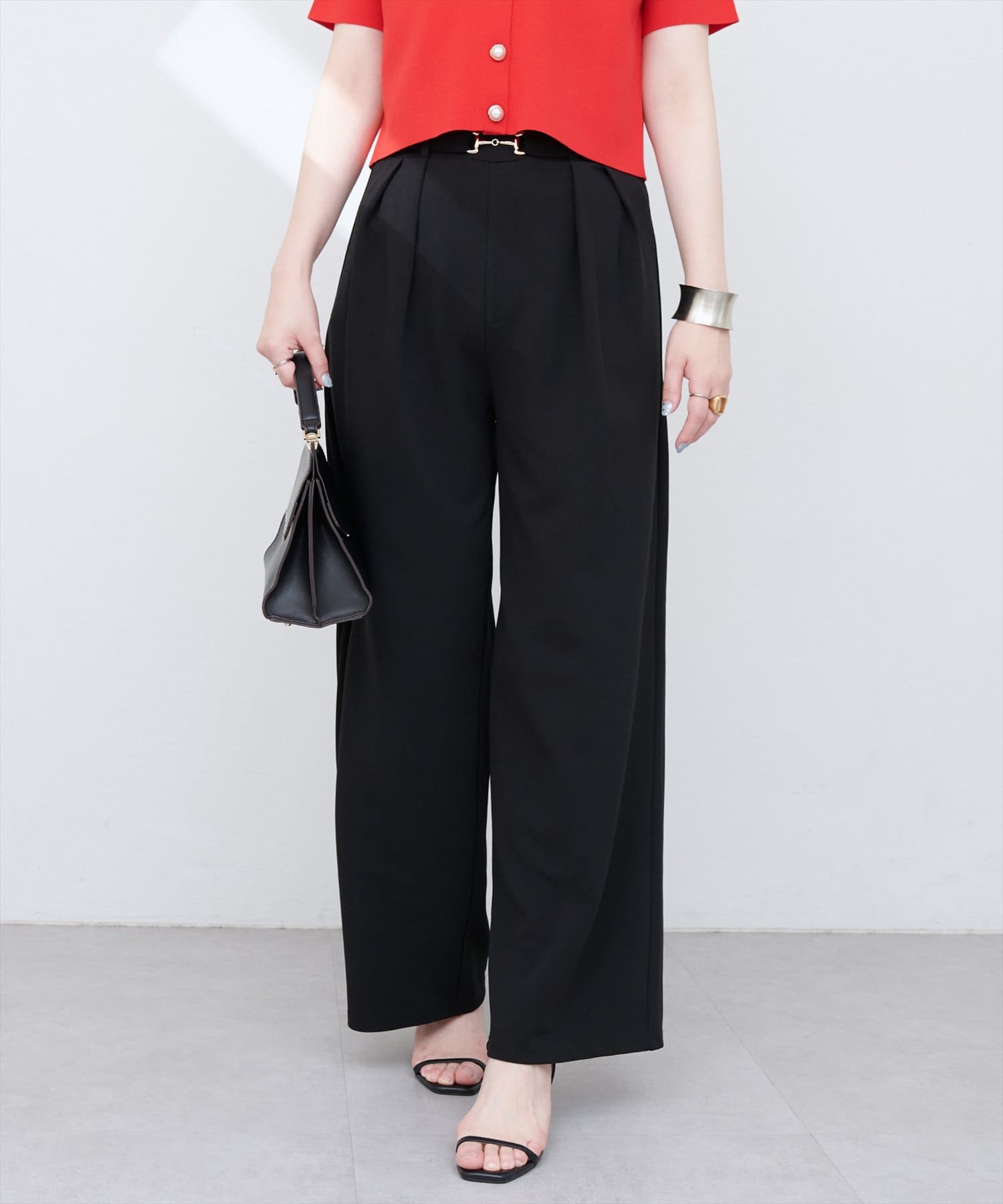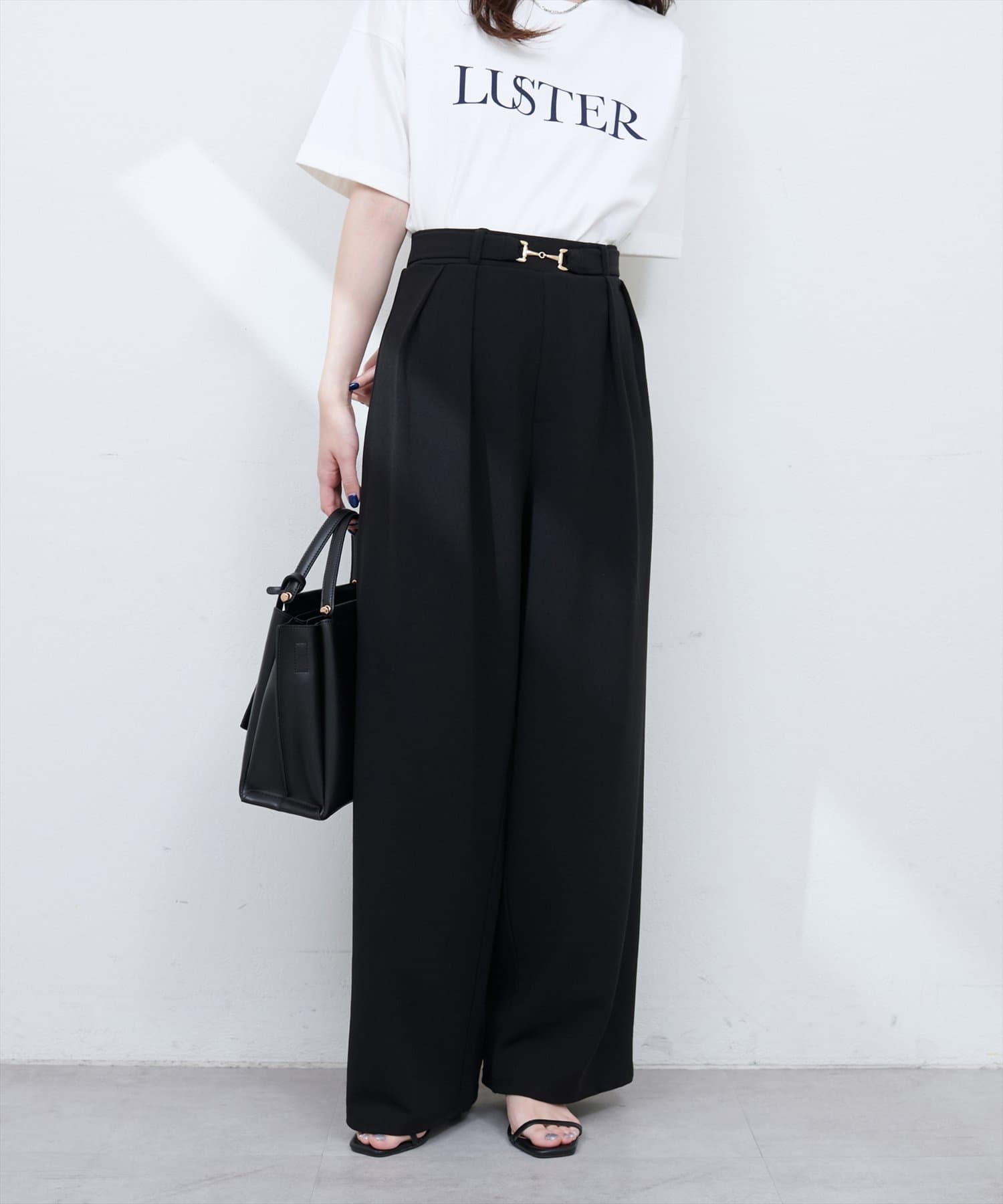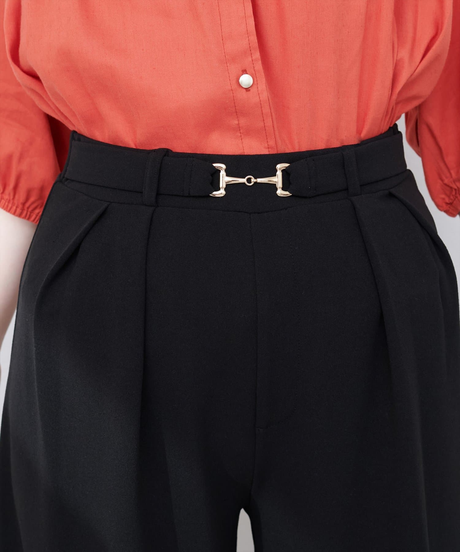 ハイウエストデザインと、ゴールドのビットベルトがアクセントになり、スタイルアップ効果も叶えます。