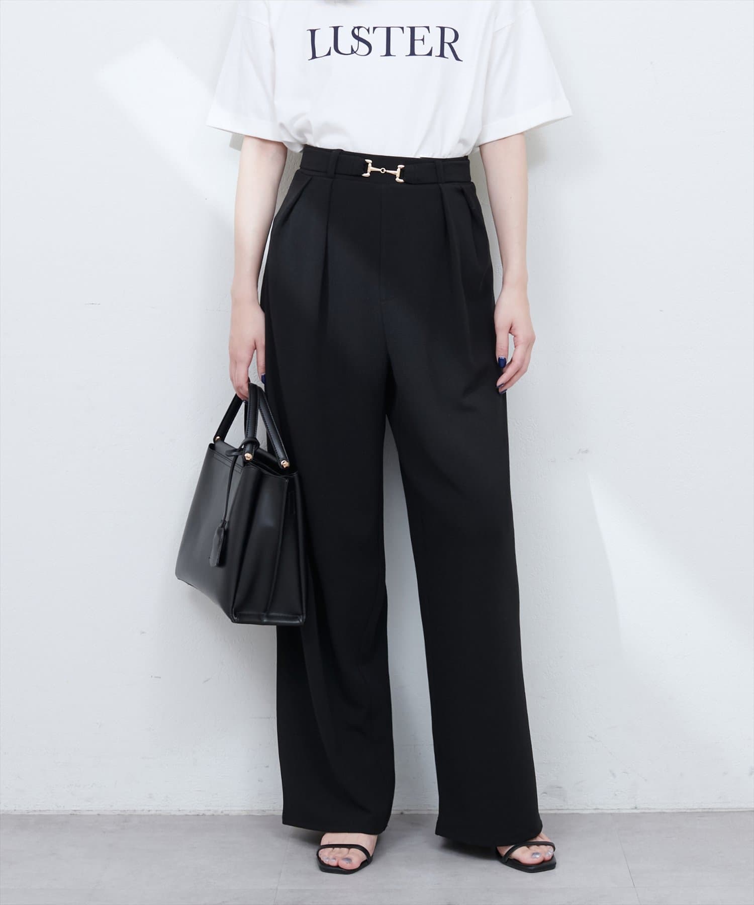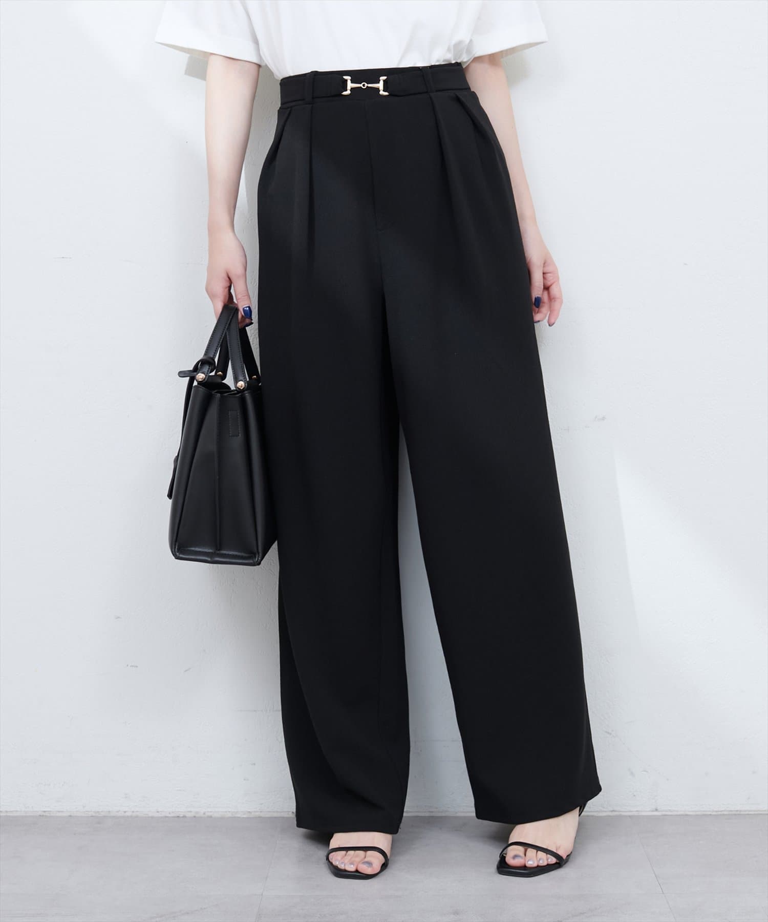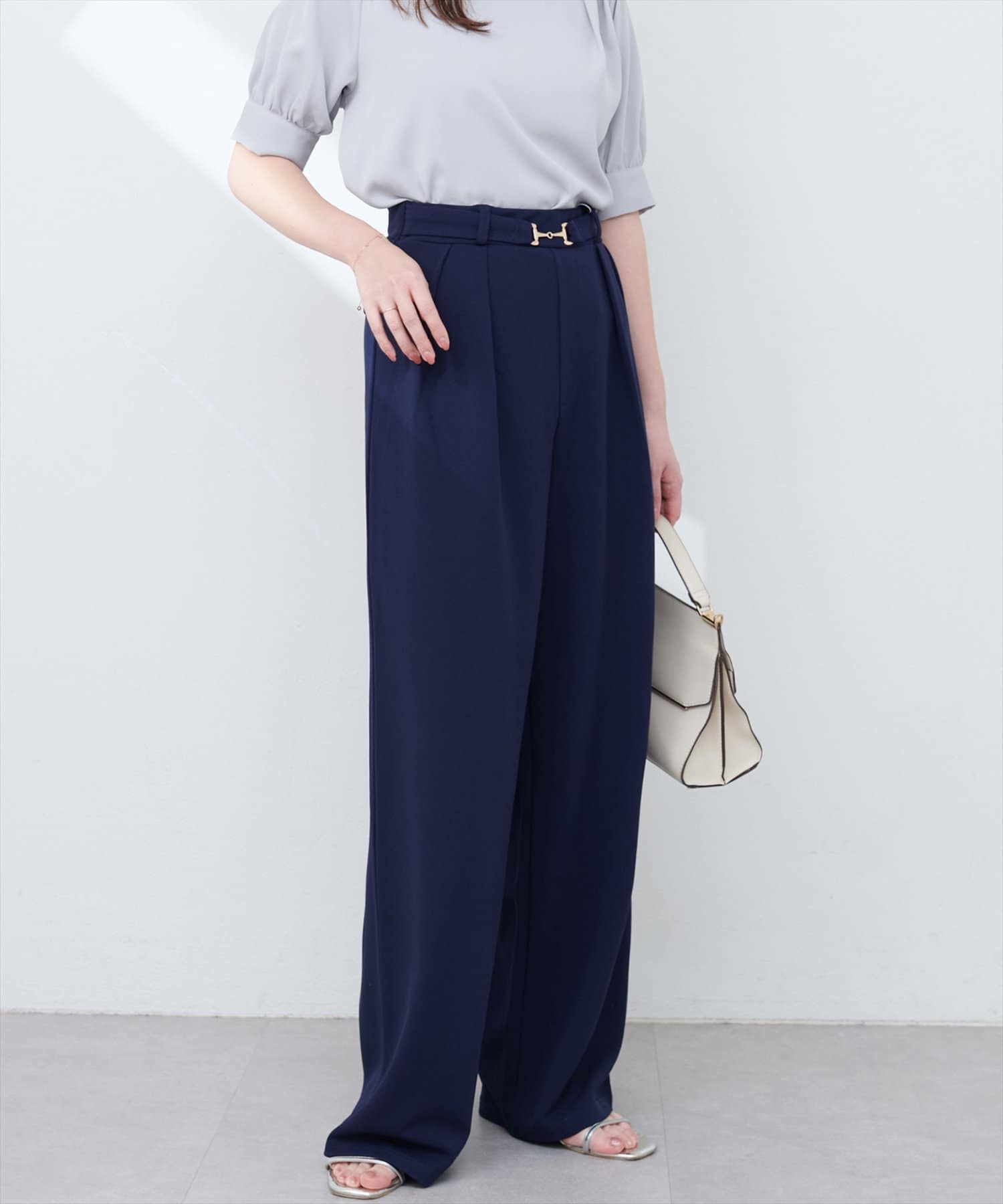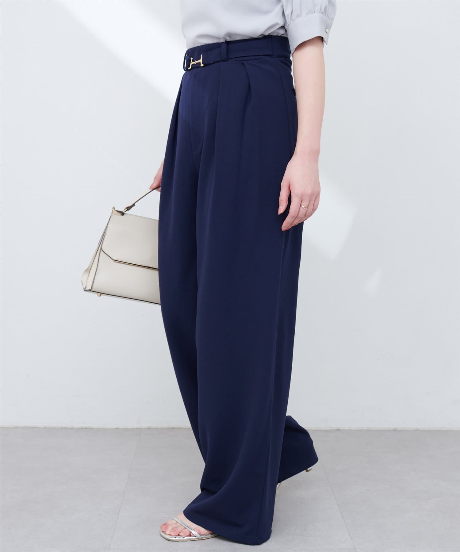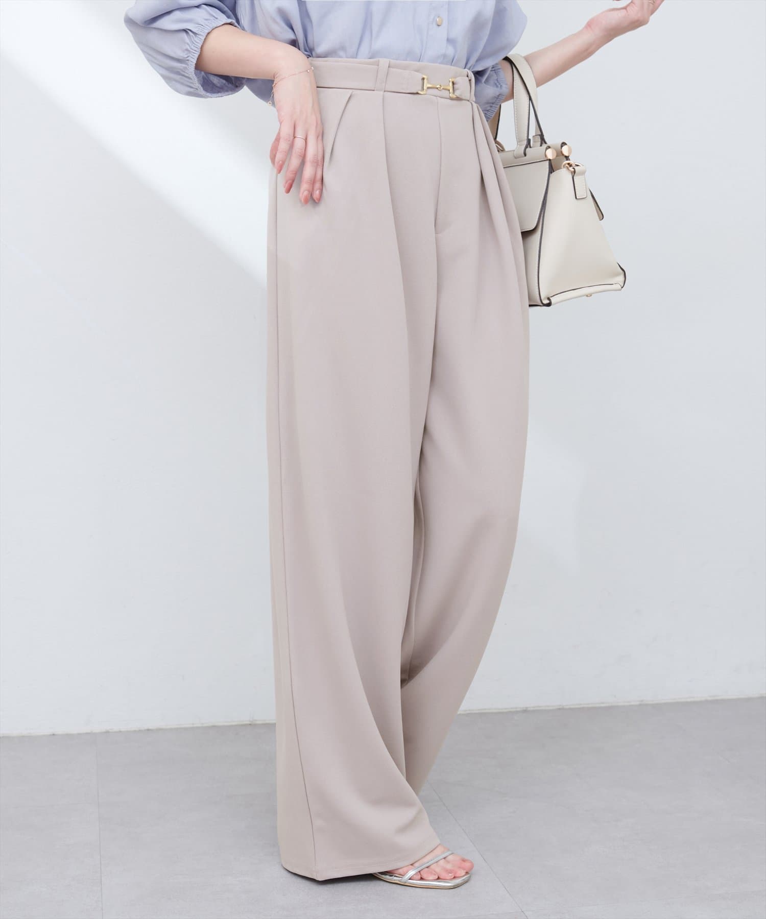 ハイウエストデザインと、ゴールドのビットベルトがアクセントになり、スタイルアップ効果も叶えます。
