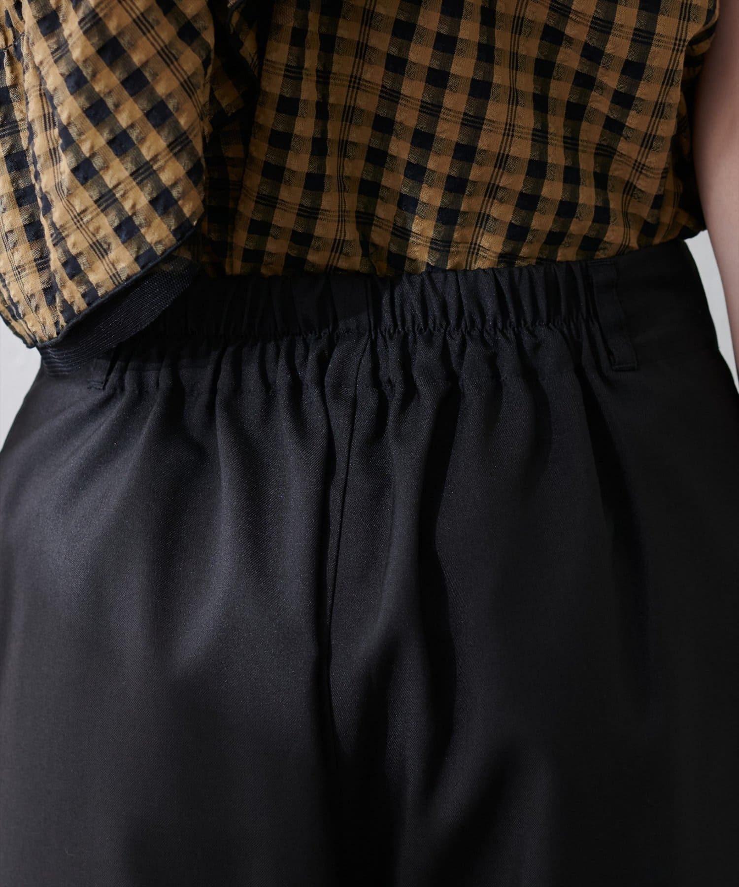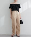 ウエスト周りはすっきりとしたデザインなので、トップスをインしてもアウトにしてもバランス良く決まります。