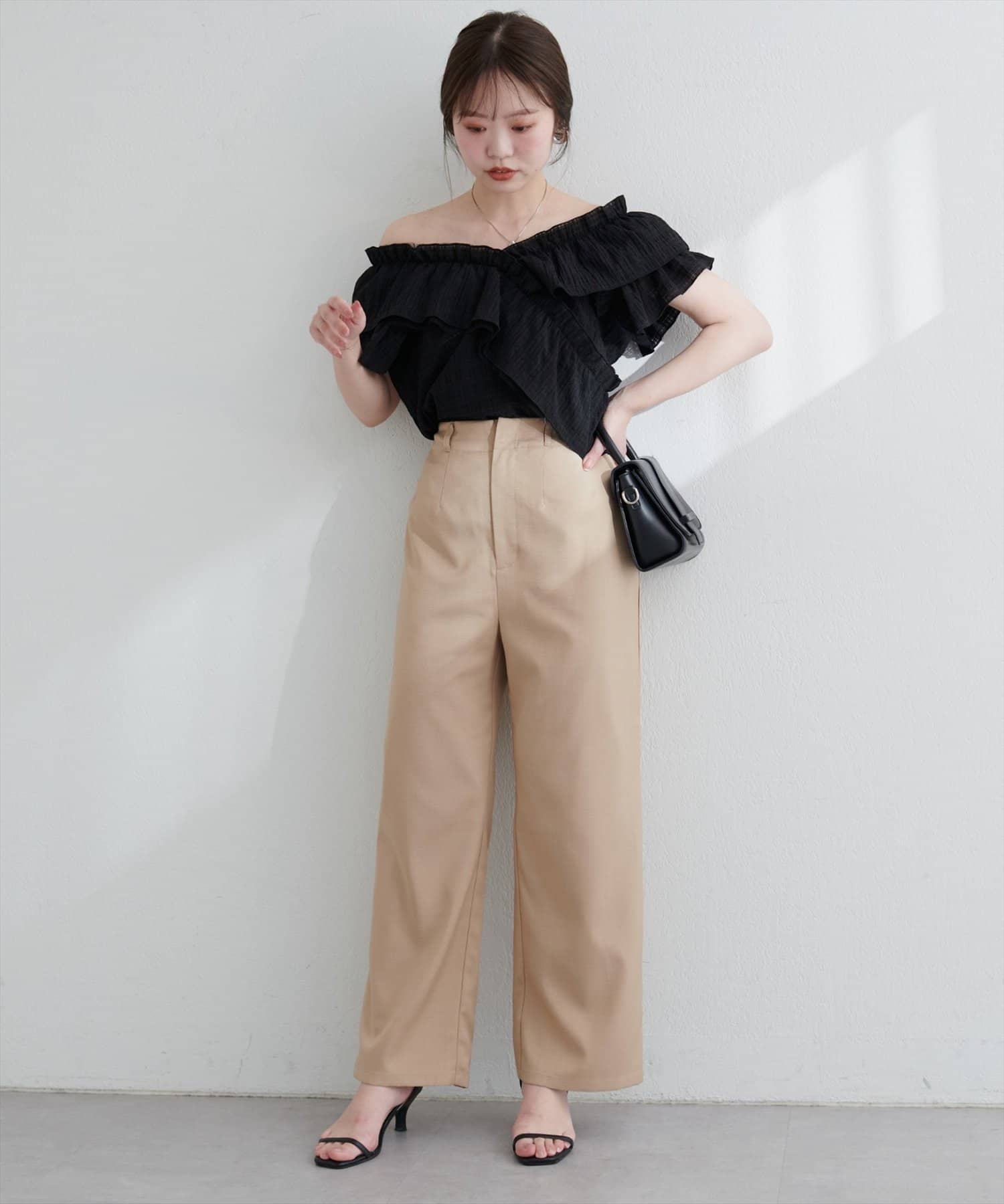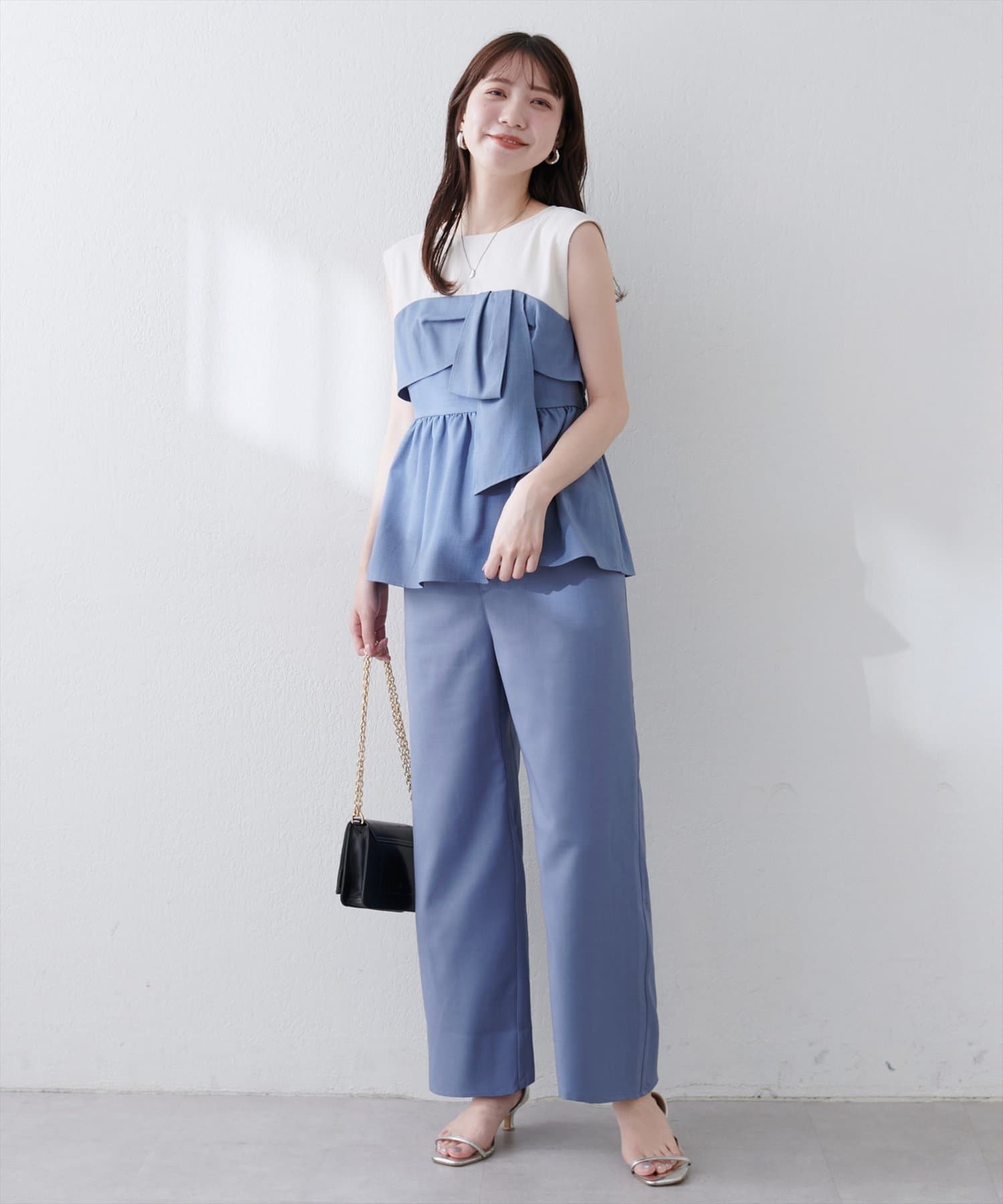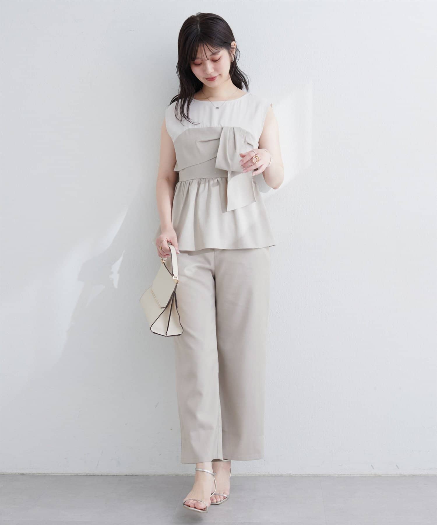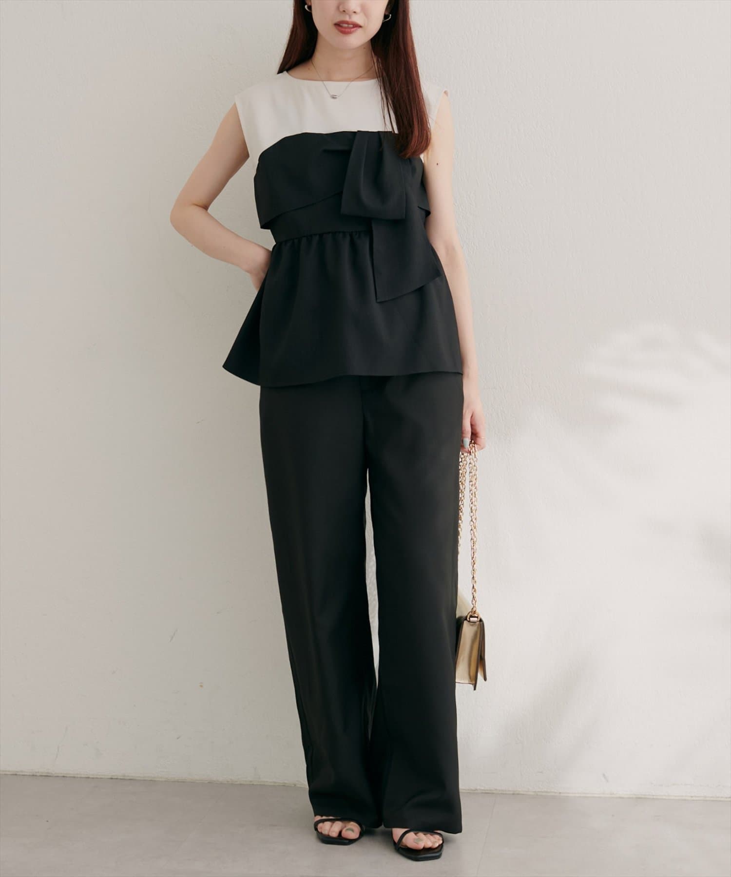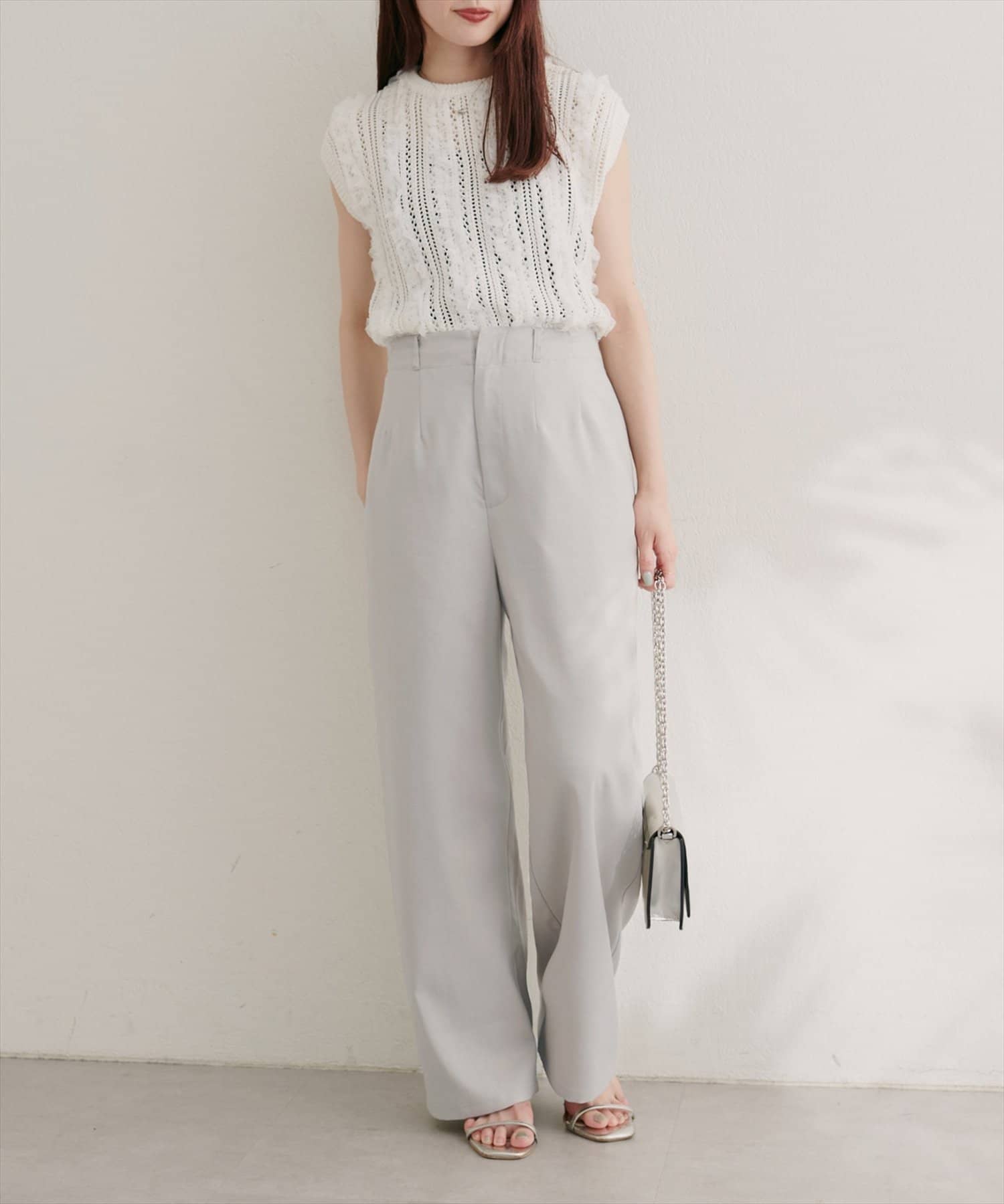 高めのウエスト位置が脚長効果を発揮し、スタイルを美しく見せてくれます。