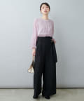シンプルな無地でありながら華やさ抜群のアイテムなので、模様のあるボトムでもまとまります。