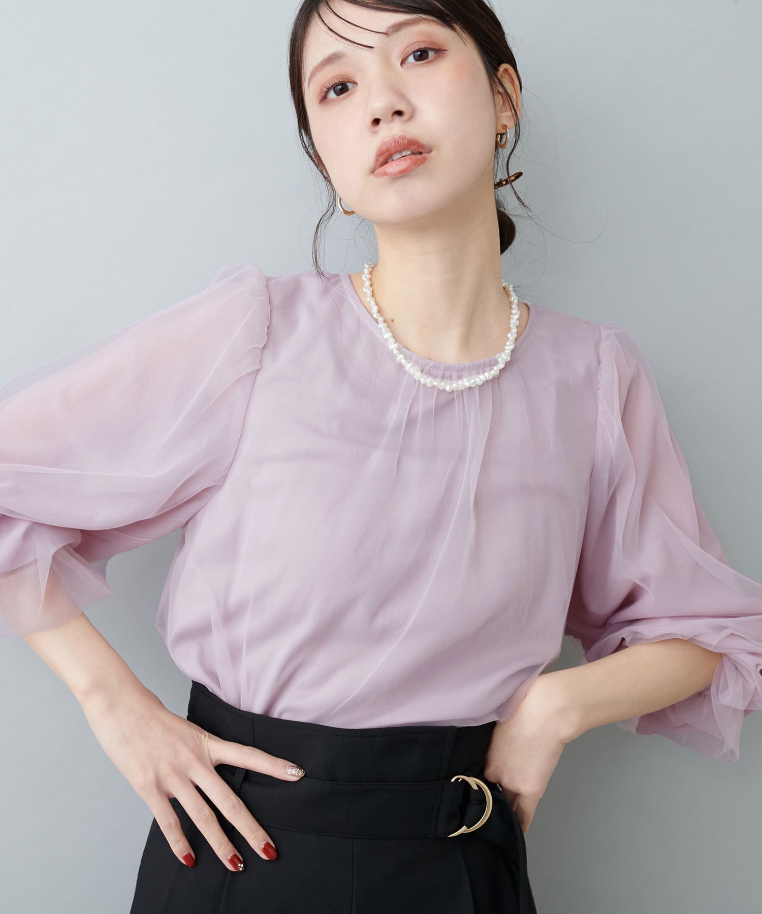 シンプルにお召し頂くだけで、女性らしさがアップする上品ブラウス。