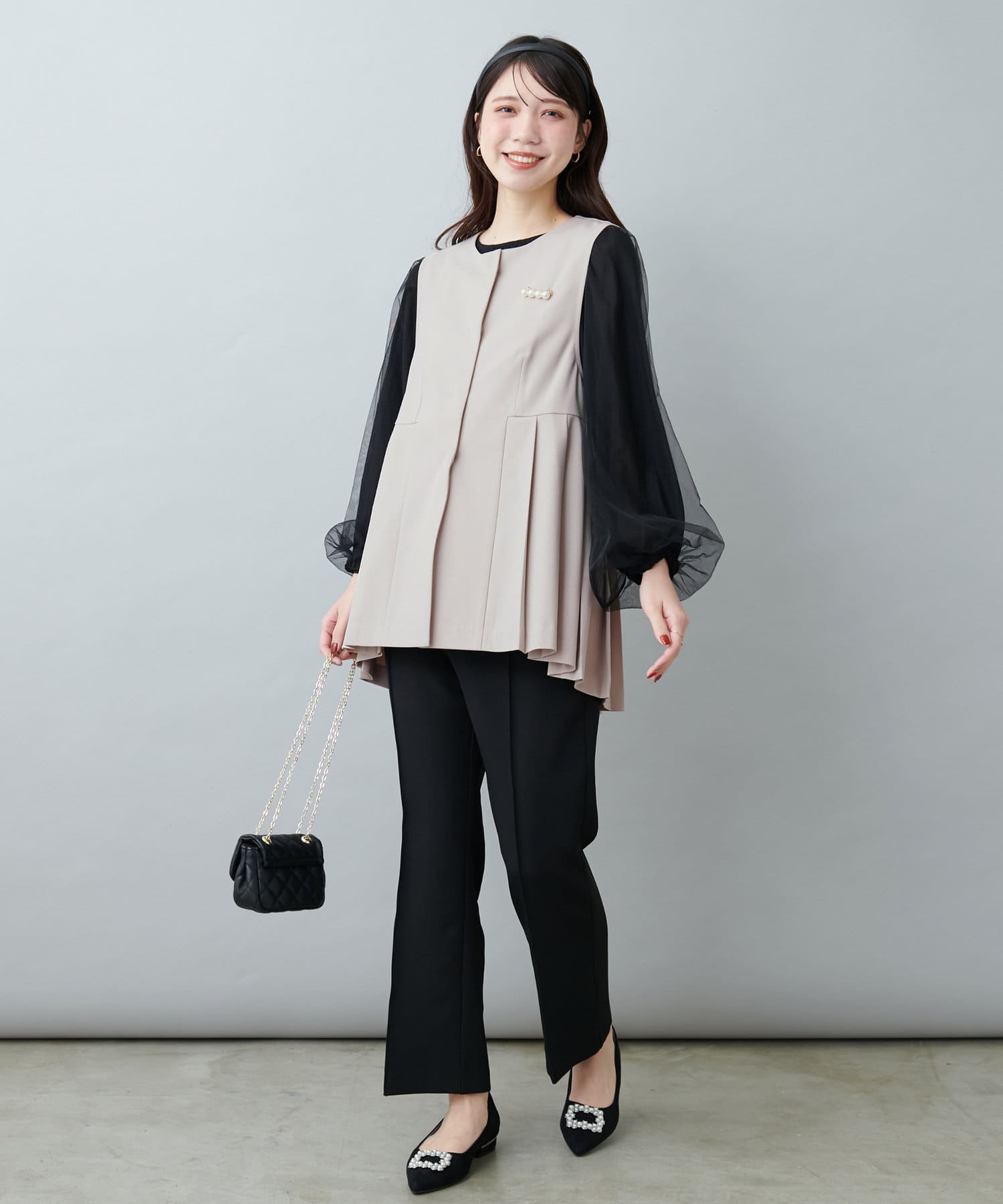 スラックスパンツを合わせて頂いても上下でメリハリのあるコーデに仕上がります。