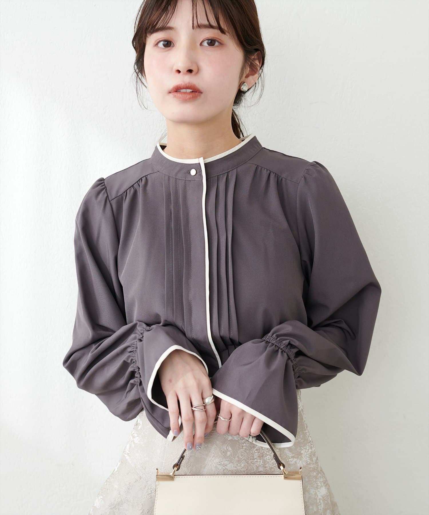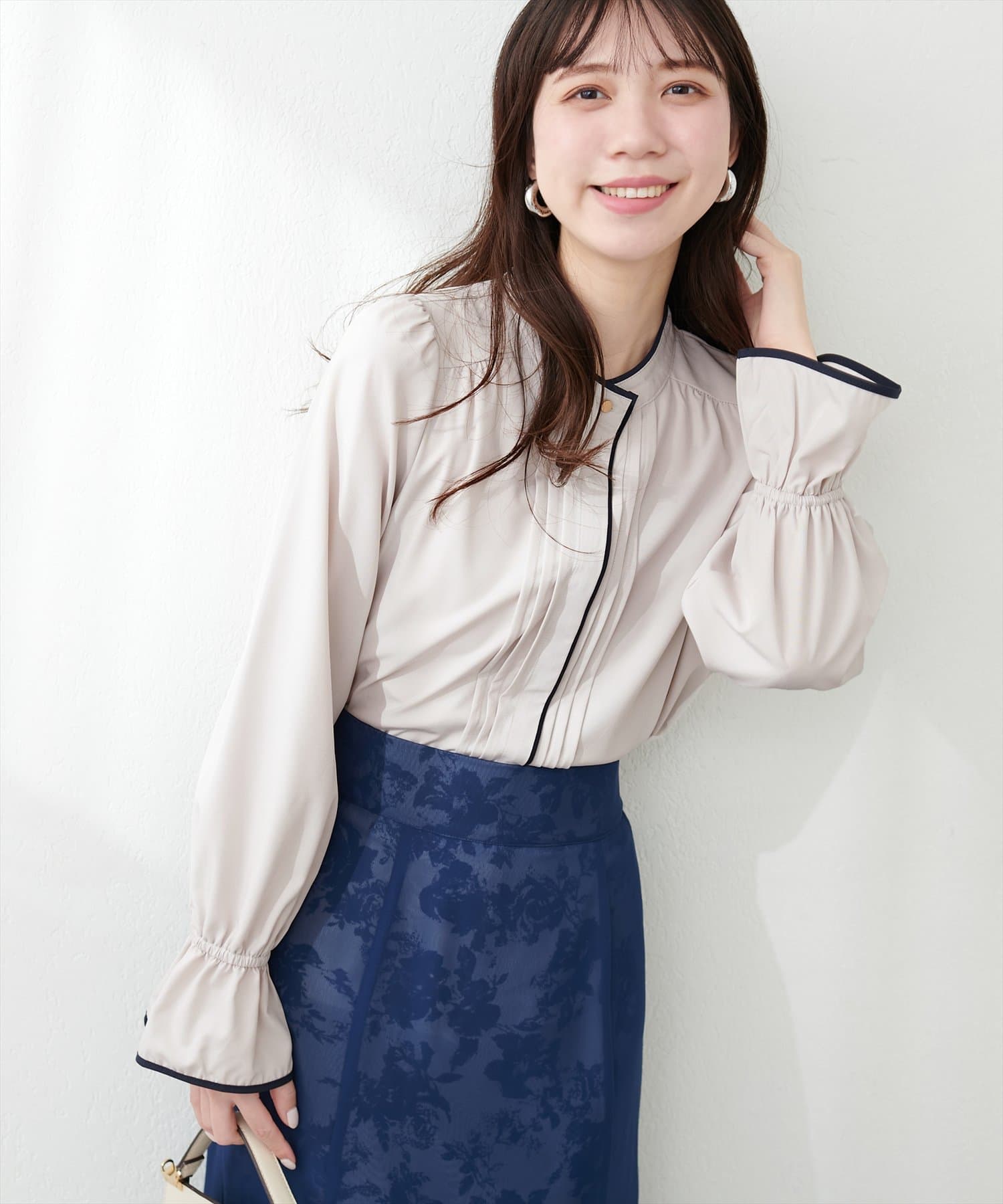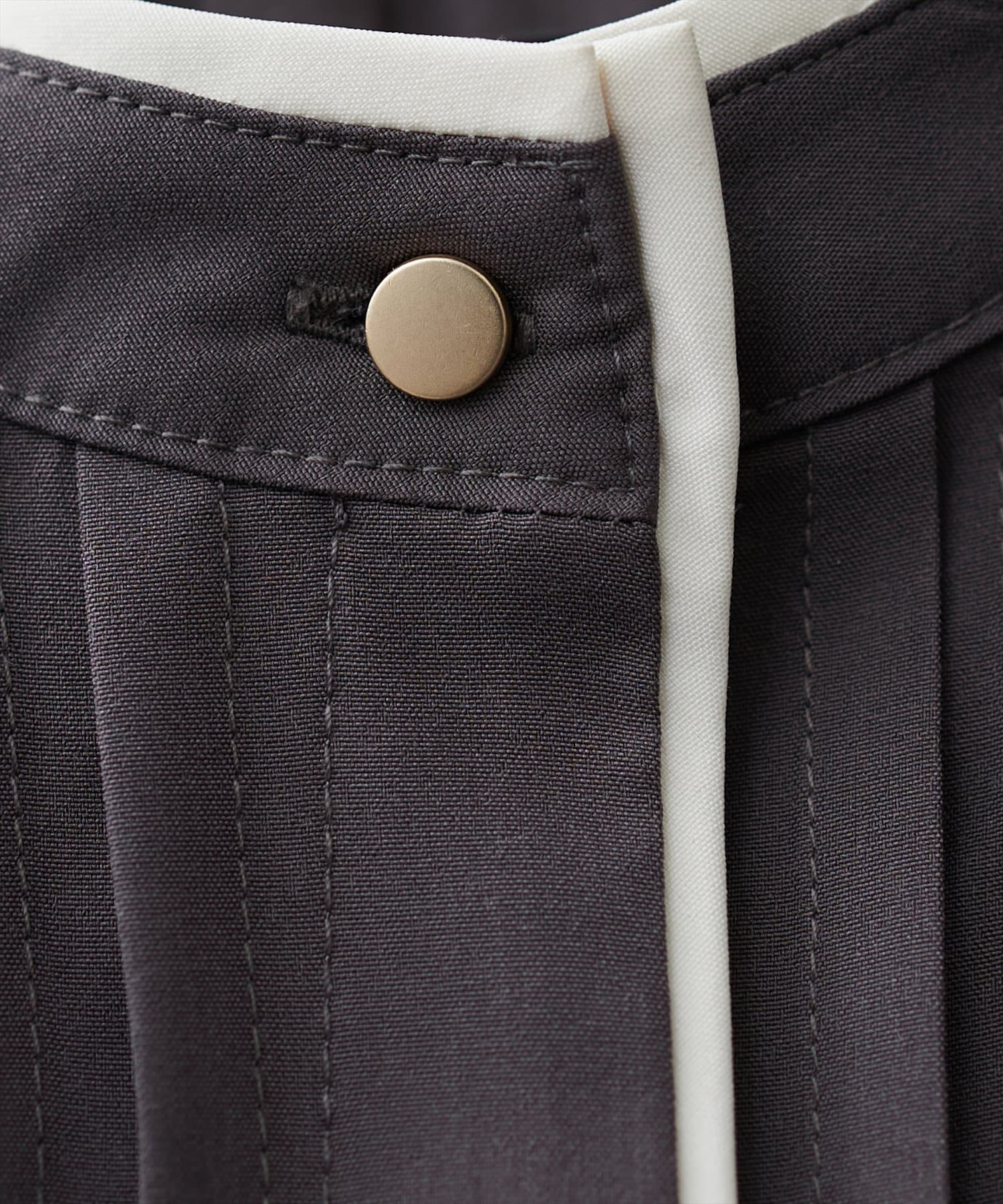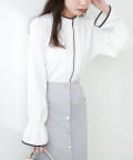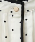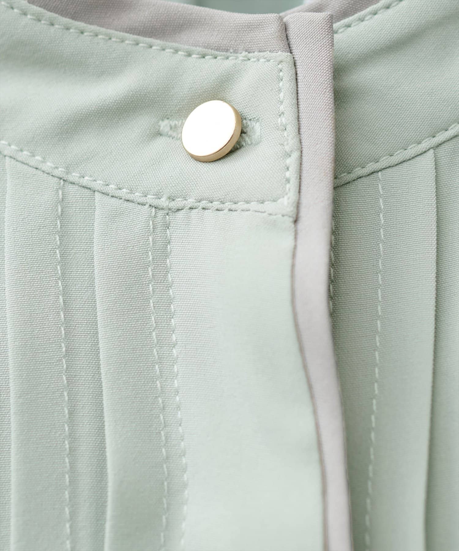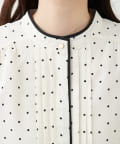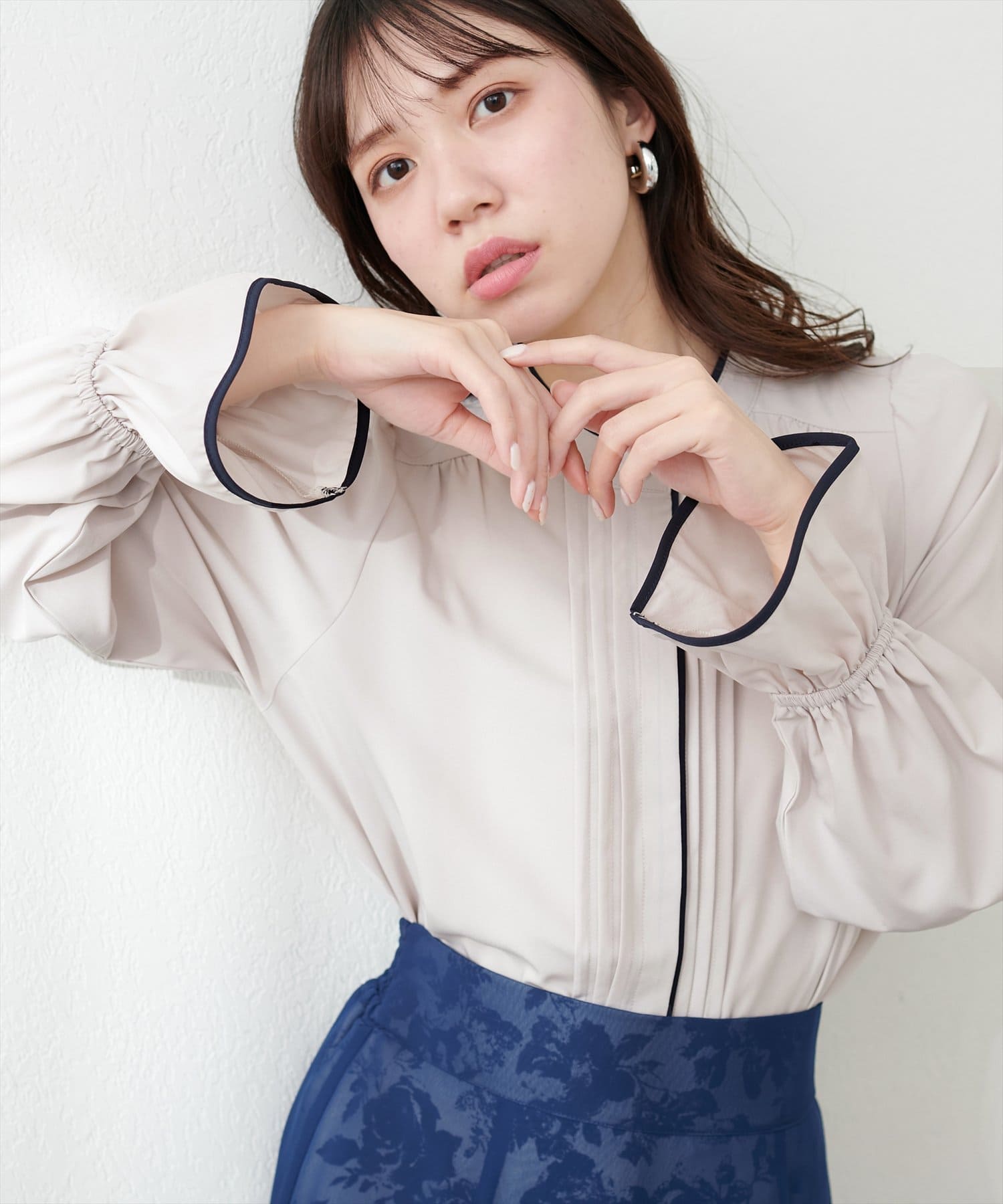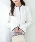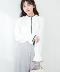 衿元、袖口、前立てに配色のパイピングを施しアクセントをプラス。