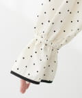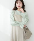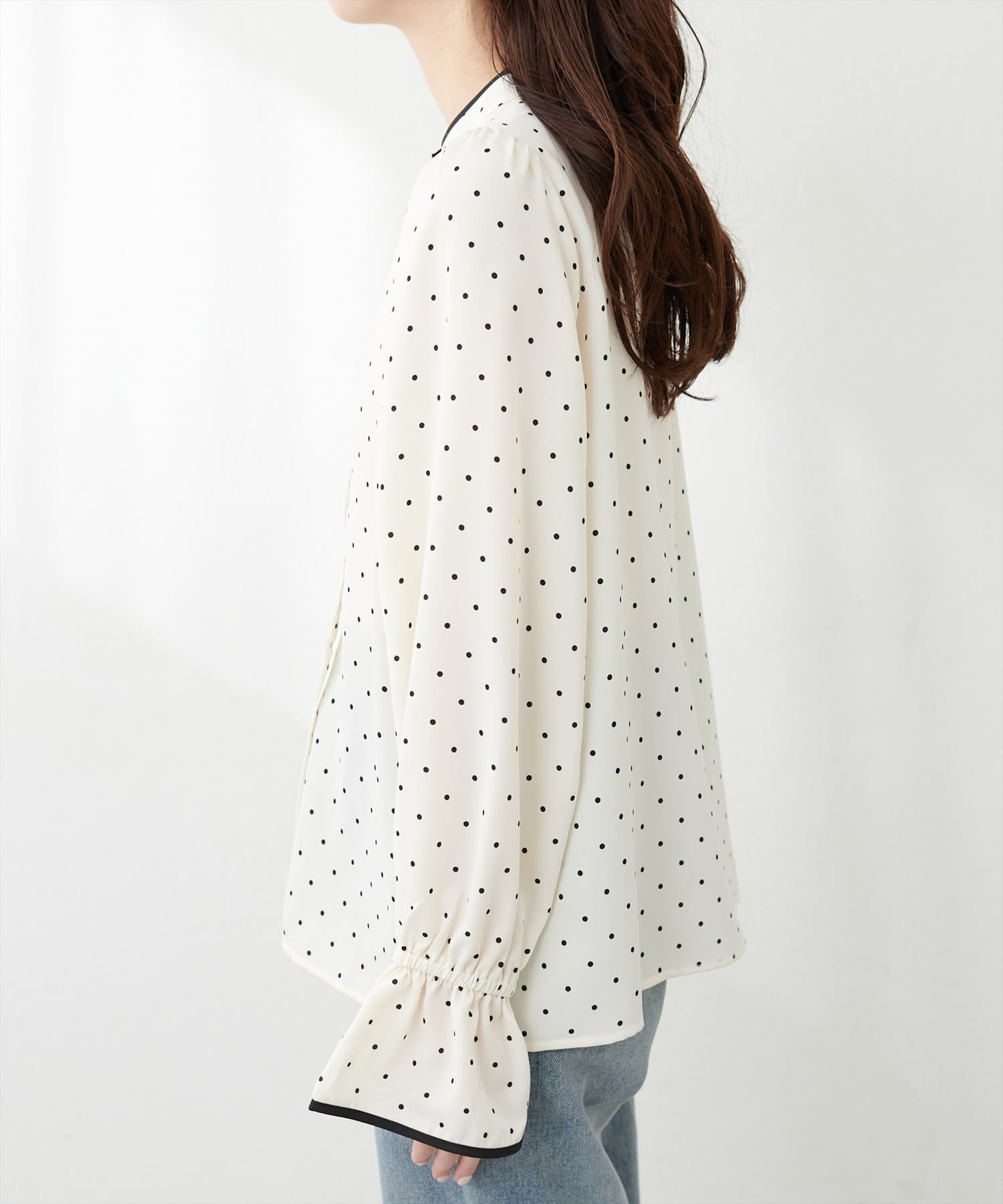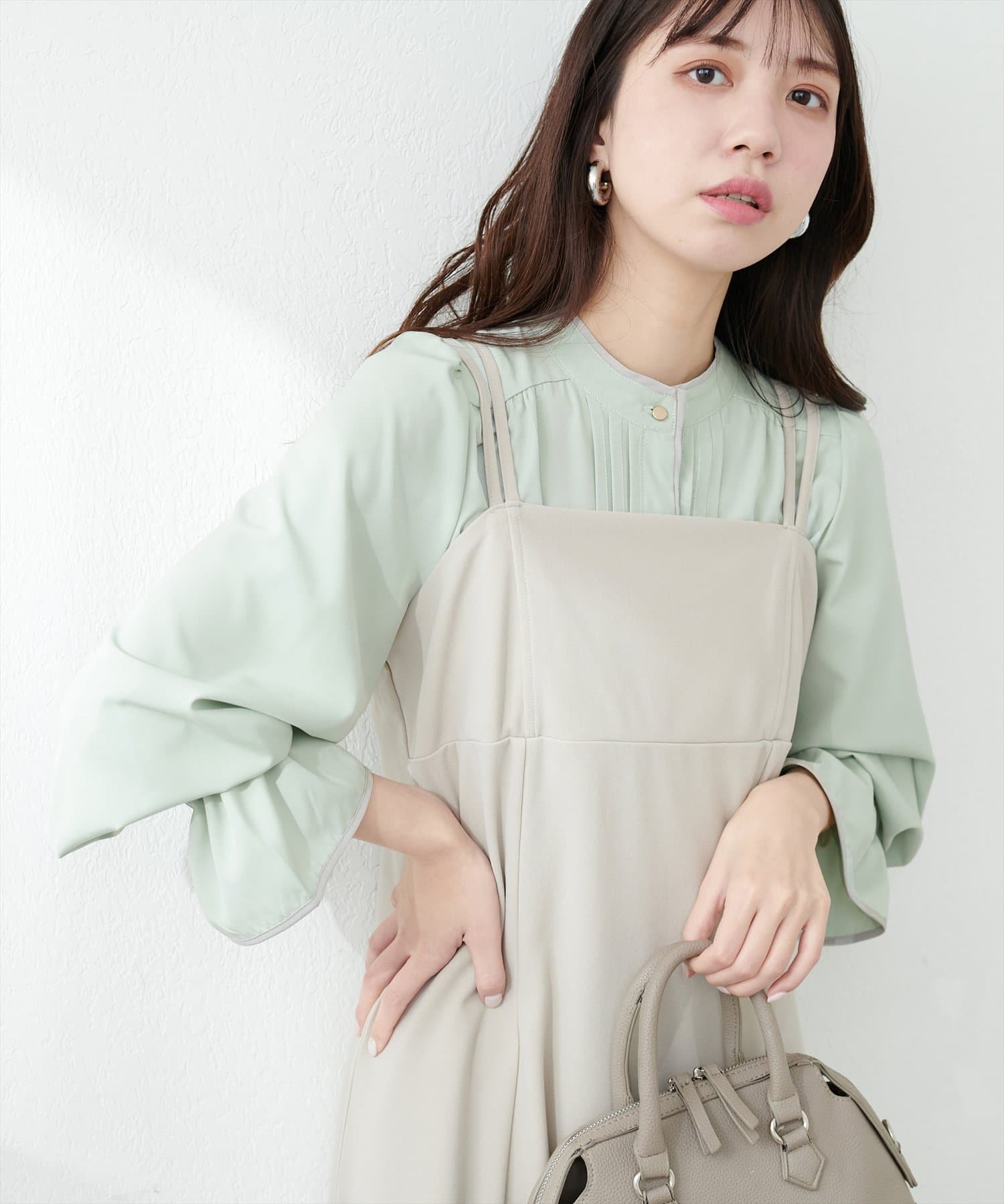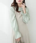 袖はたっぷりとしたキャンディスリーブに、肩にはさり気ないギャザーを施し、細部までこだわった1枚です。