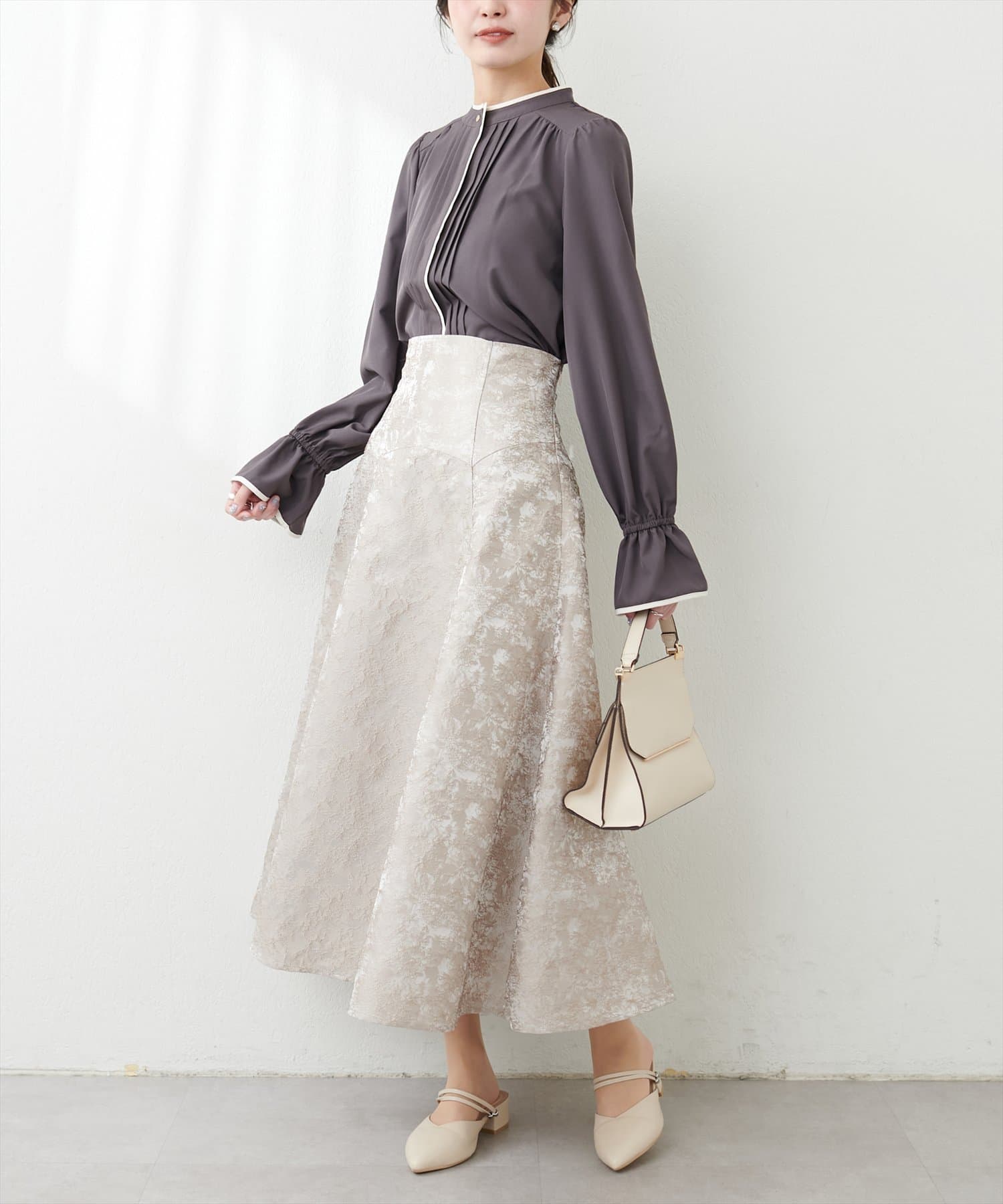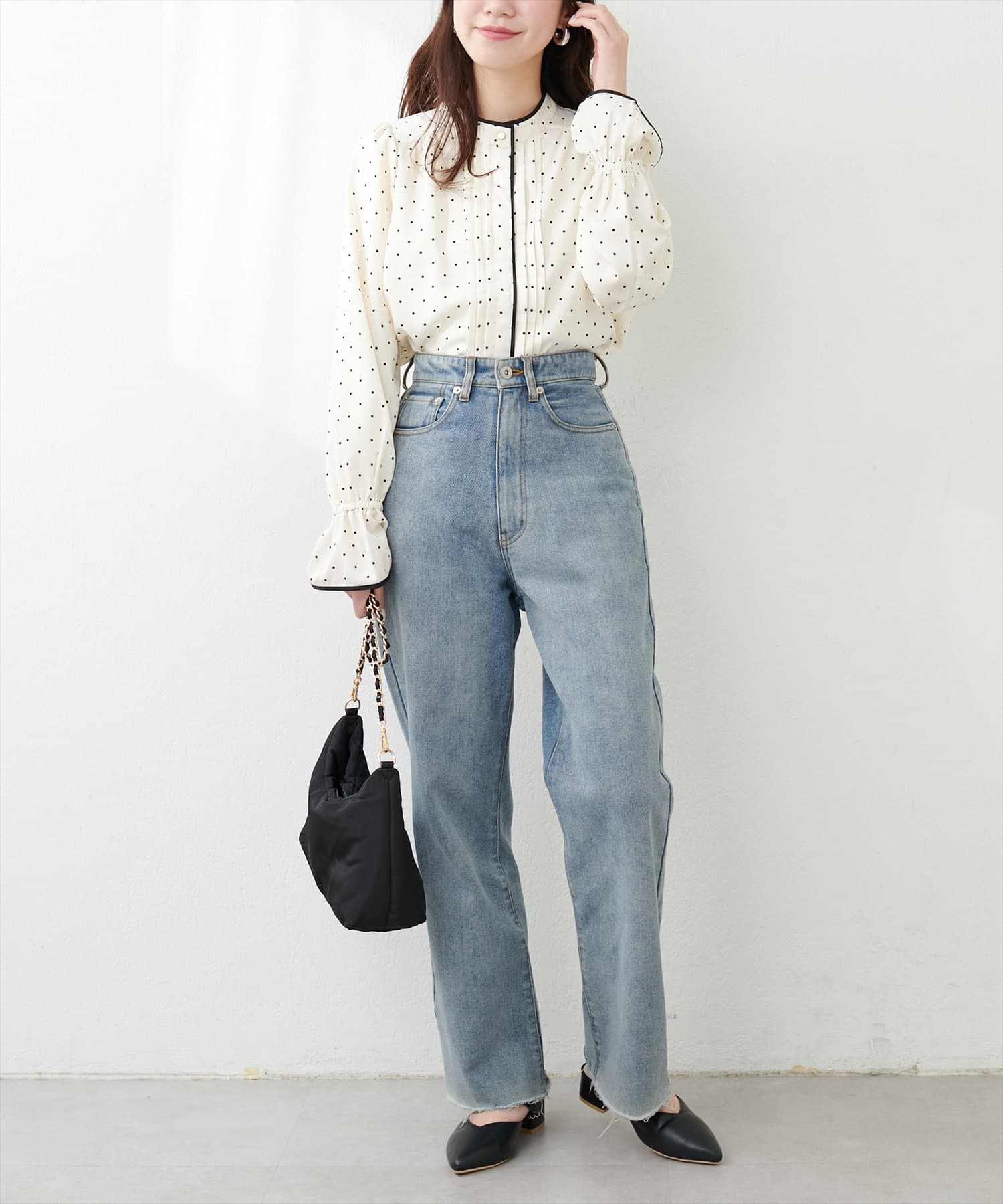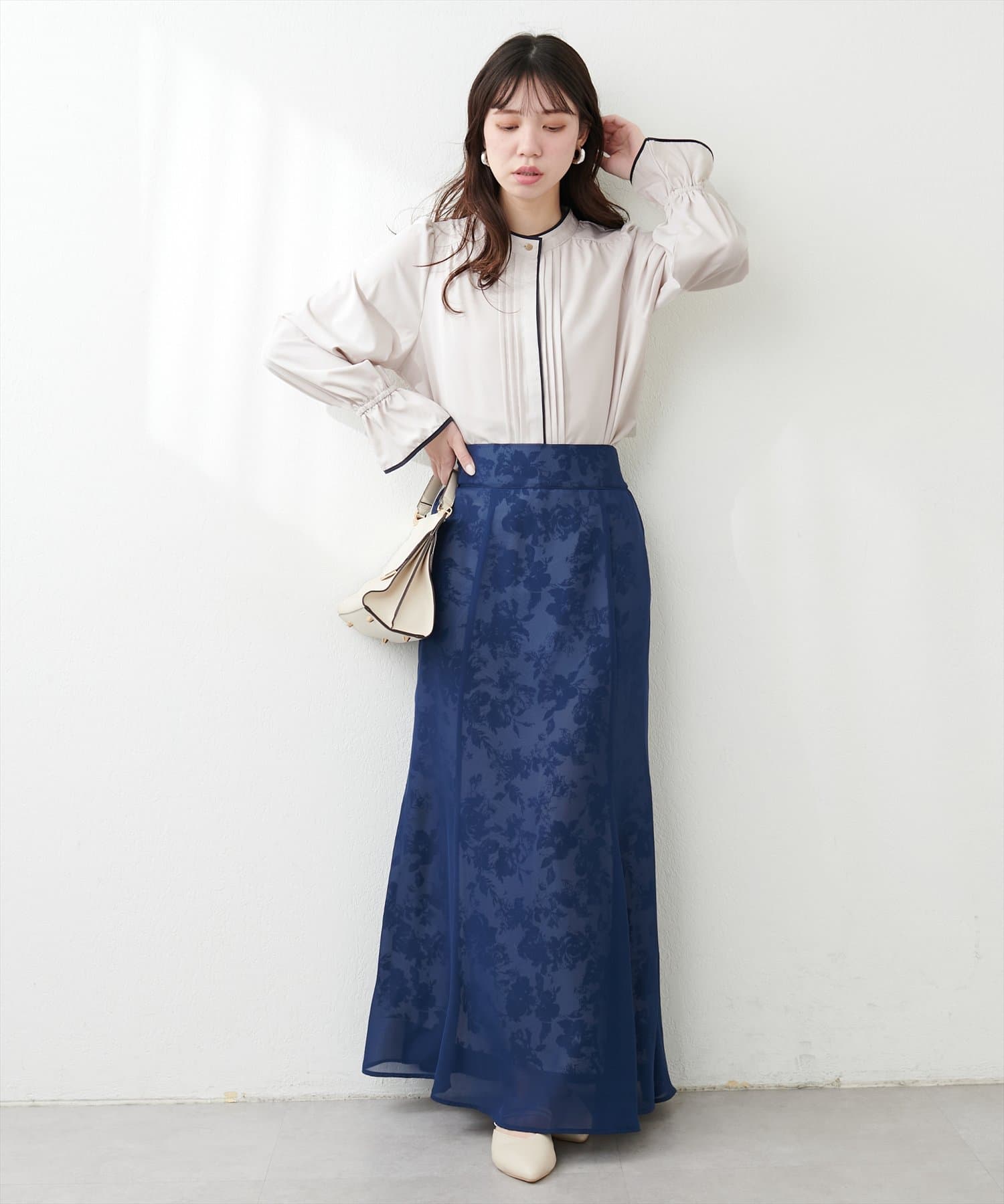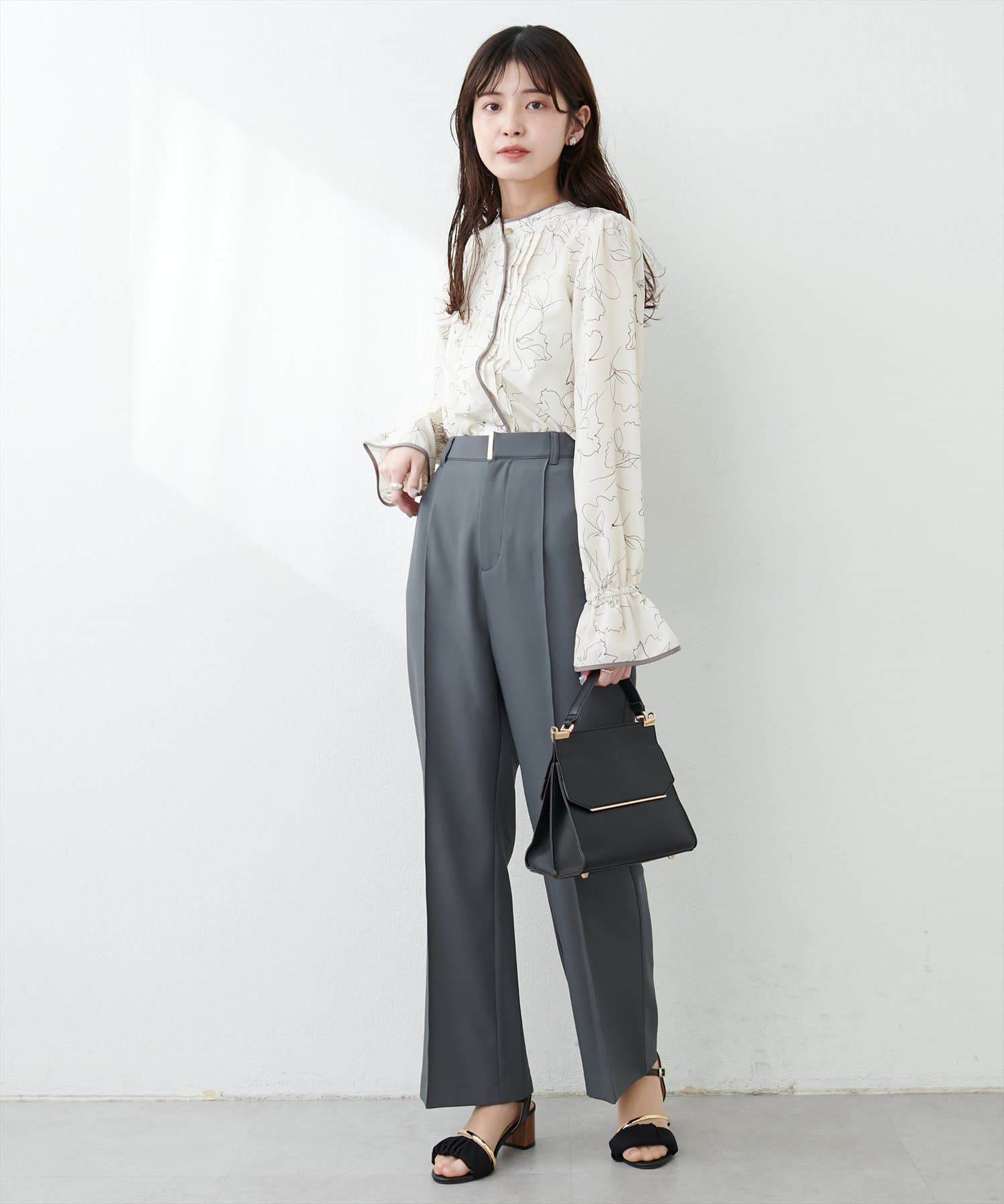 1枚で主役級のブラウスなので、シンプルなボトムスと合わせるだけでコーディネートが完成します。