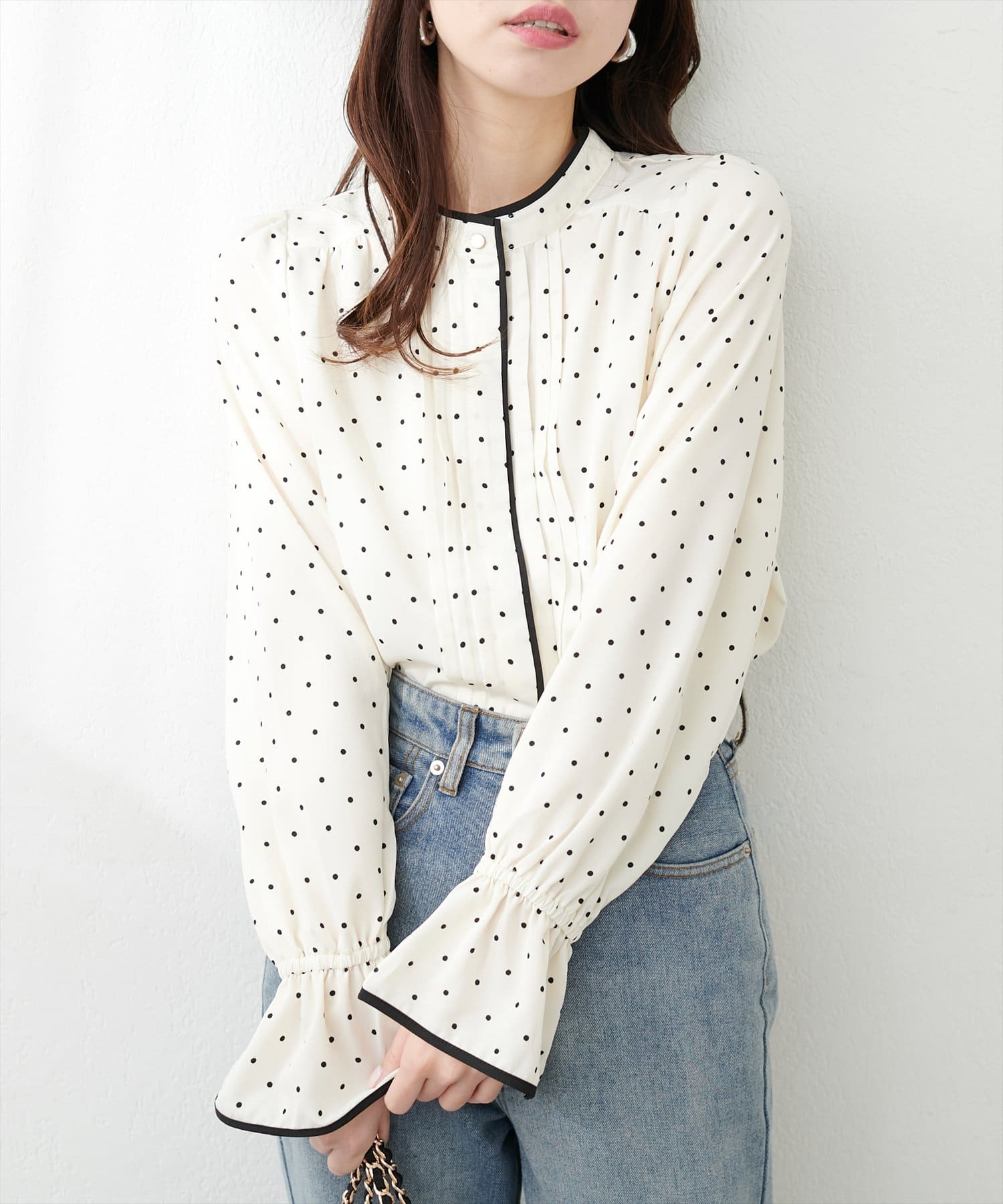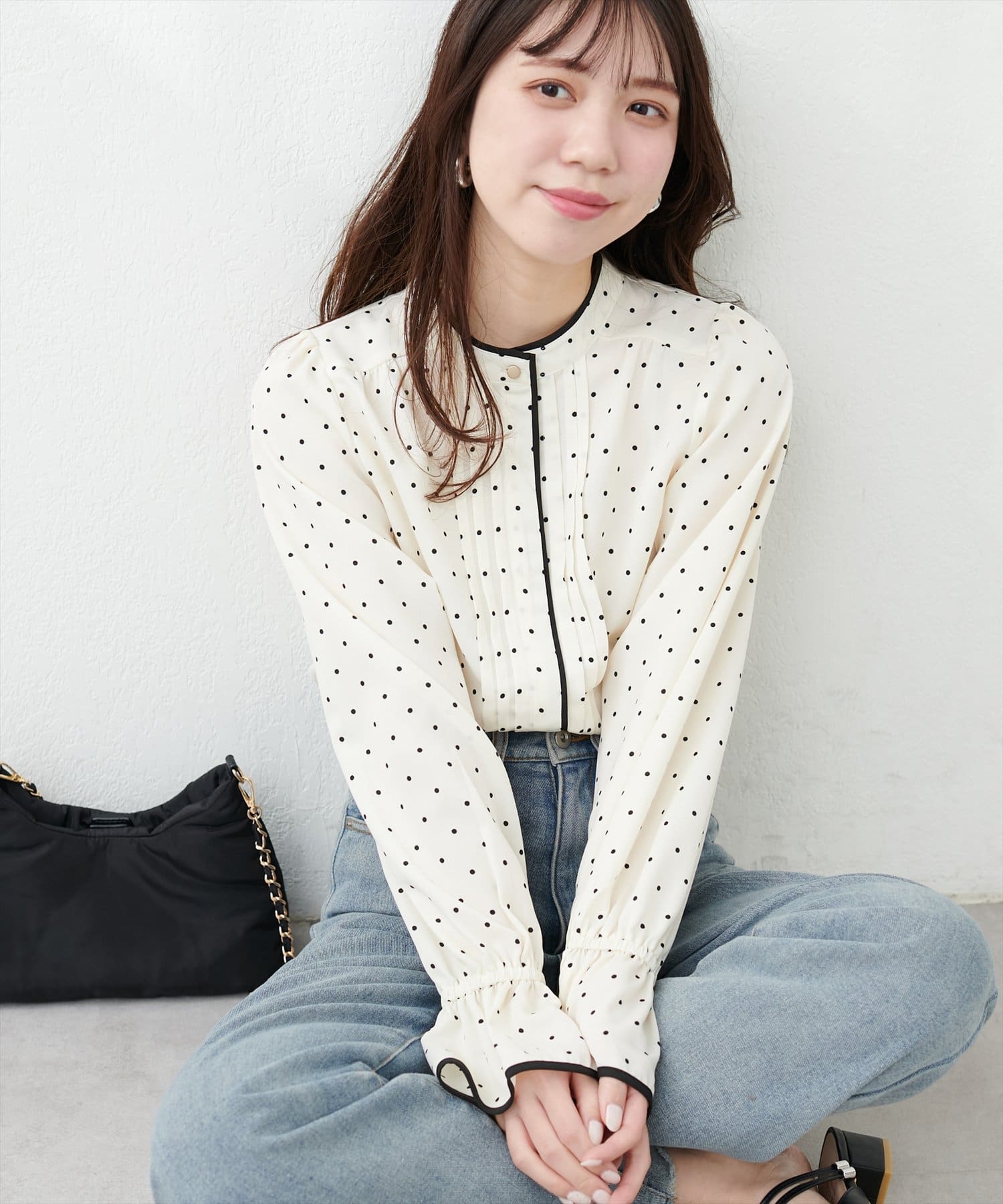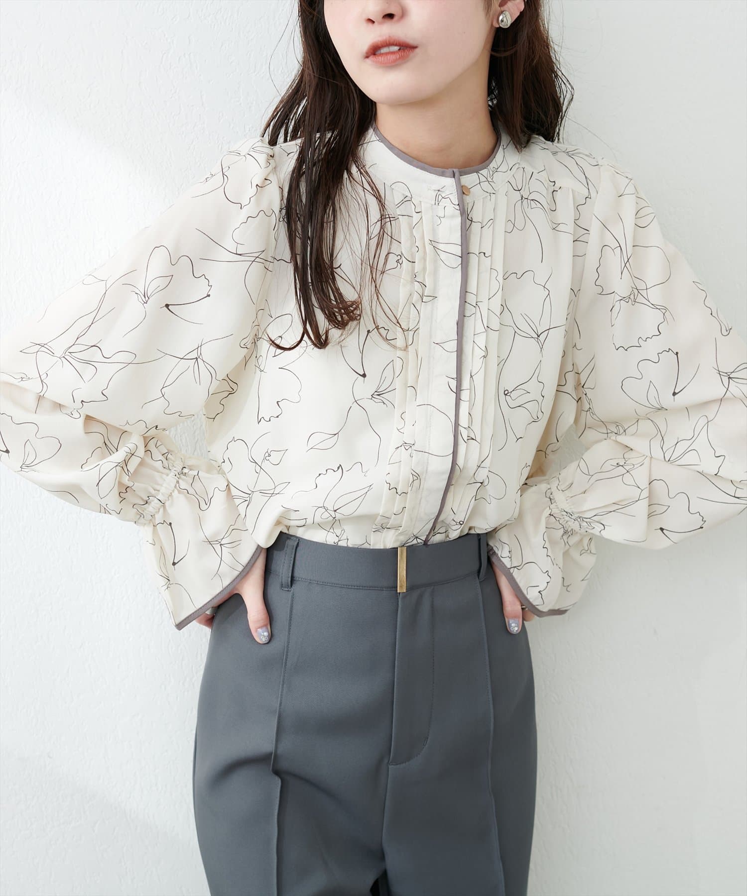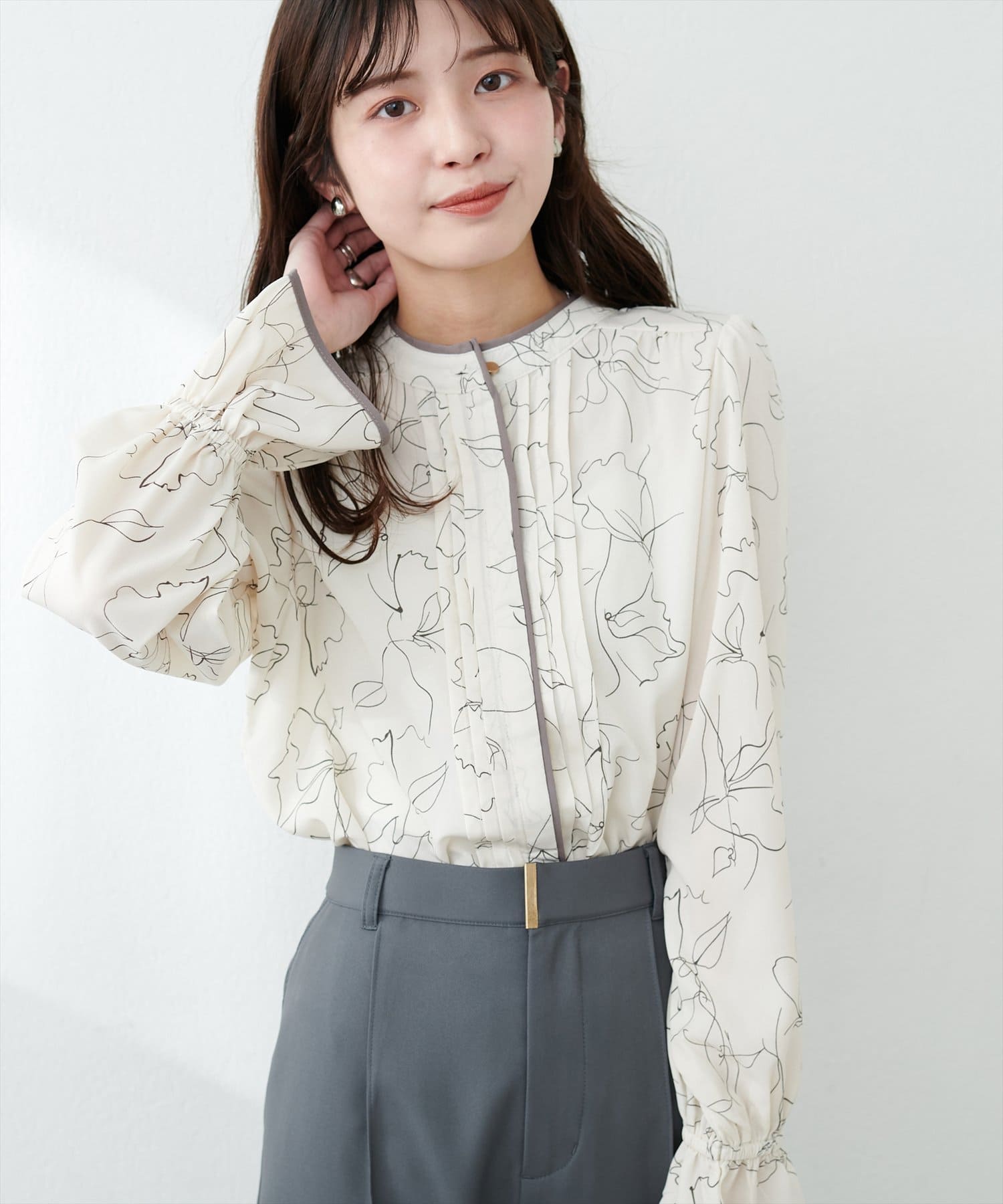 1枚で主役級のブラウスなので、シンプルなボトムスと合わせるだけでコーディネートが完成します。