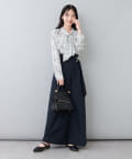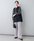 甘めに見えがちなフリルですが、首がつまりすぎてないデザインで抜け感が出て大人見え。