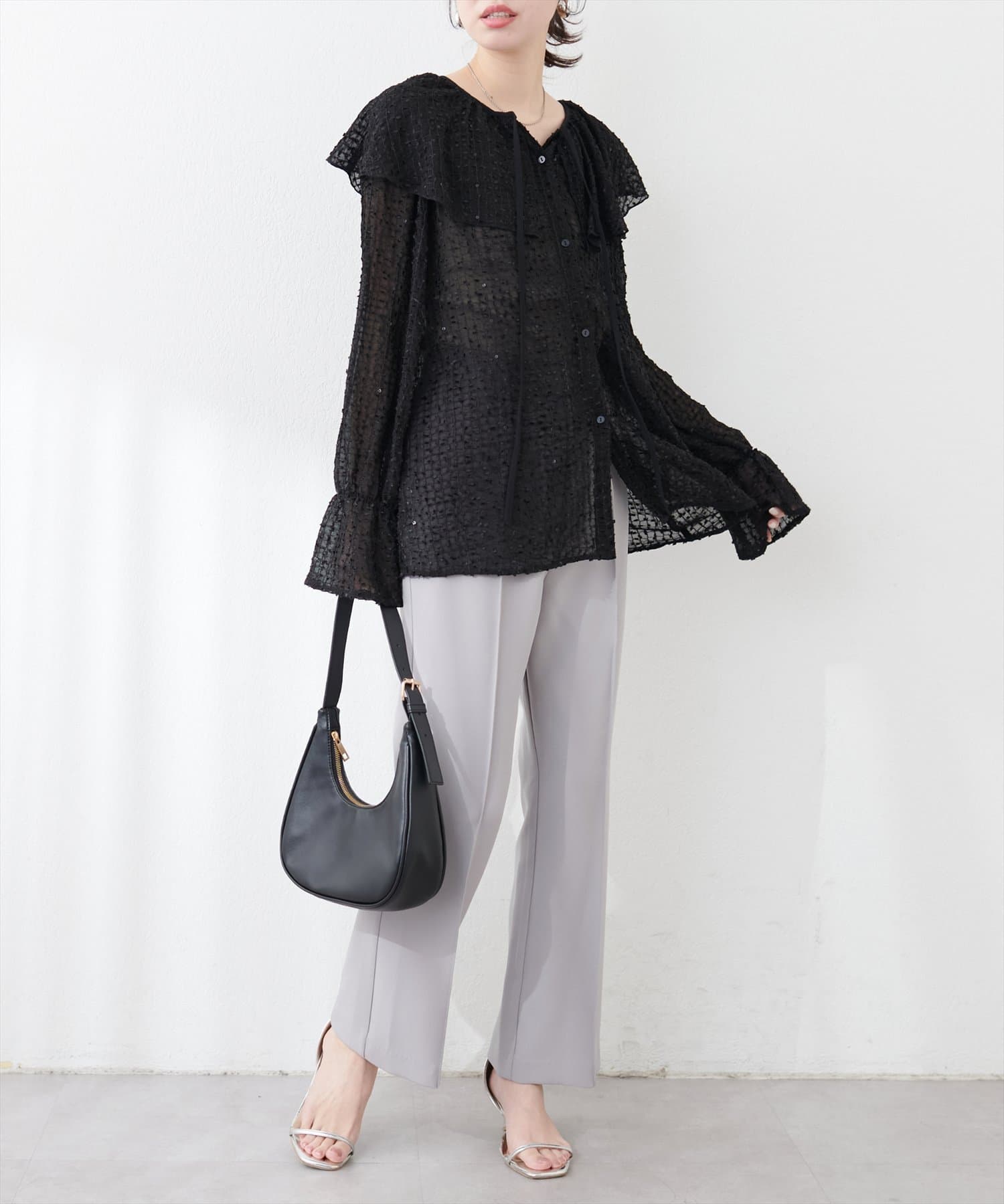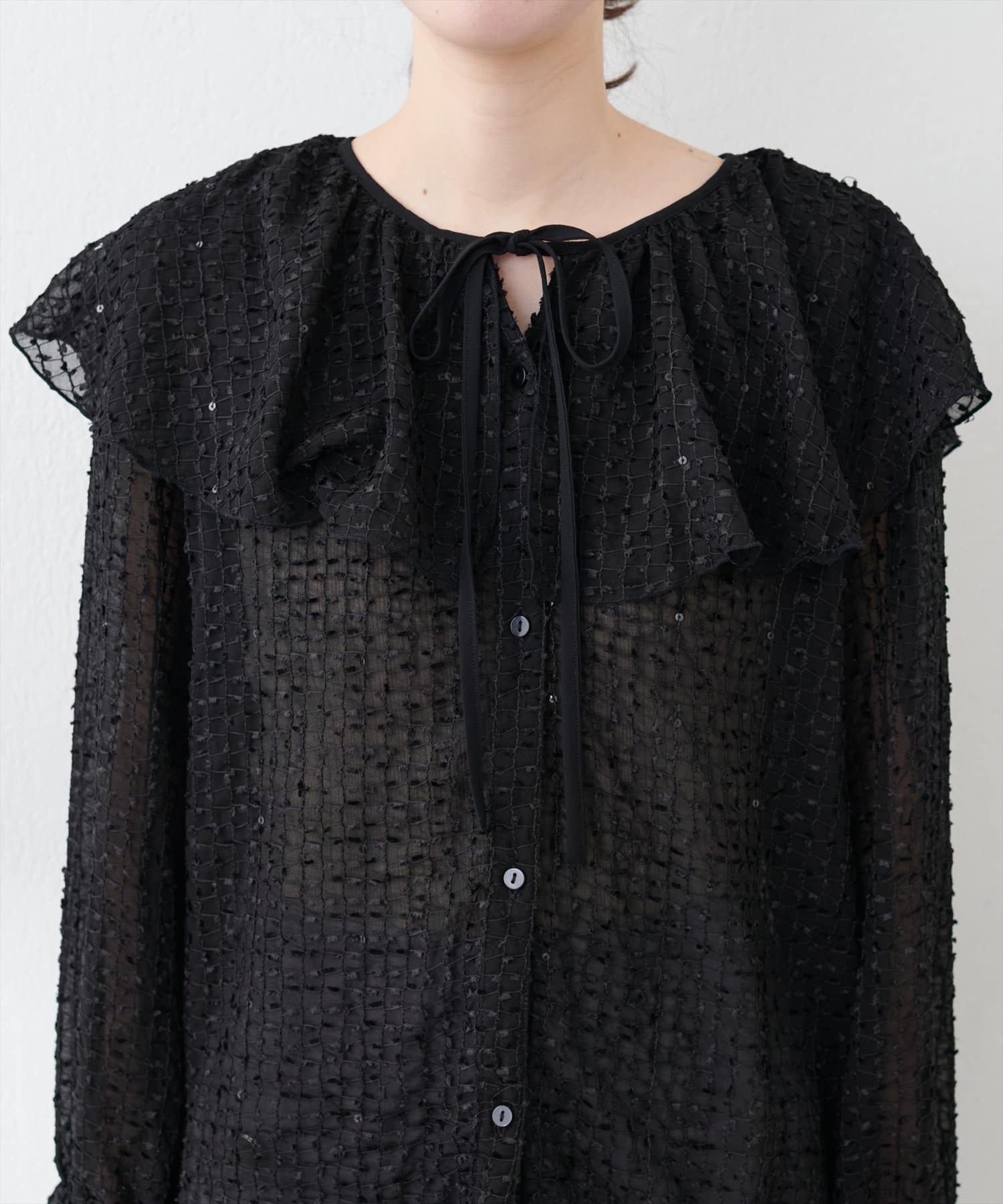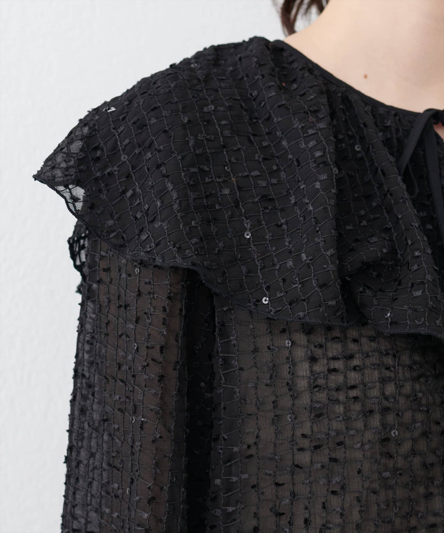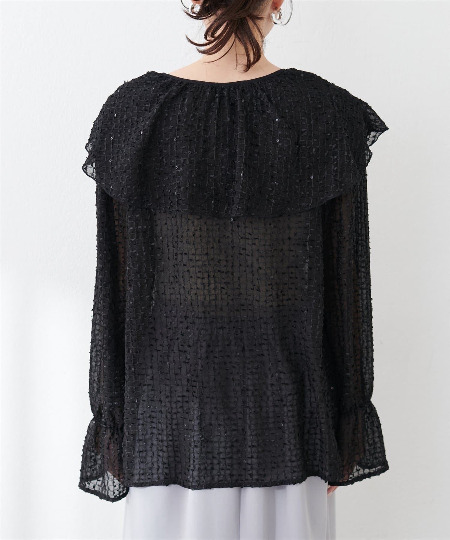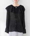 【natural couture】シアーフリンジケープカラーブラウス