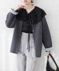 女性らしいケープ風のラッフルカラーデザインが上品な1枚。