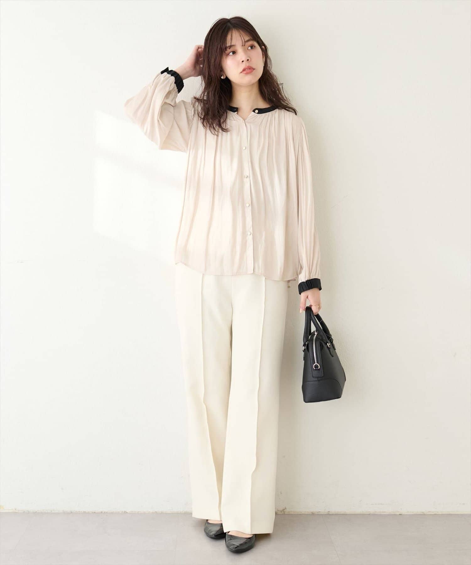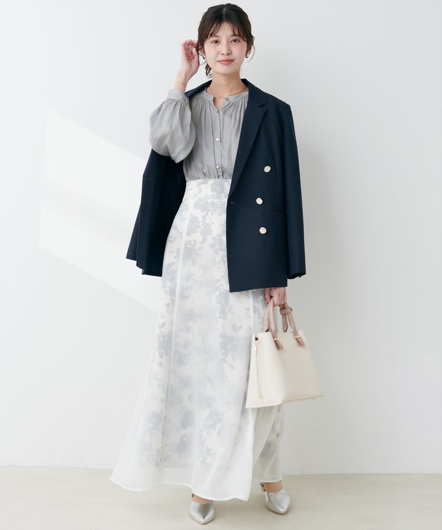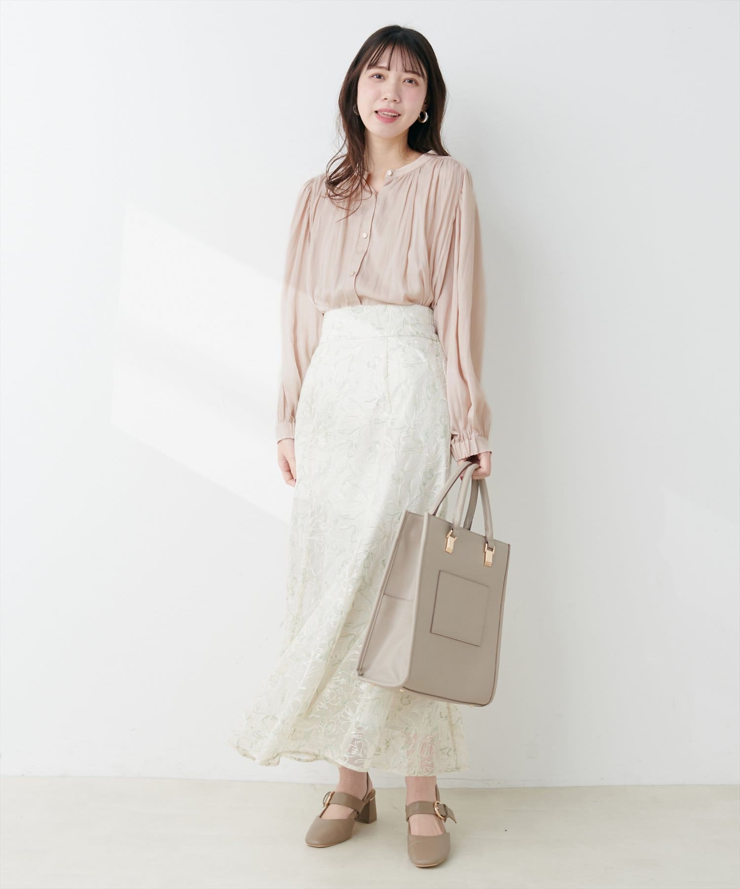 フレアラインやナローシルエットのスカートにウエストインして頂くと、すっきり上品に決まります。