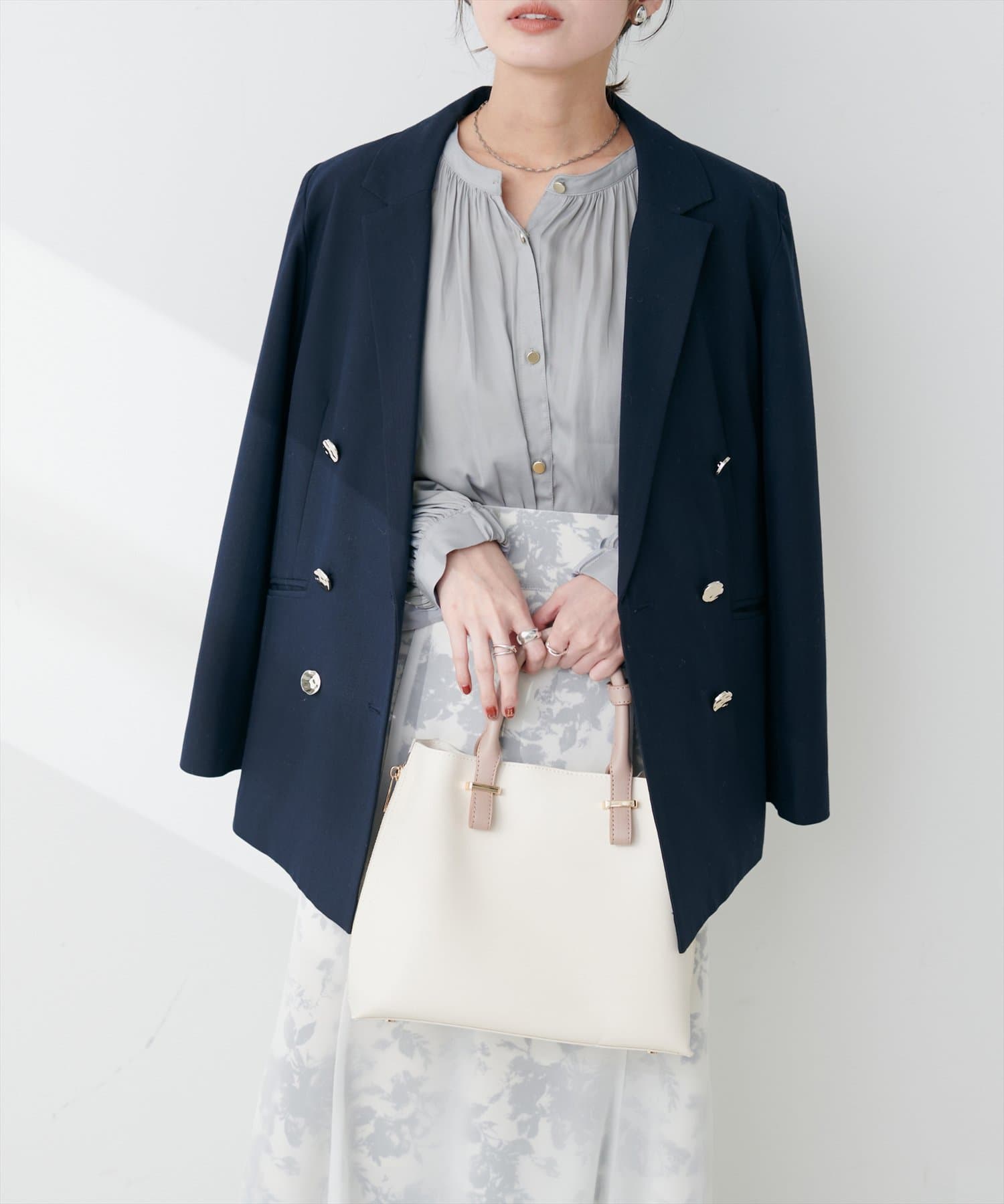 胸元にはマットボタンをあしらい高級感あふれる印象に仕上げました。