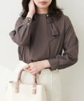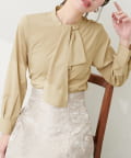 ドレープになったスカーフタイのデザインが特徴のお上品ブラウス。