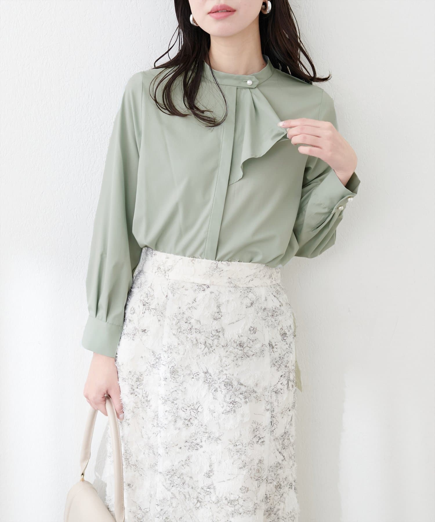 さらっとした薄手のブラウス地で秋冬の季節には上からジャケットや