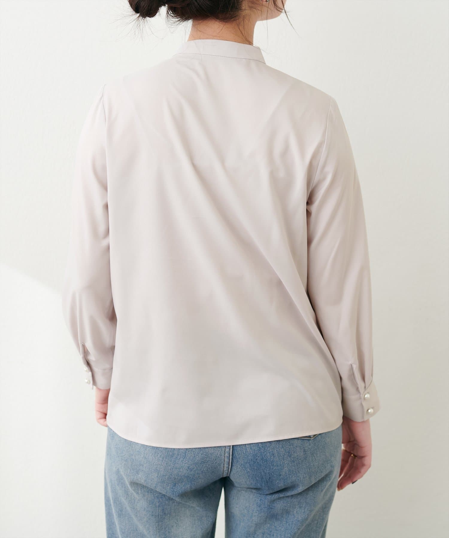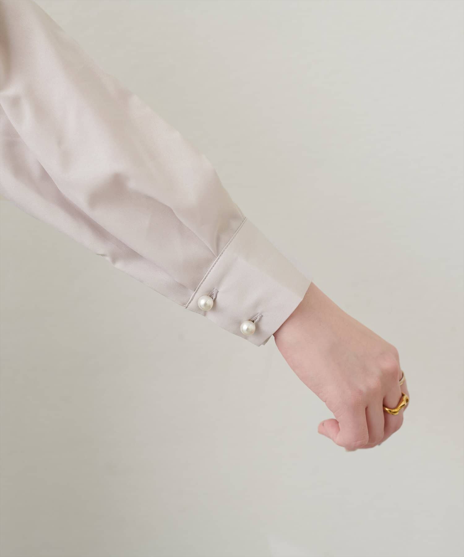 襟元と袖口にあしらわれた、さりげないパール釦もポイントです。