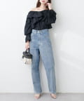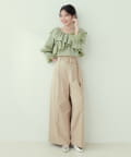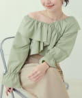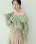 たっぷりのフリルとキャンディスリーブがアクセントになるので、シンプルなボトムスと合わせるだけでコーディネートがきまります。