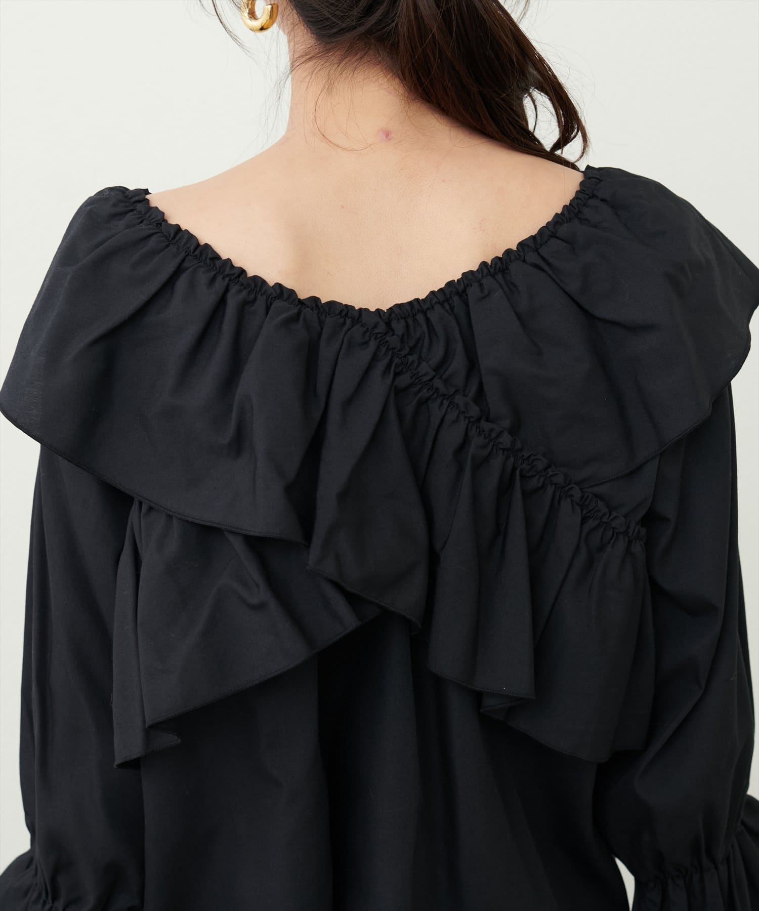 ネックラインはギャザーゴム仕様なので、オフショルダーやワンショルダーとしてもお楽しみ頂けるマルチWAYなアイテム。