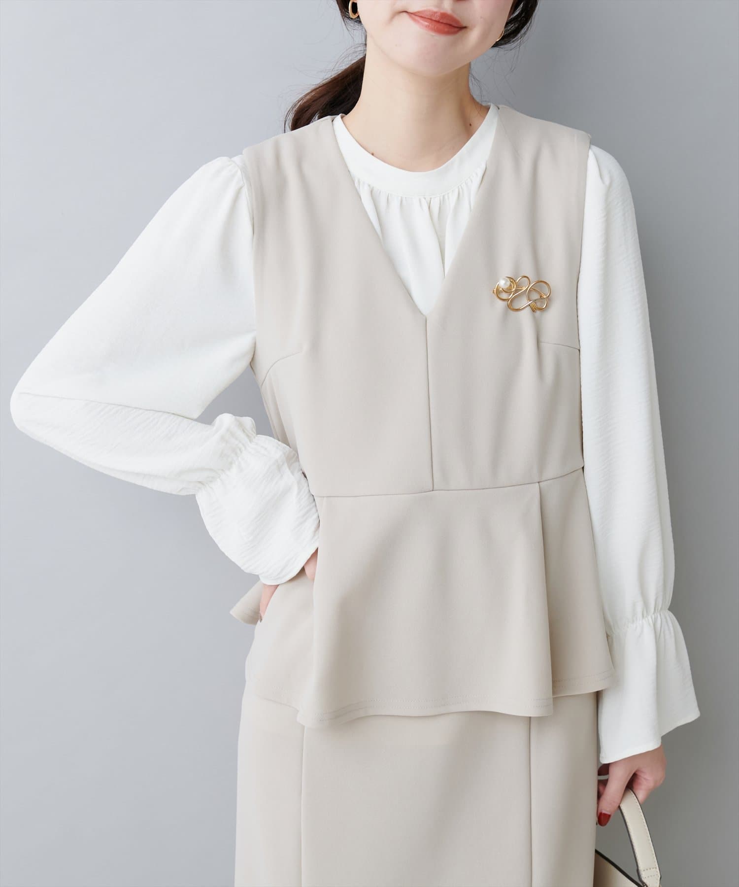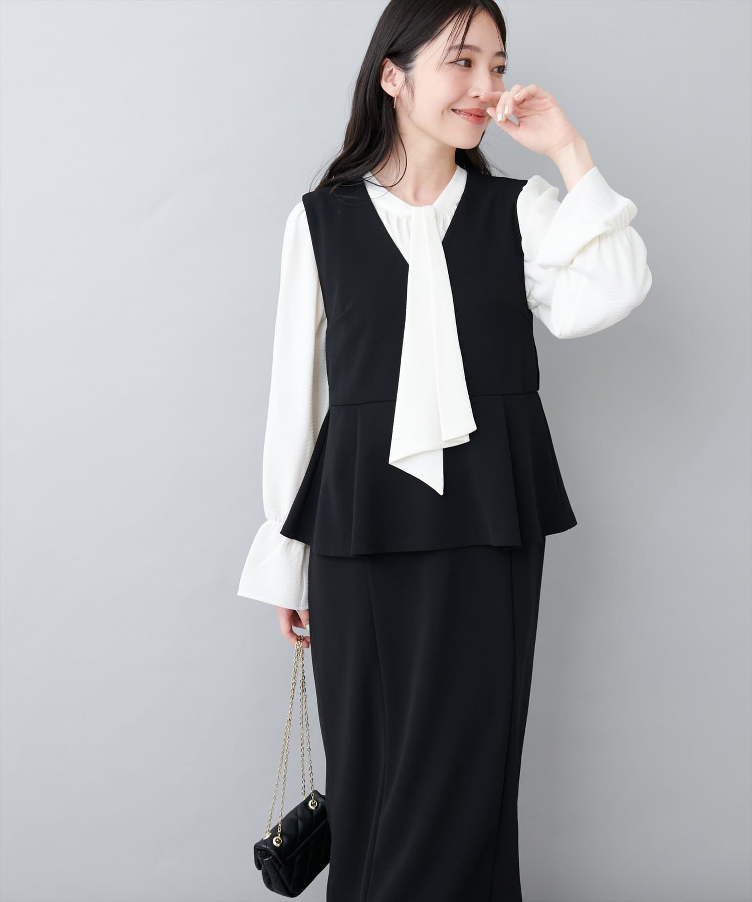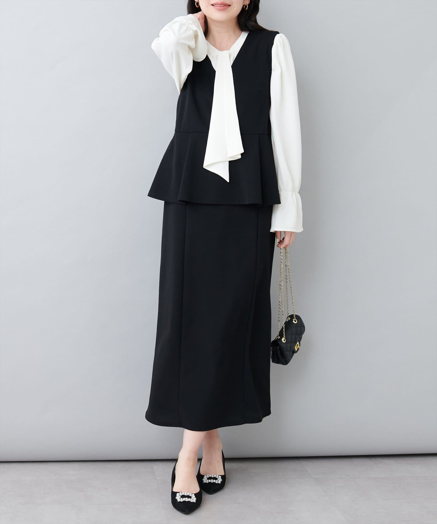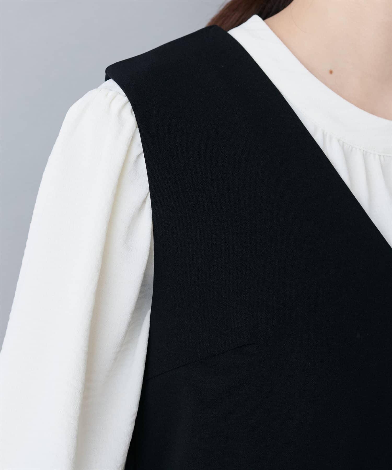 ブラウスとワンピースをセットでお召いただいたスタイルがおすすめ。