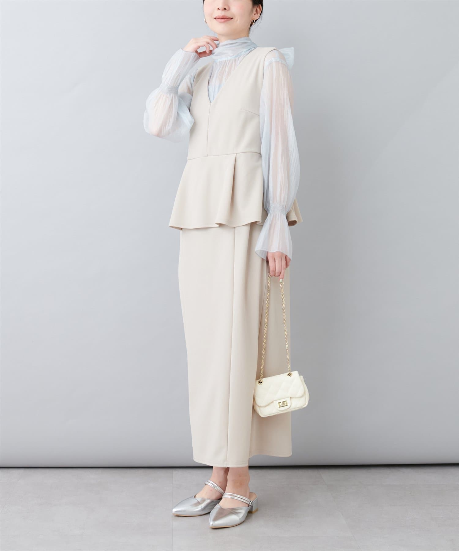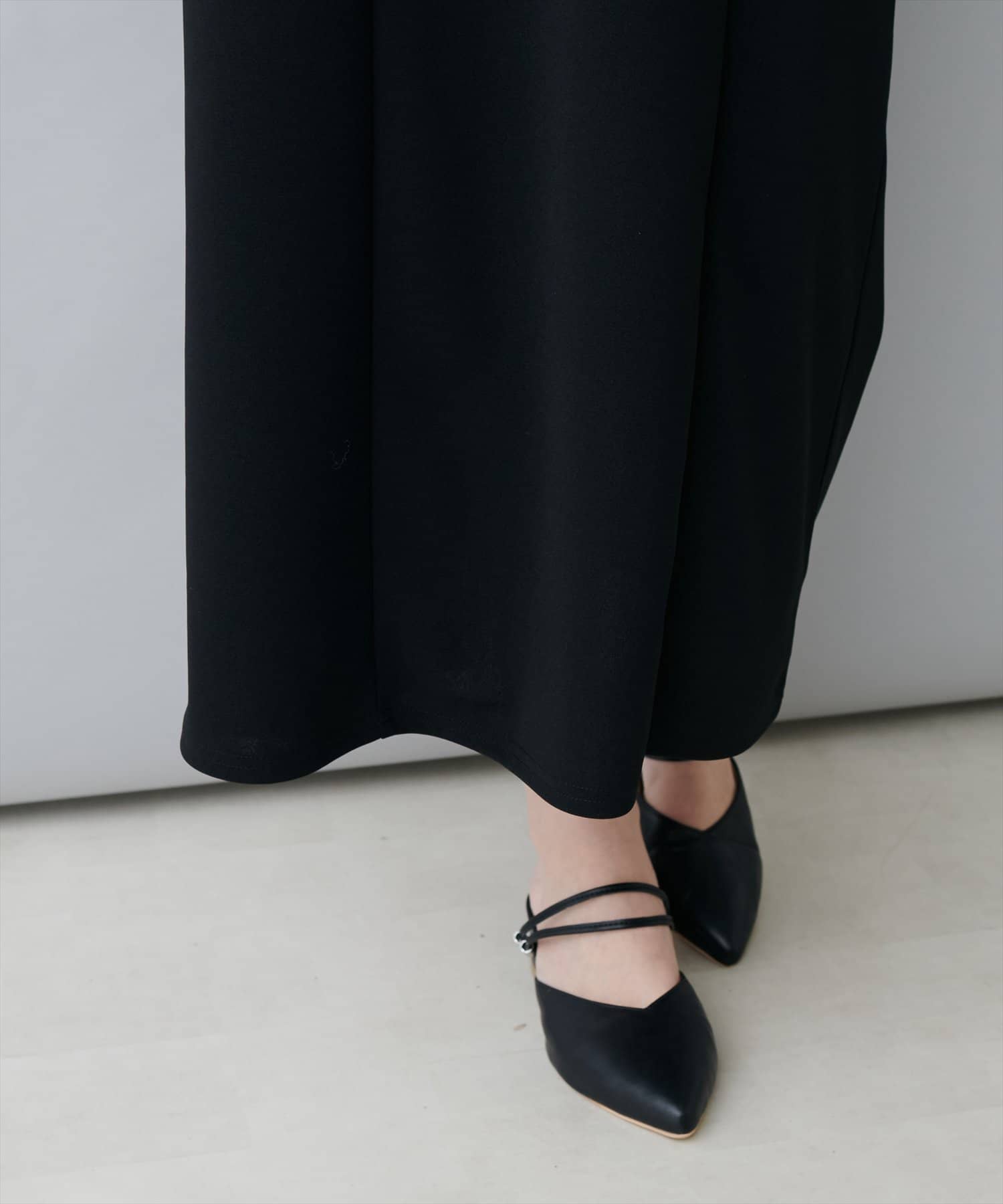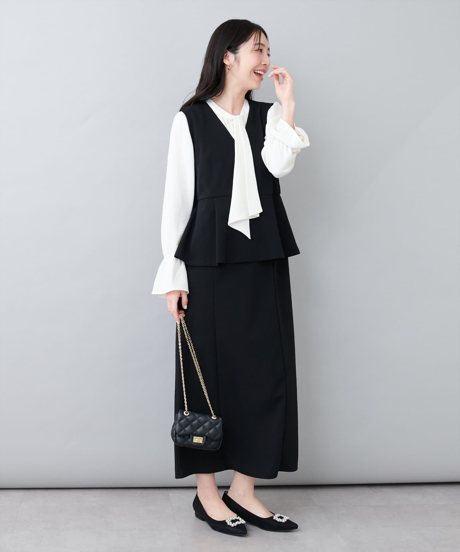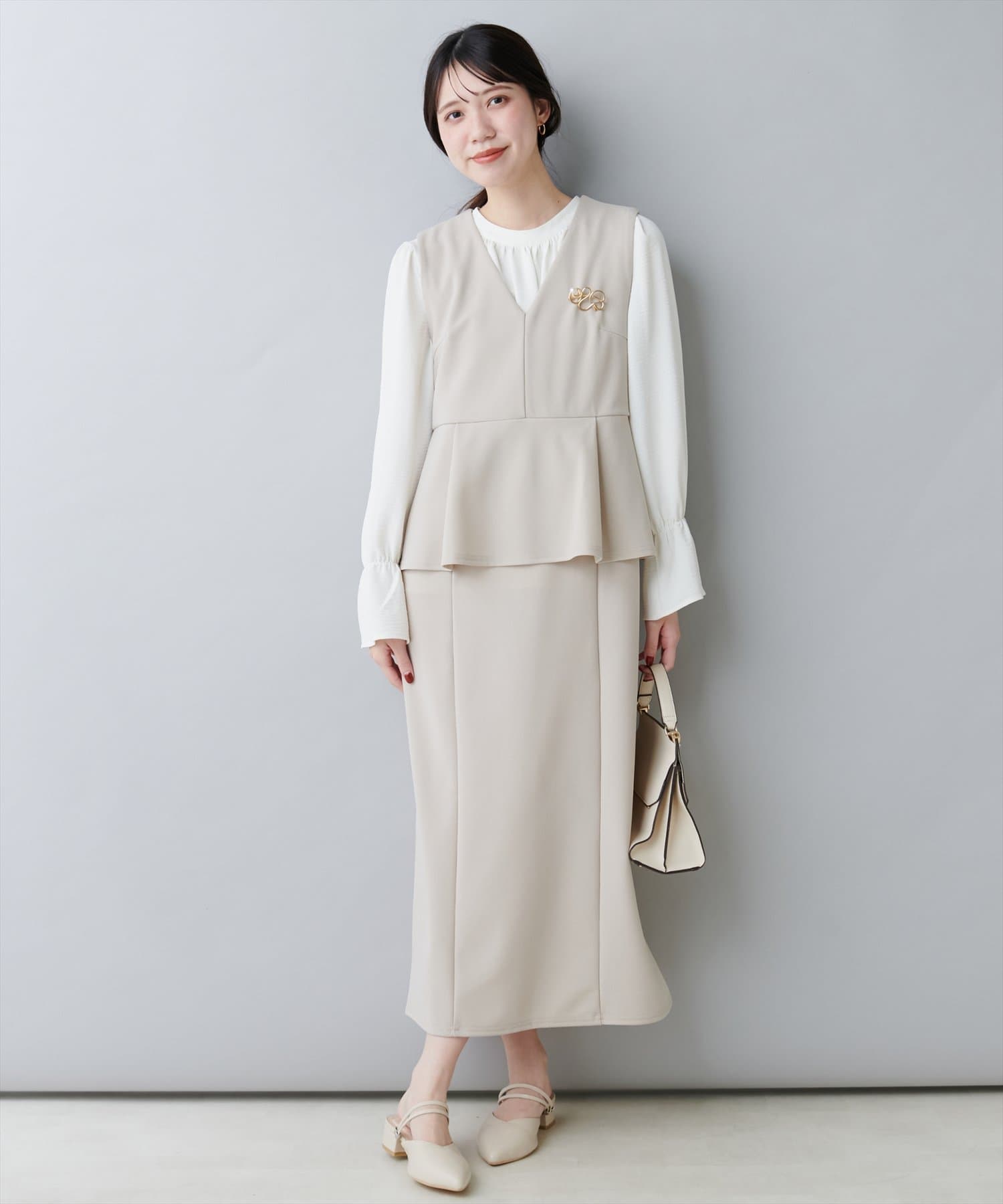 スカートはIラインシルエットなので、