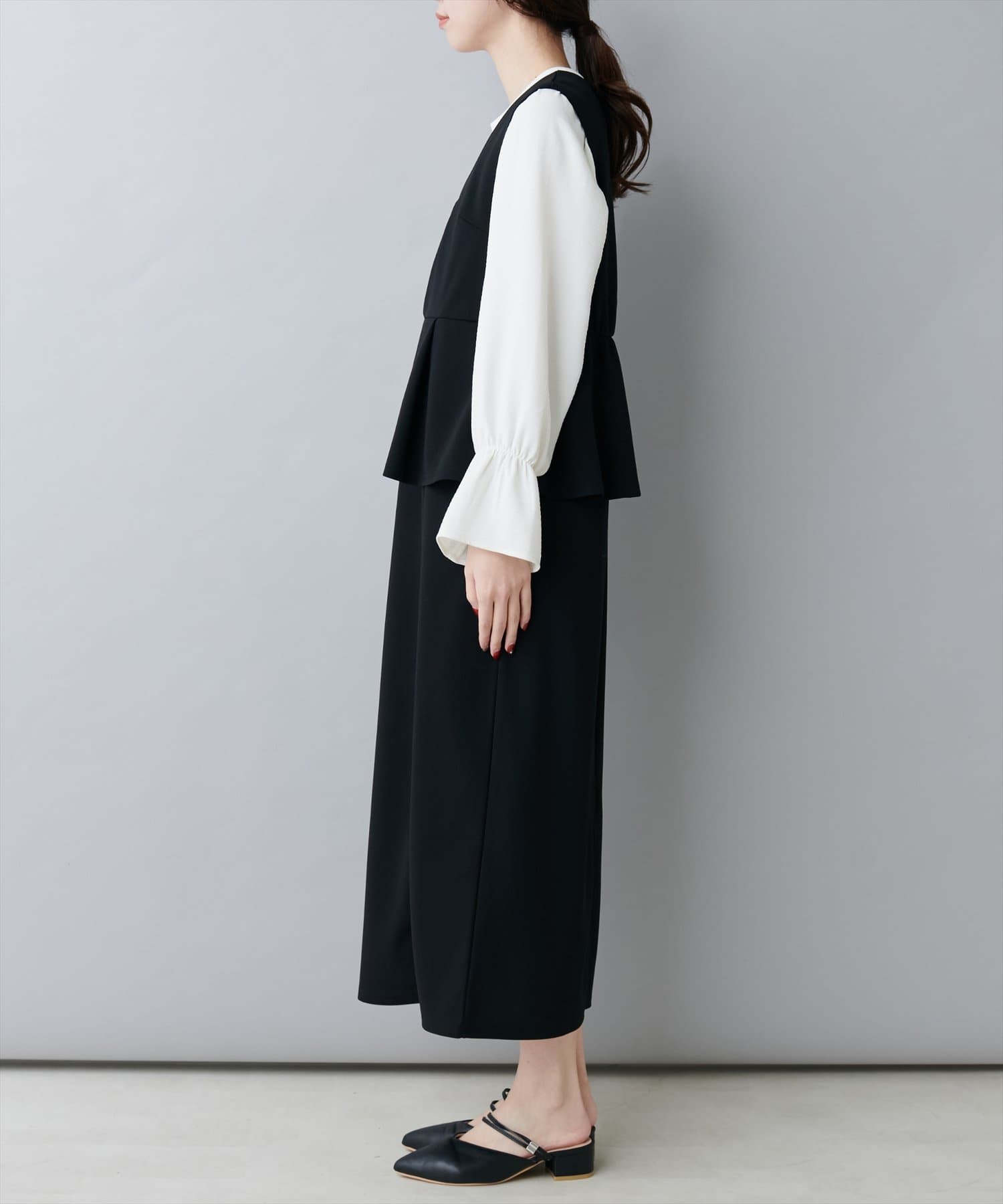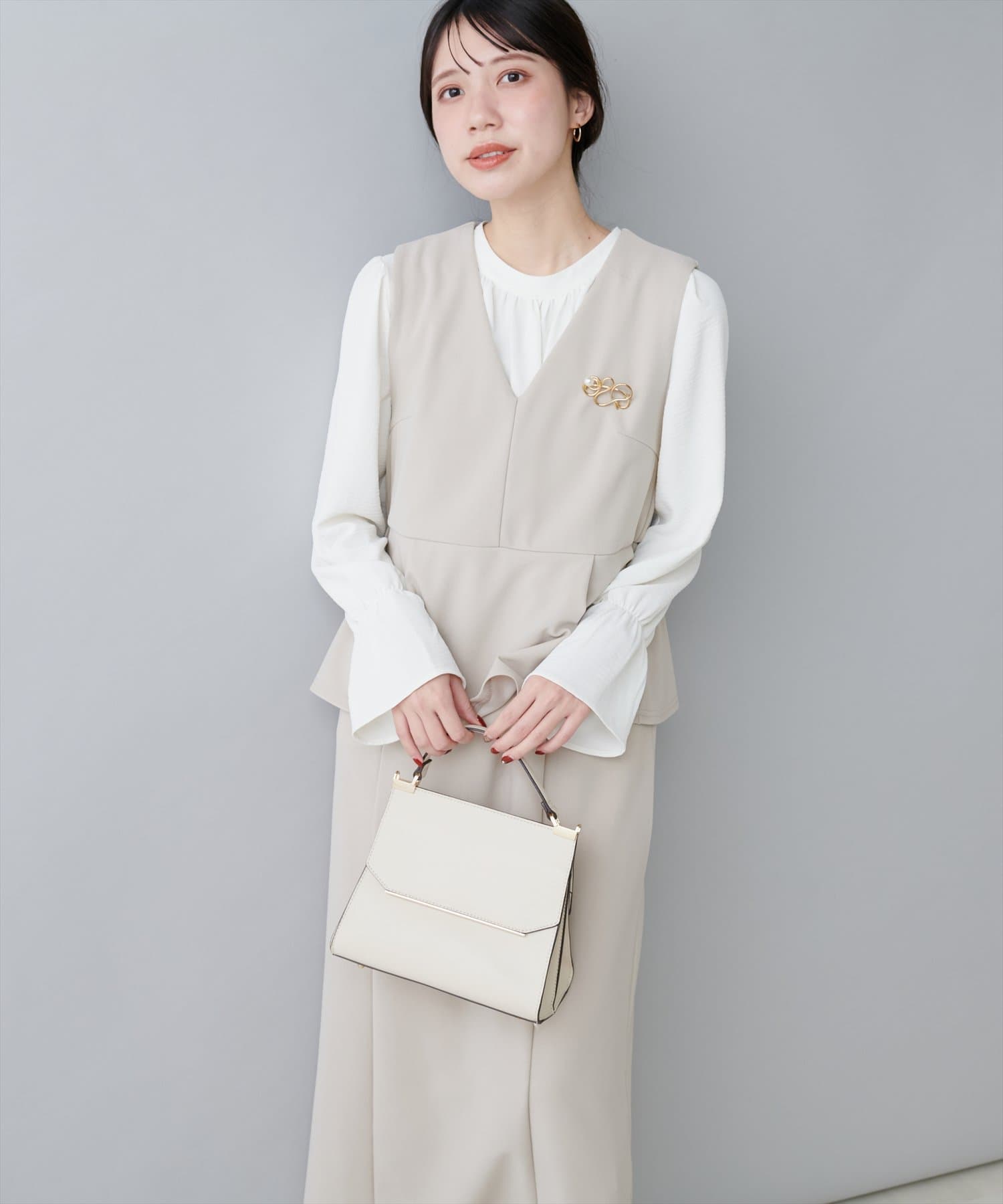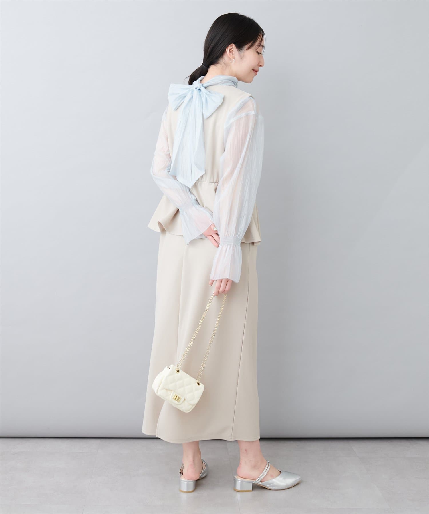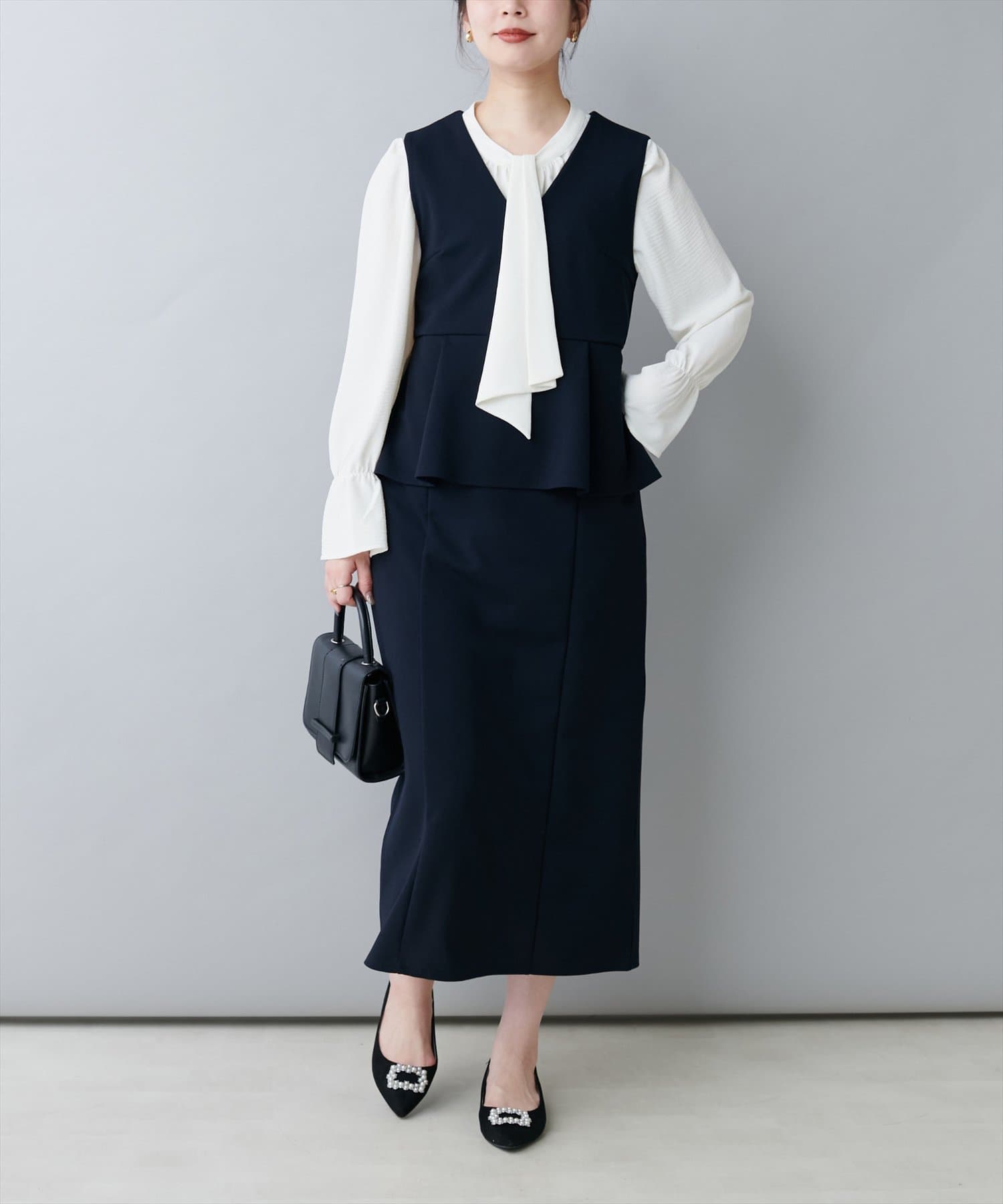 スカートはIラインシルエットなので、
