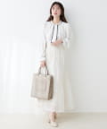 カーディガンを重ねても華やかなスタイリングに◎。