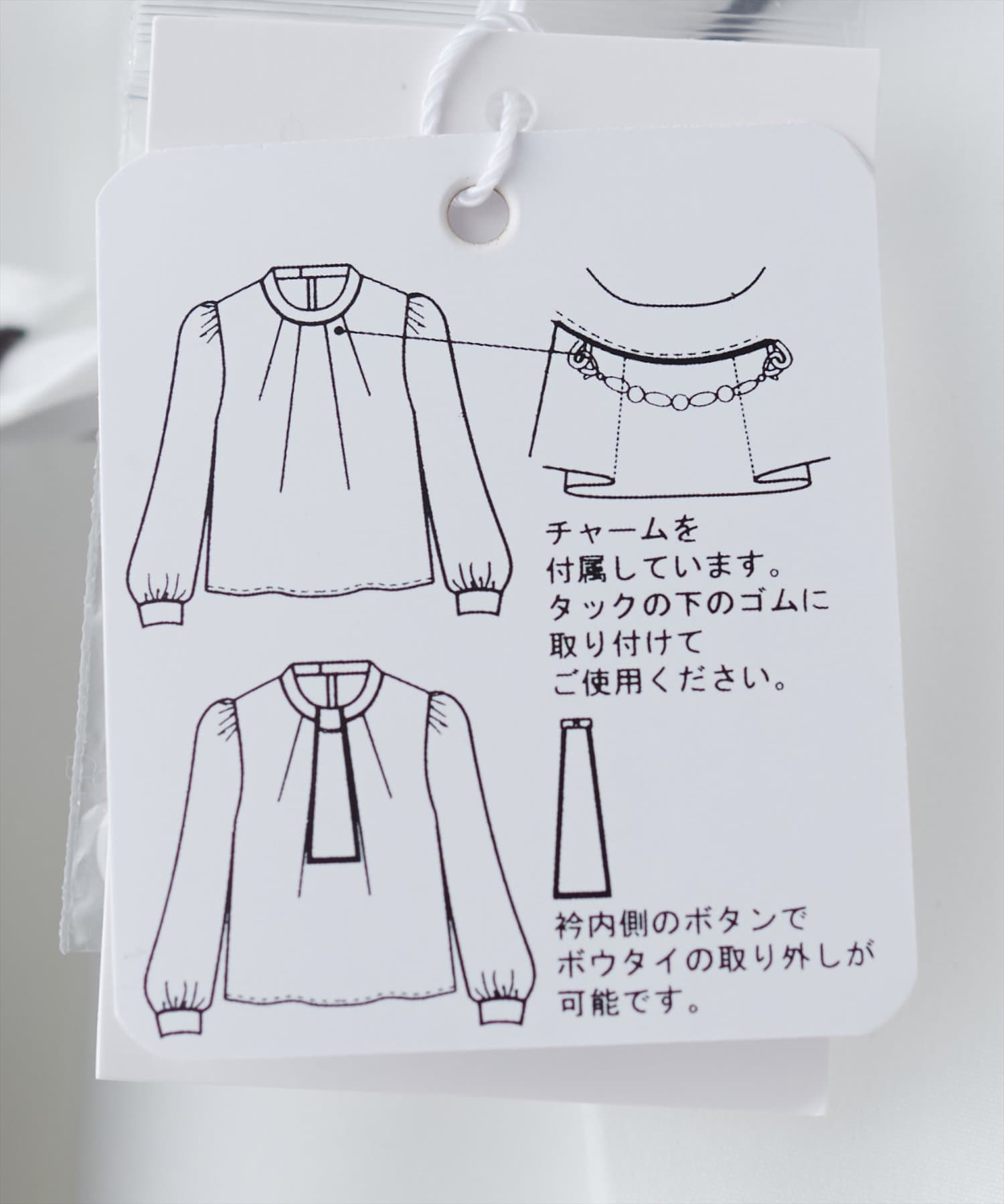 チャームとボウタイを重ねてつけていただくと華やかな印象に。