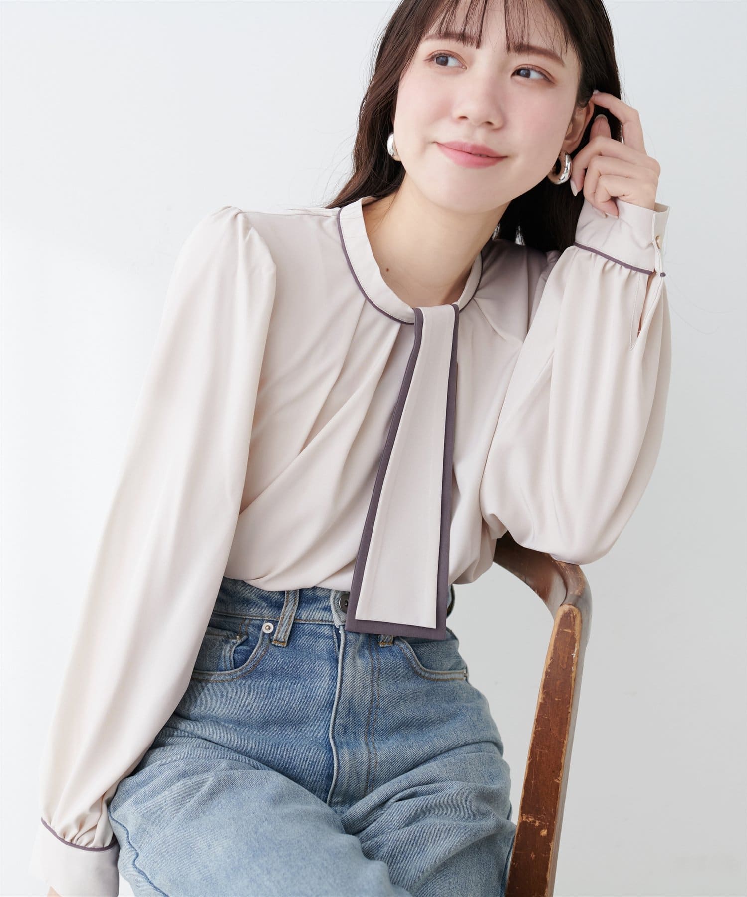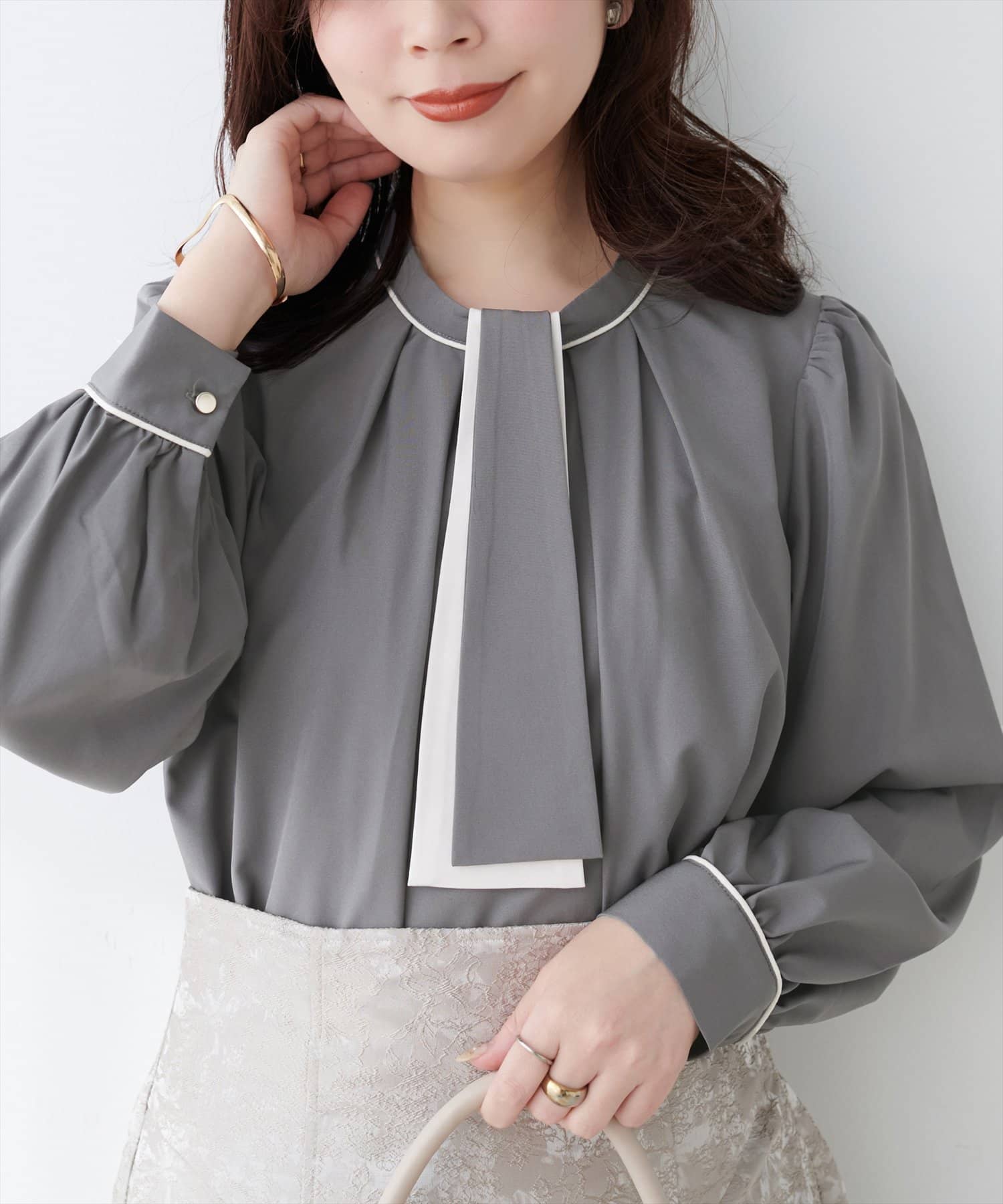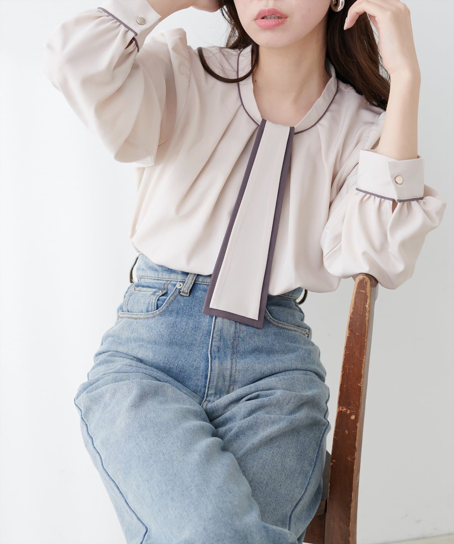 【WEB限定】マルチWAYボウタイ配色ブラウス