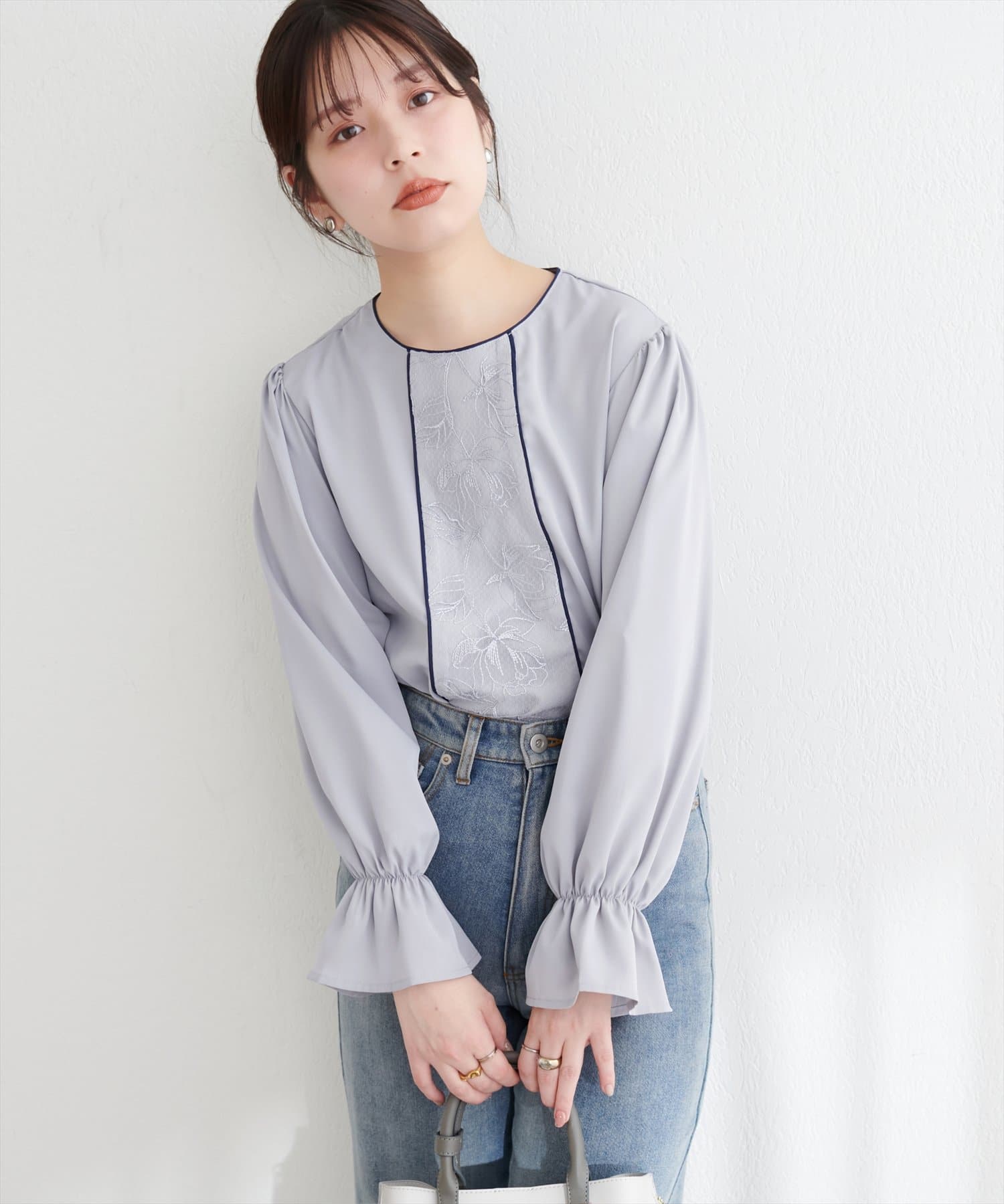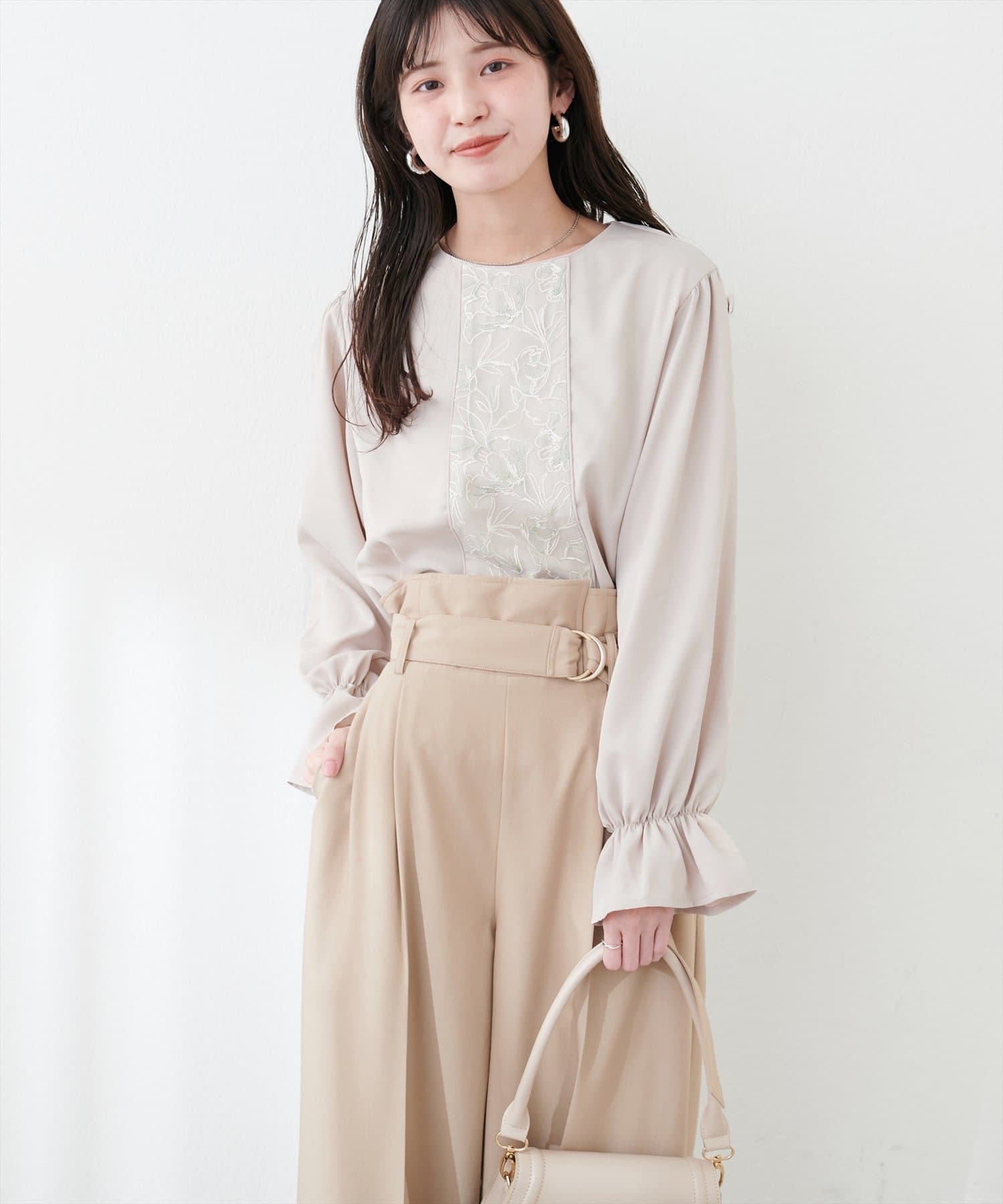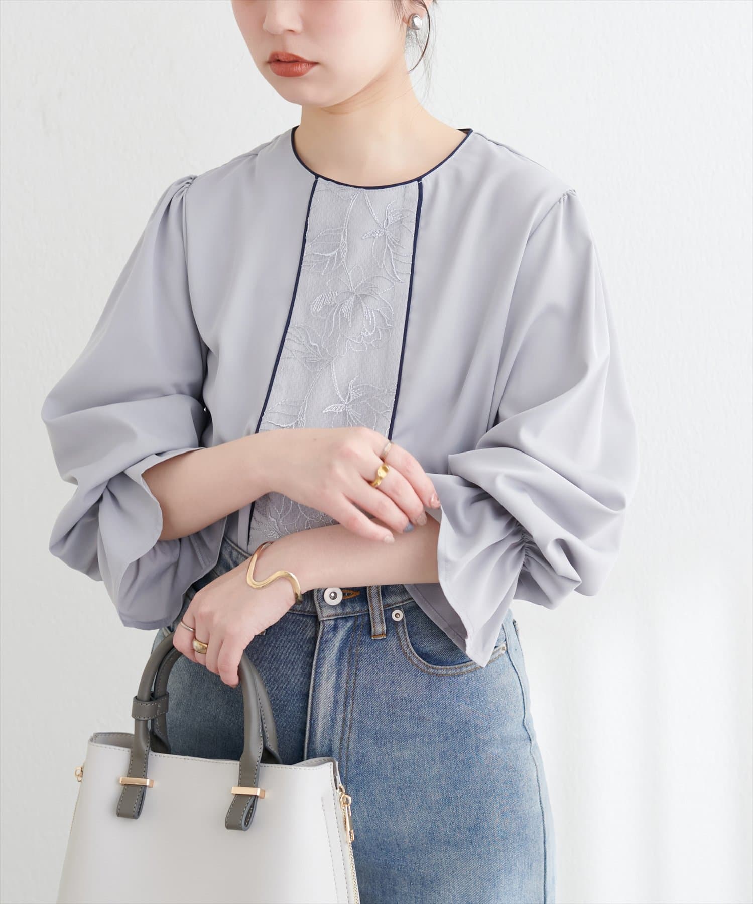 フロントレースが上品な華やかさを演出してくれるブラウス。