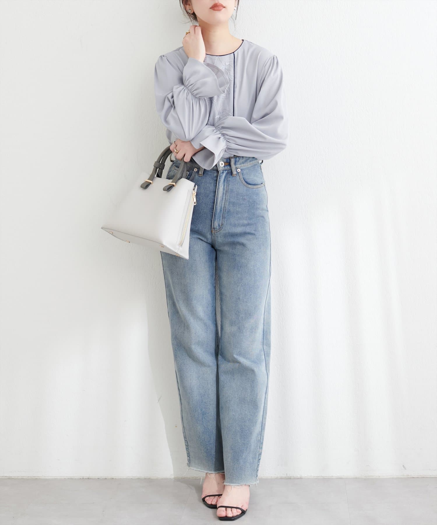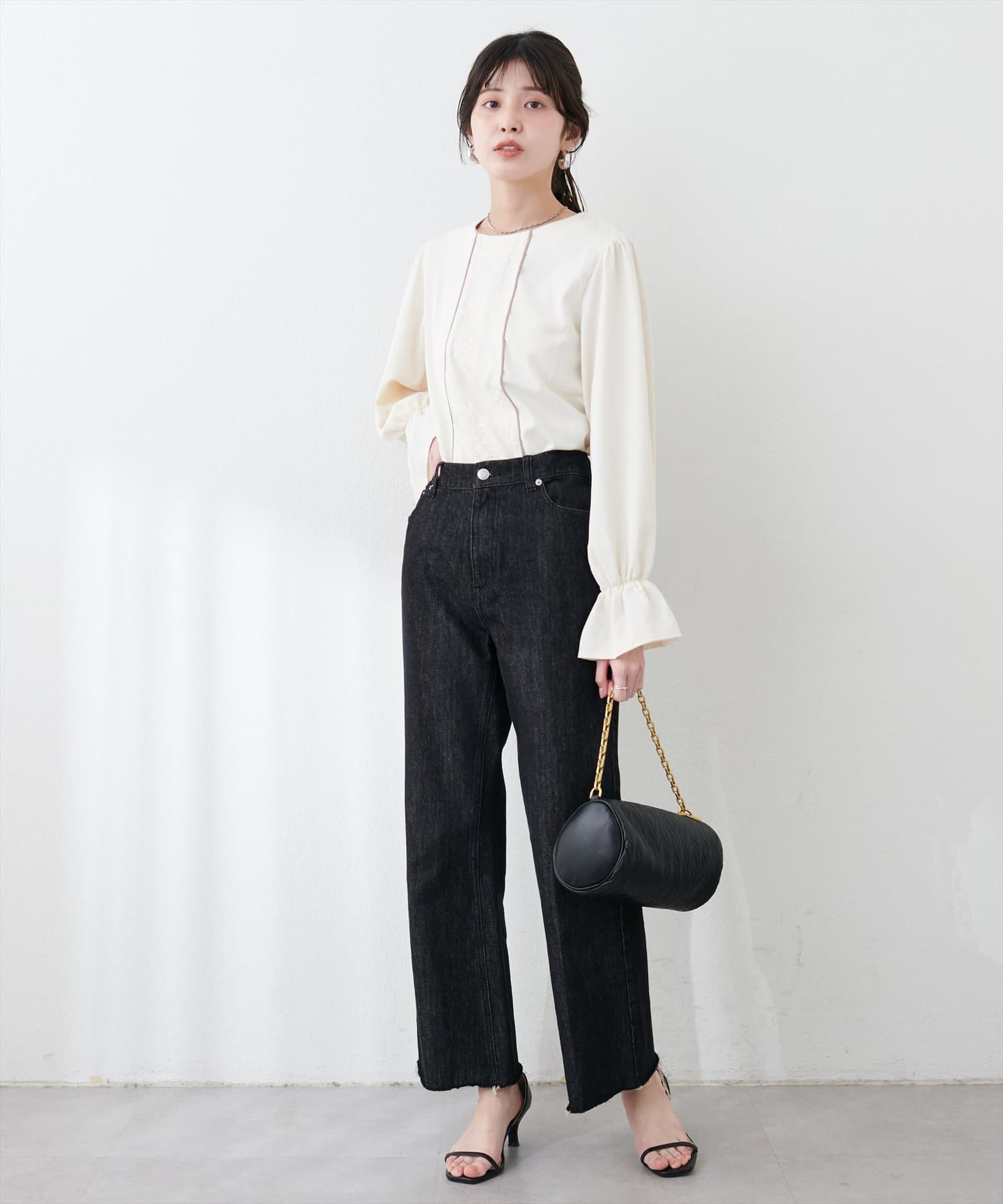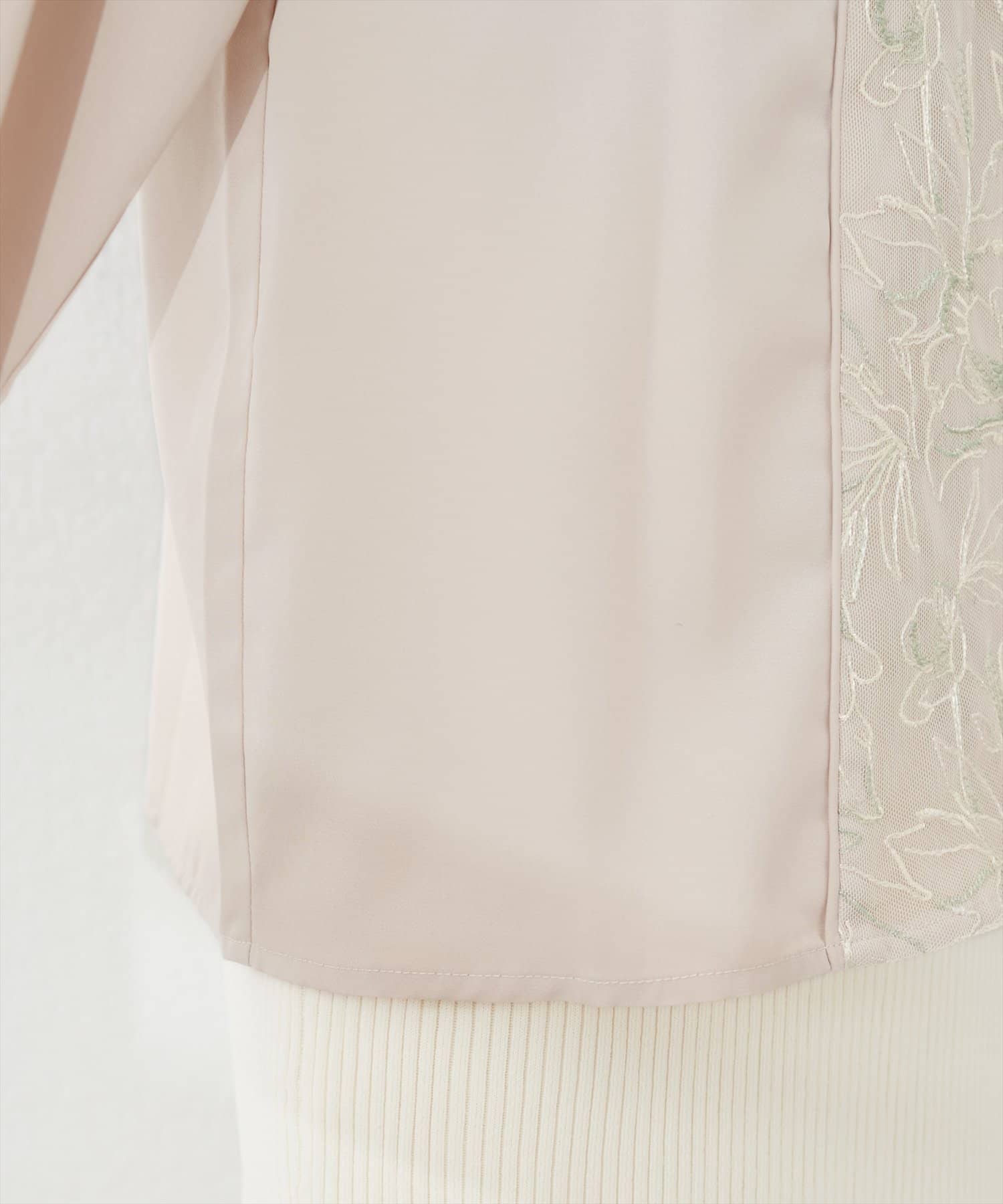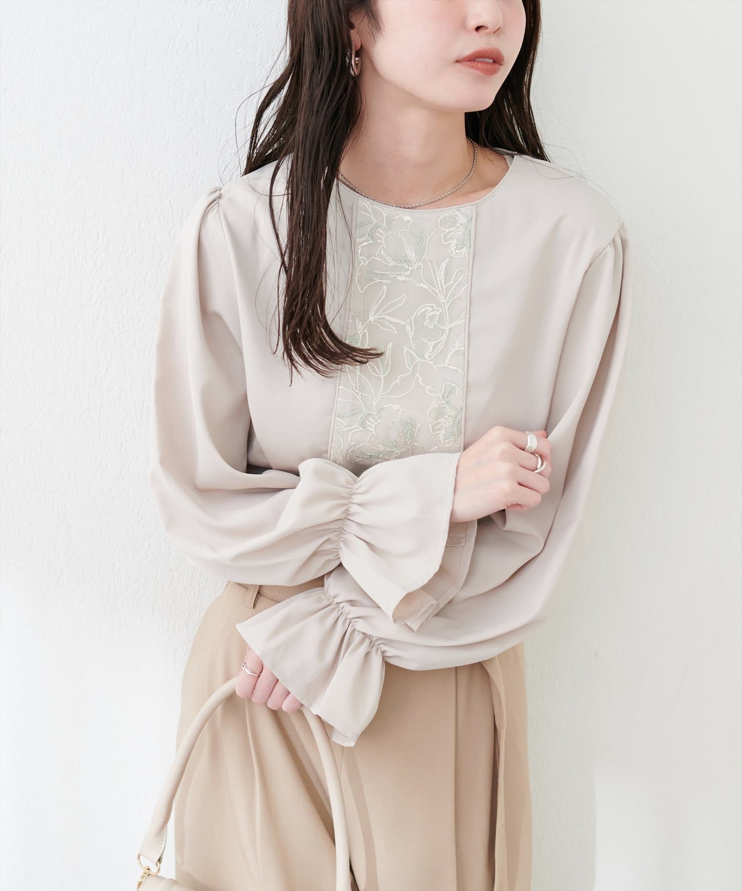 フロントレースが上品な華やかさを演出してくれるブラウス。