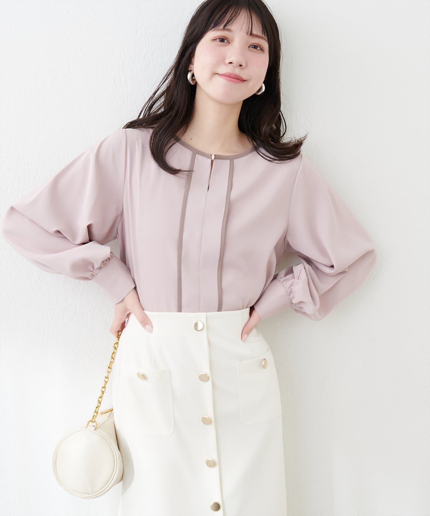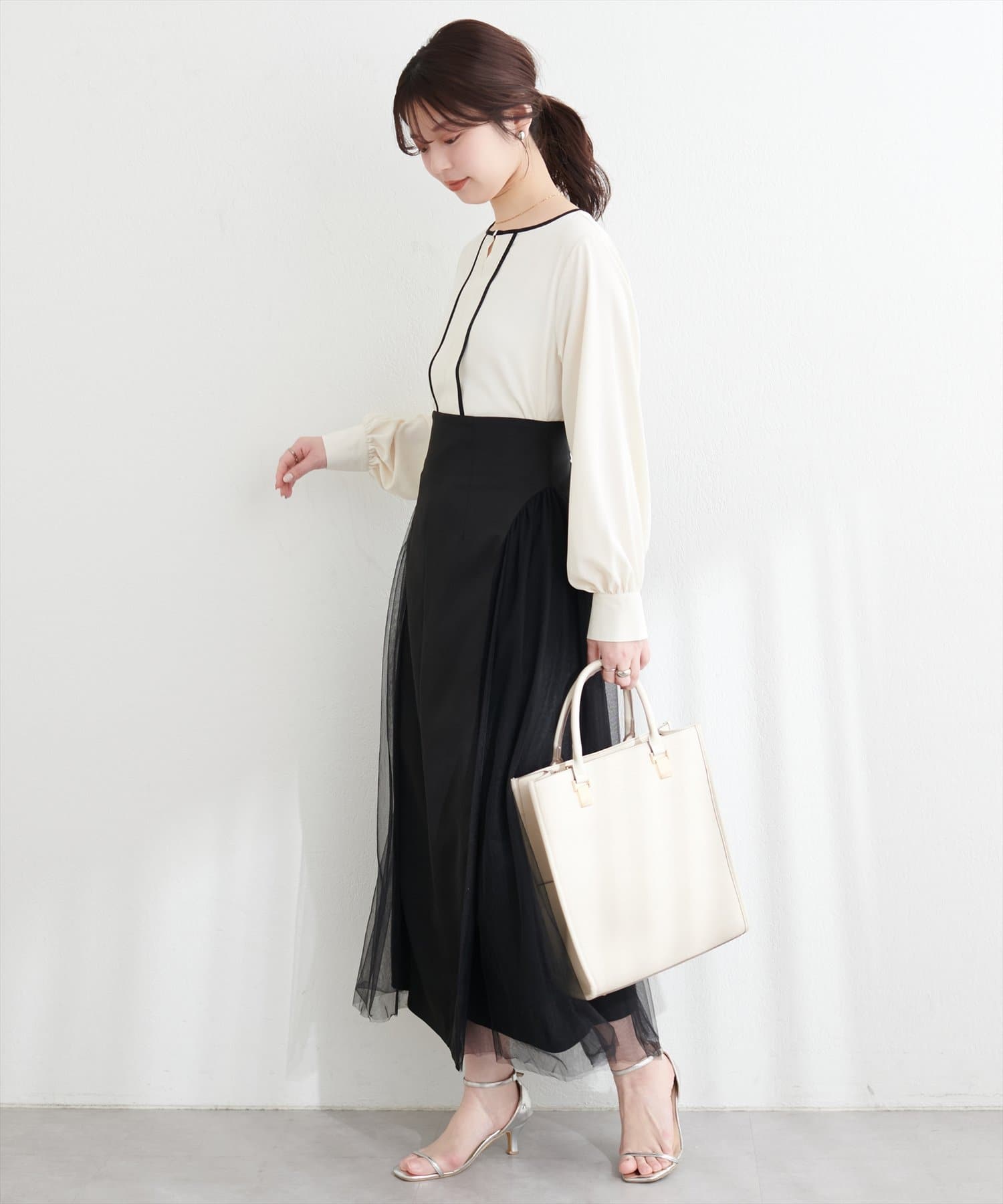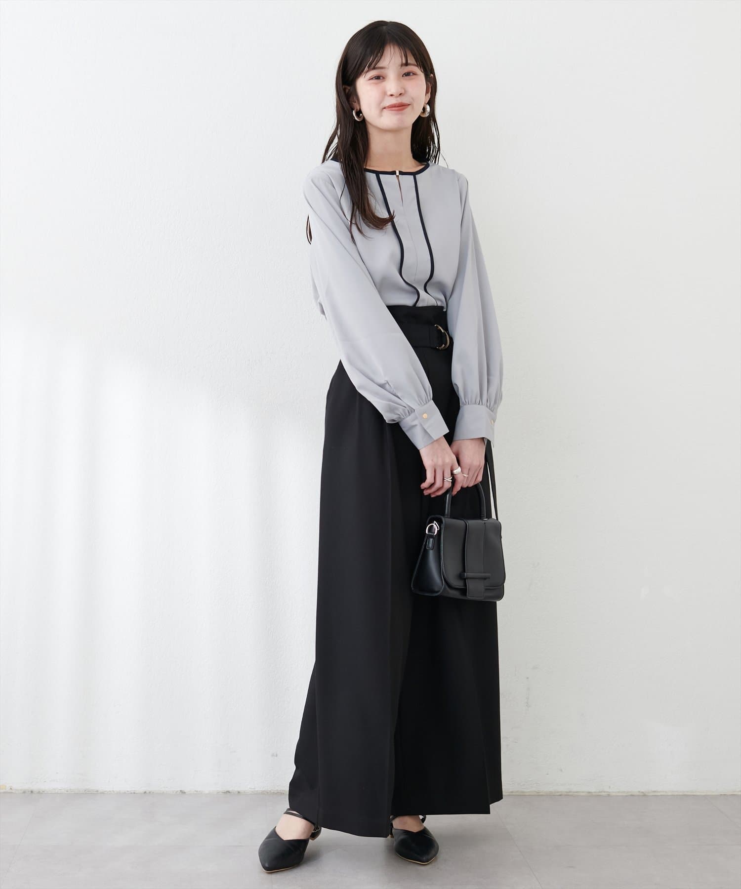 さらっとしたポリエステル素材で落ち感のある生地が、コーデを上品さと女性らしい印象に仕上げてくれます。