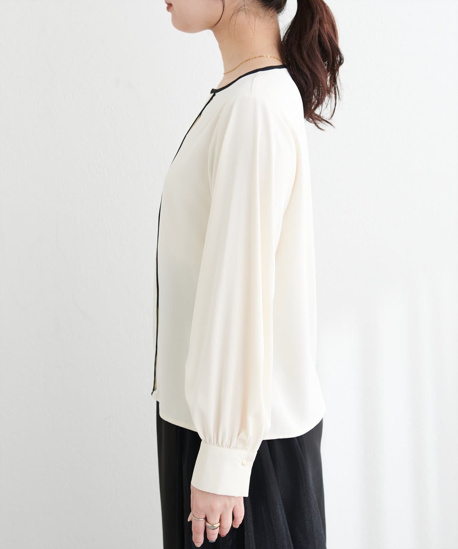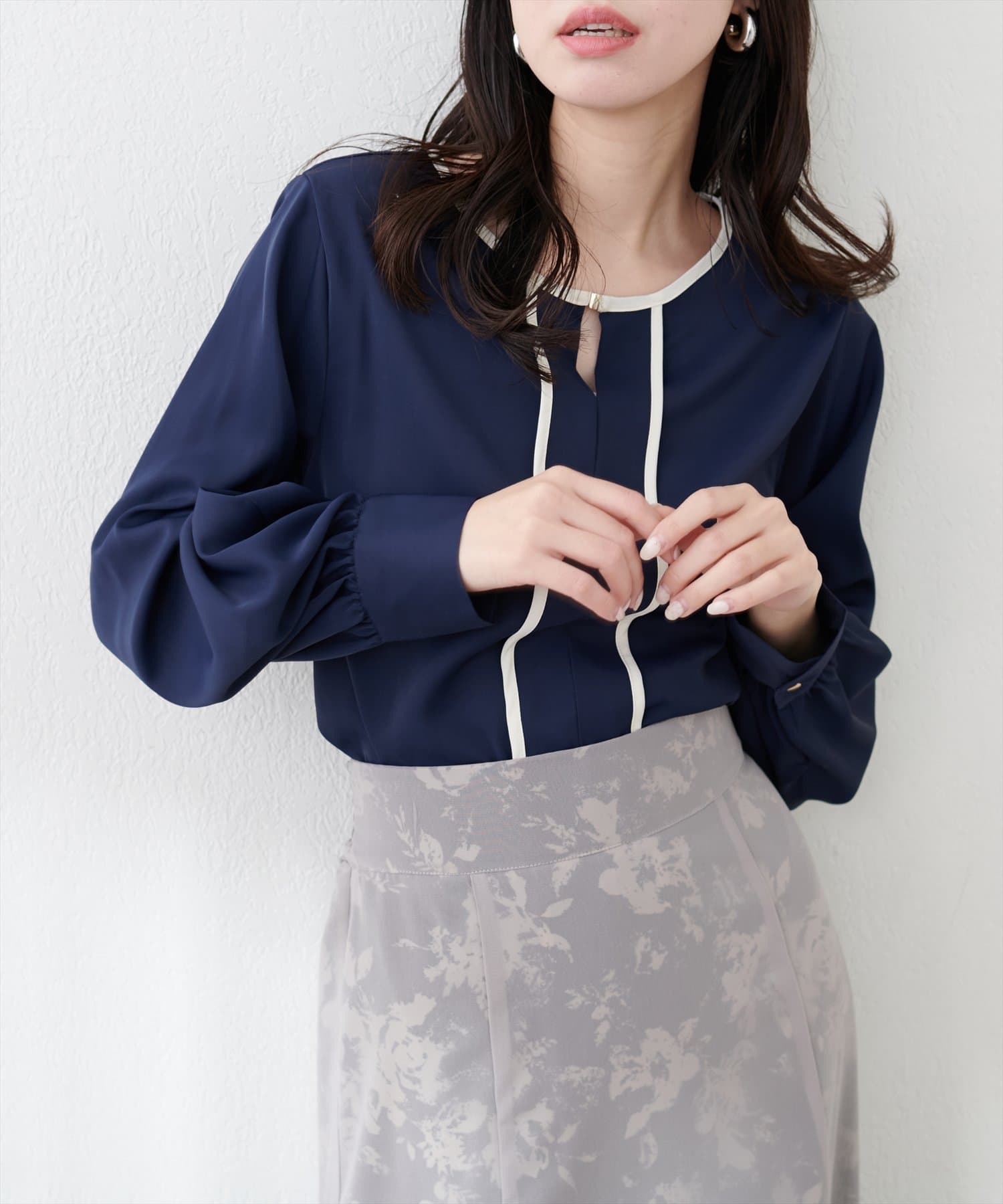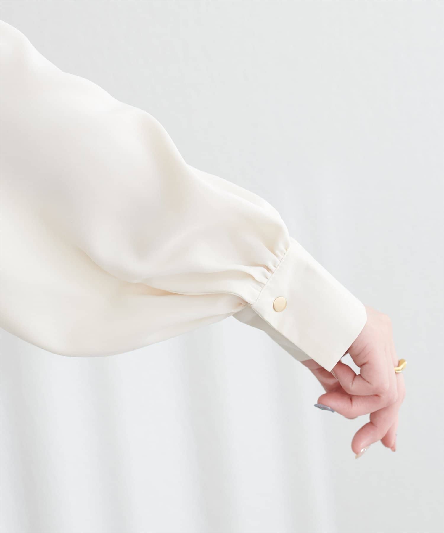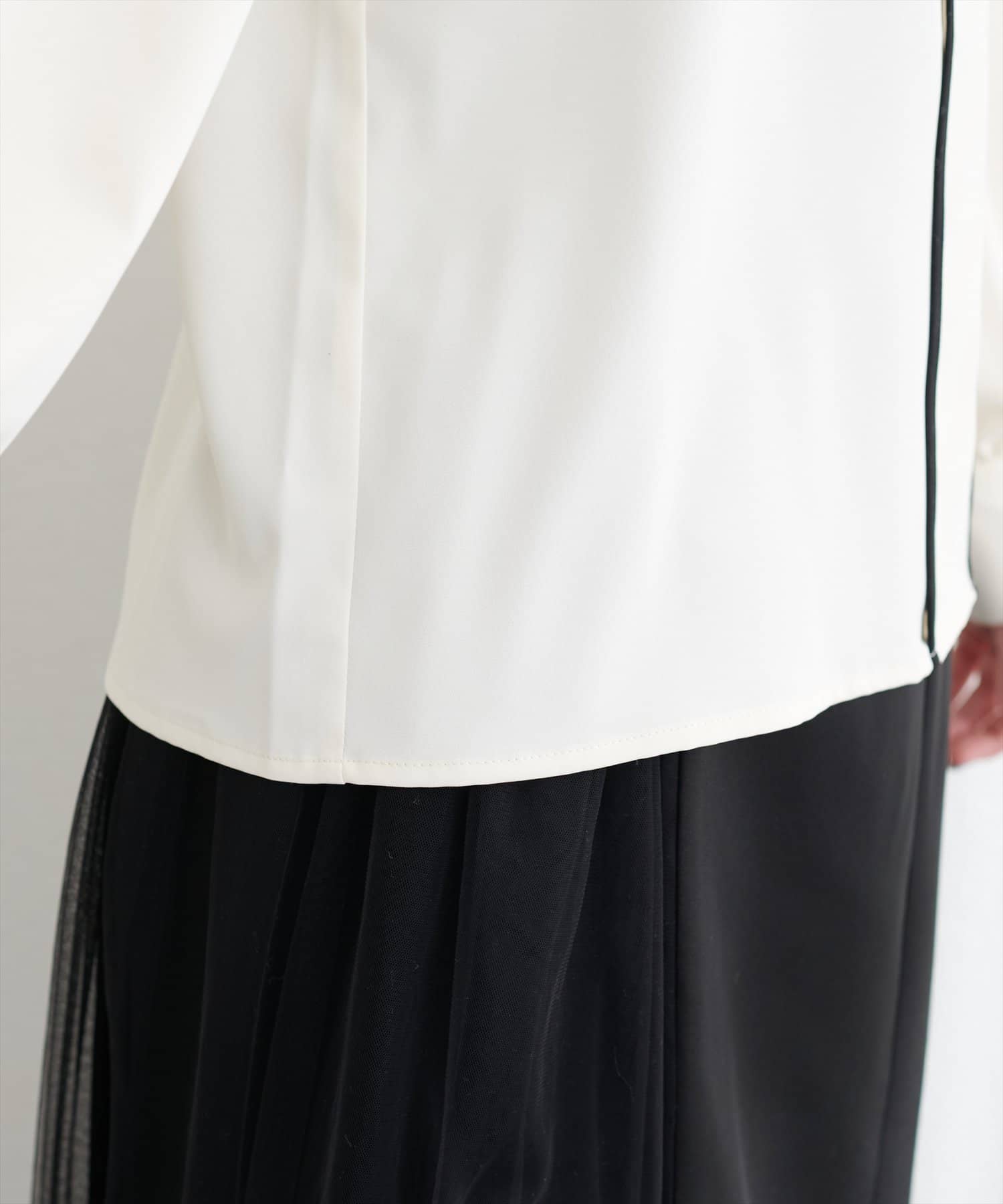 さらっとしたポリエステル素材で落ち感のある生地が、コーデを上品さと女性らしい印象に仕上げてくれます。