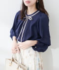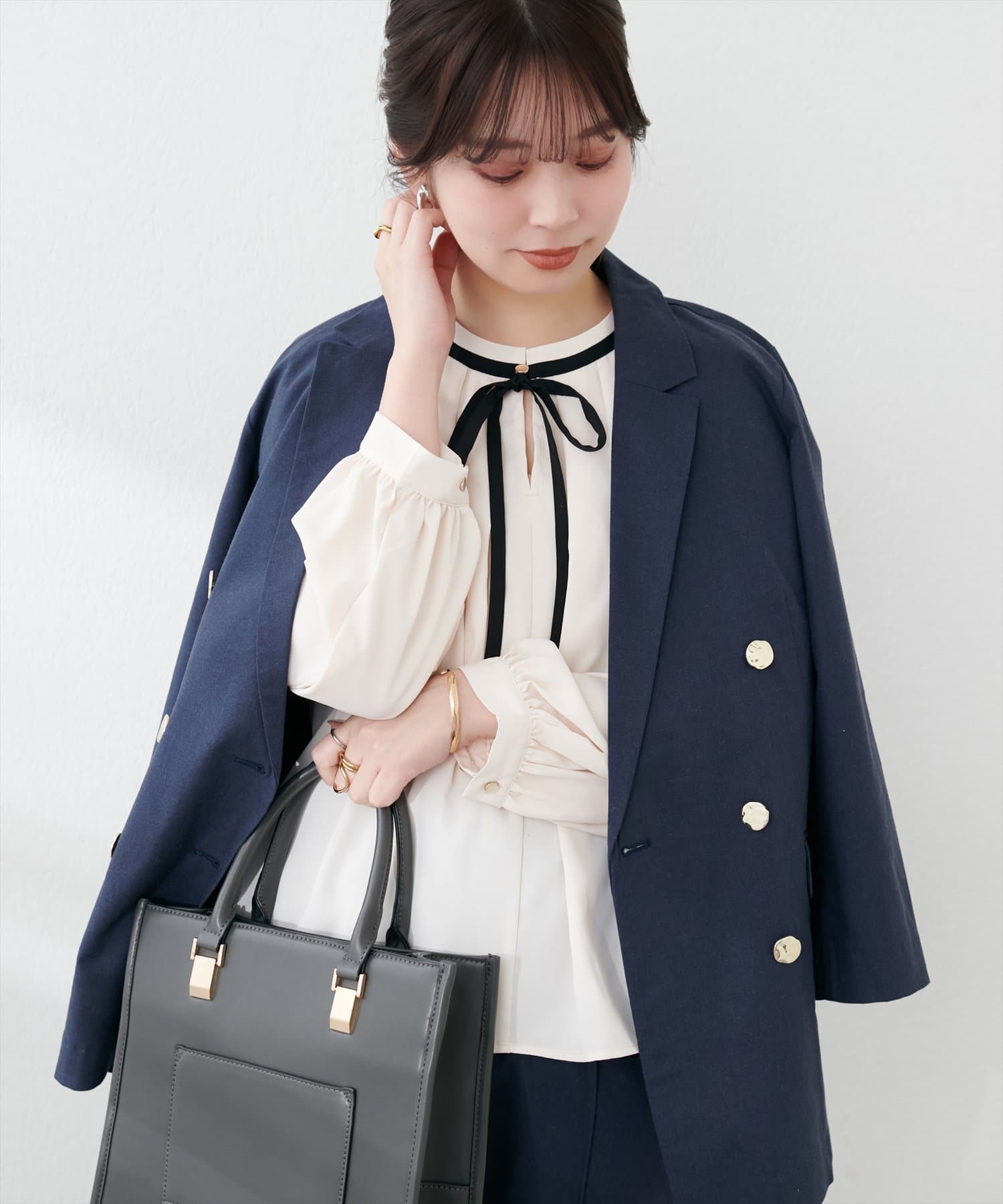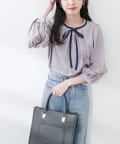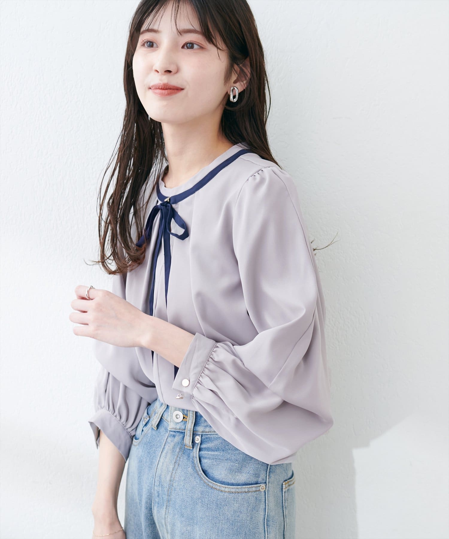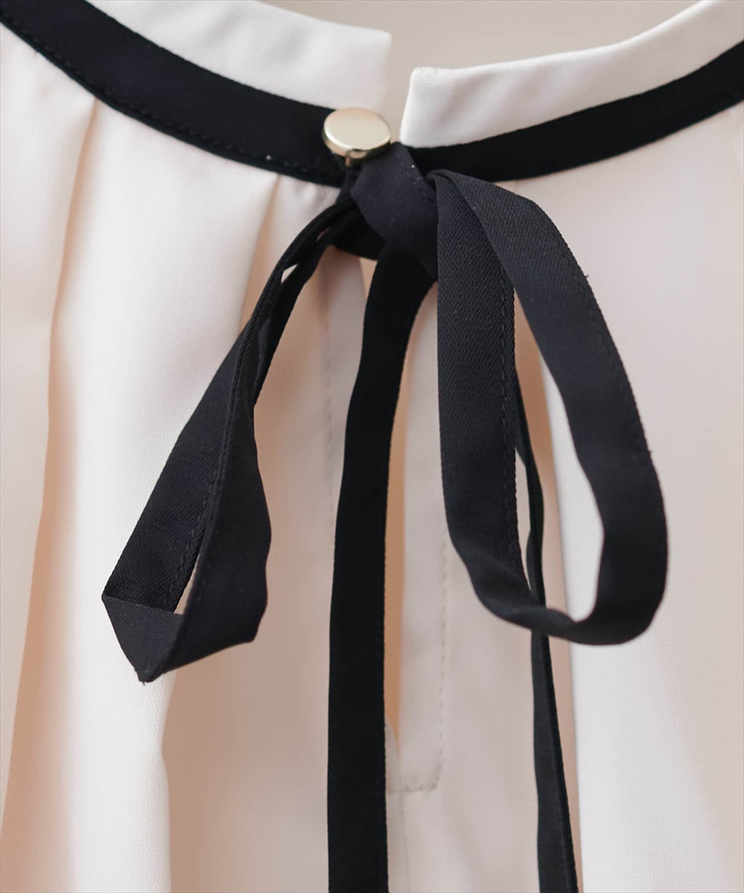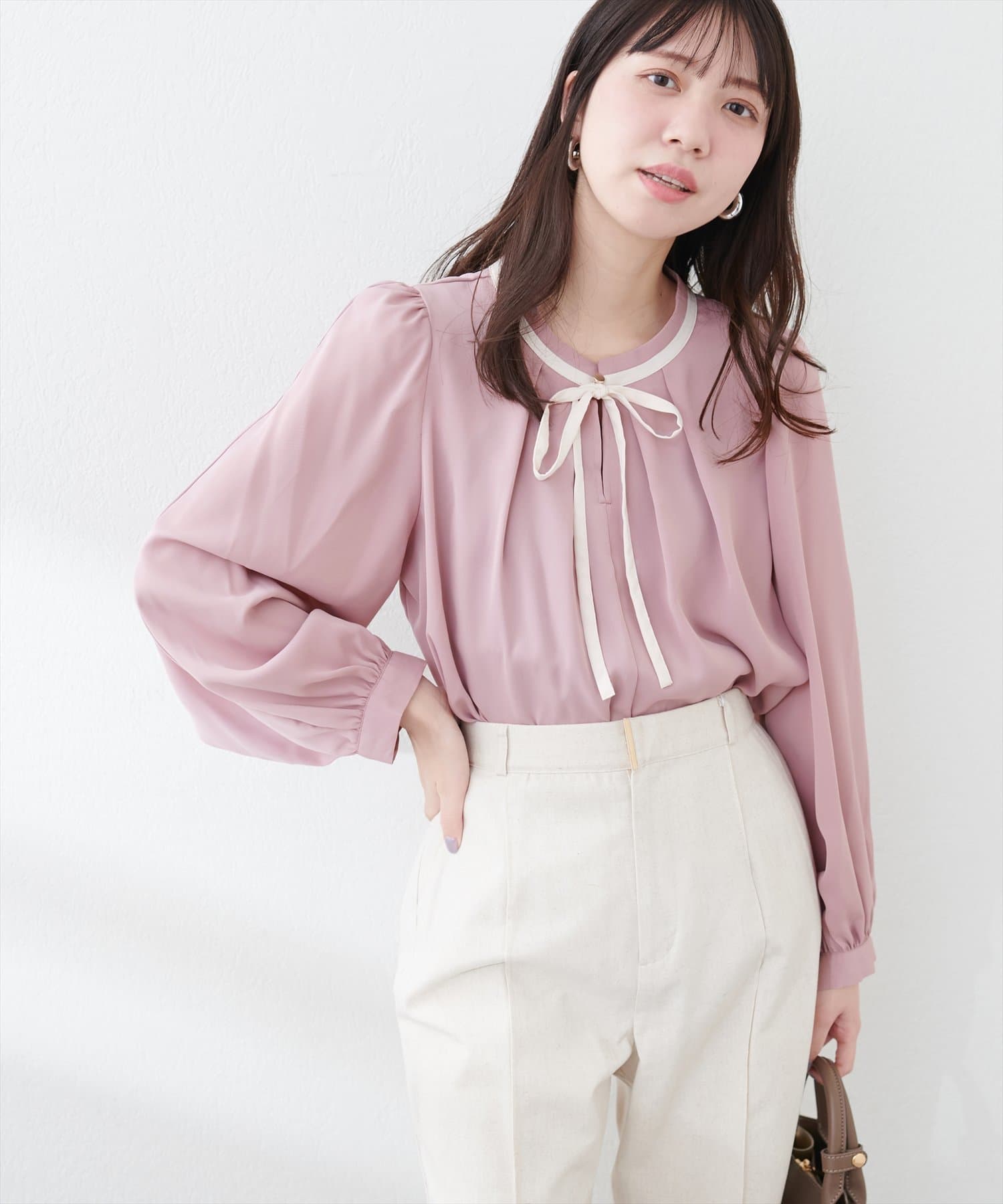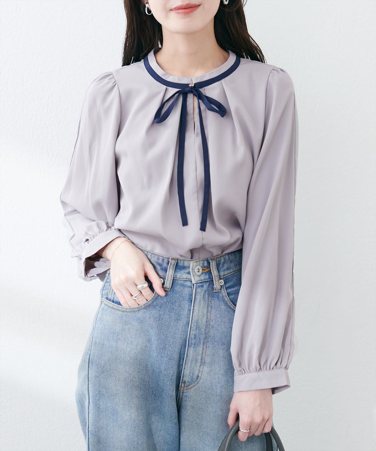 配色のリボンがシンプルのなかに華やかさをプラスしてくれるブラウス。