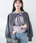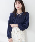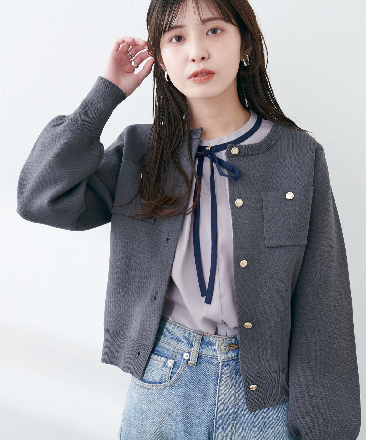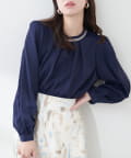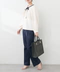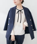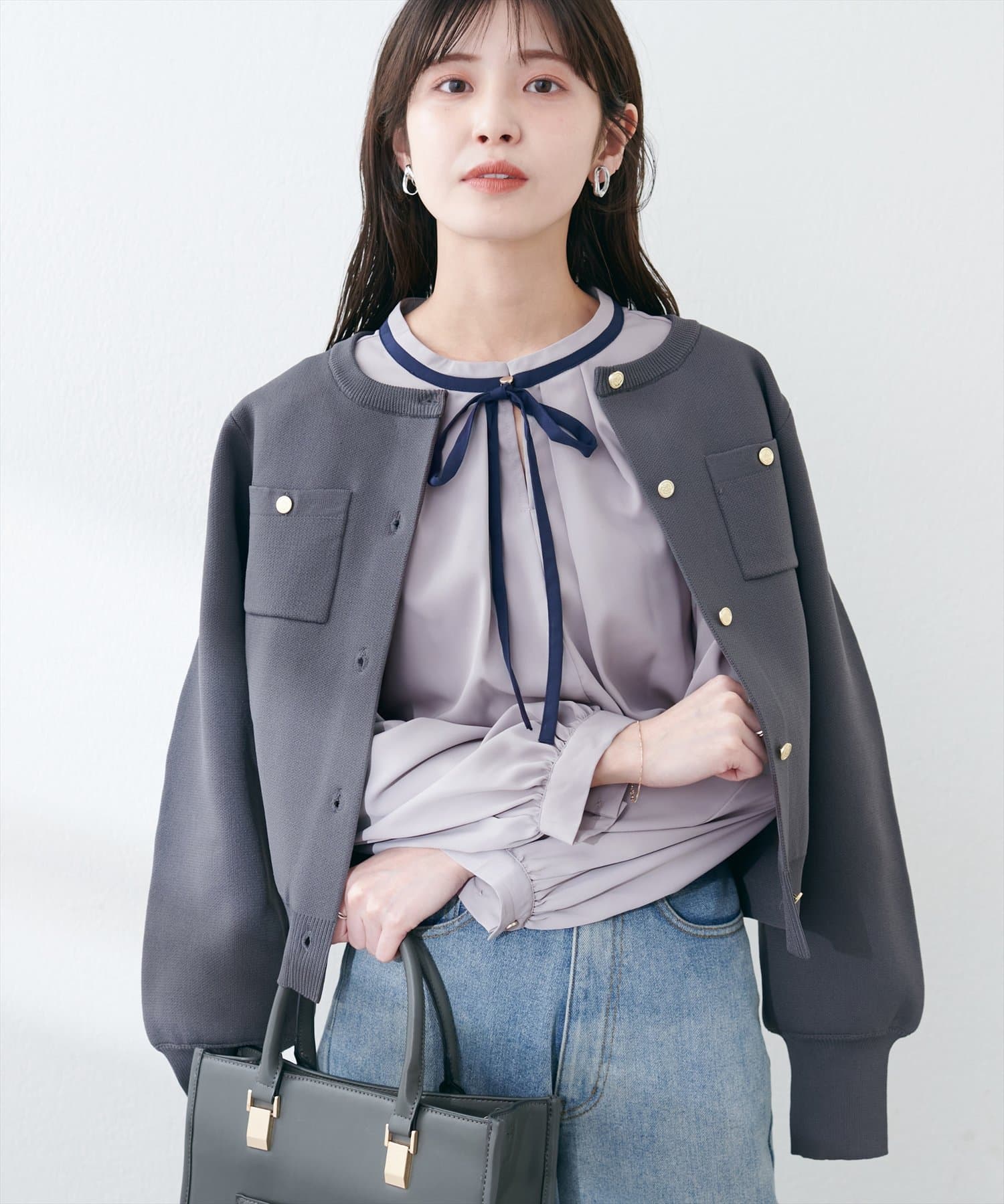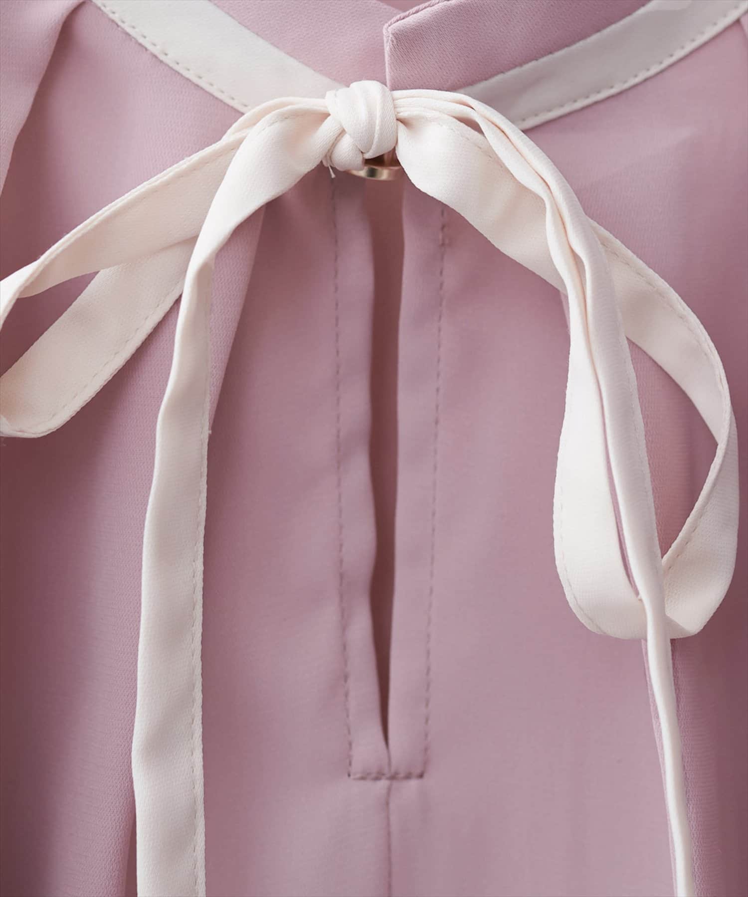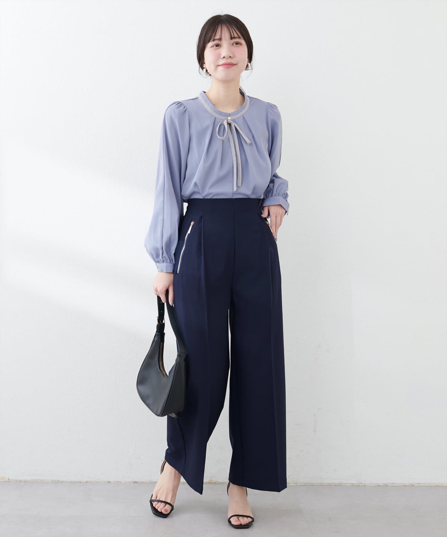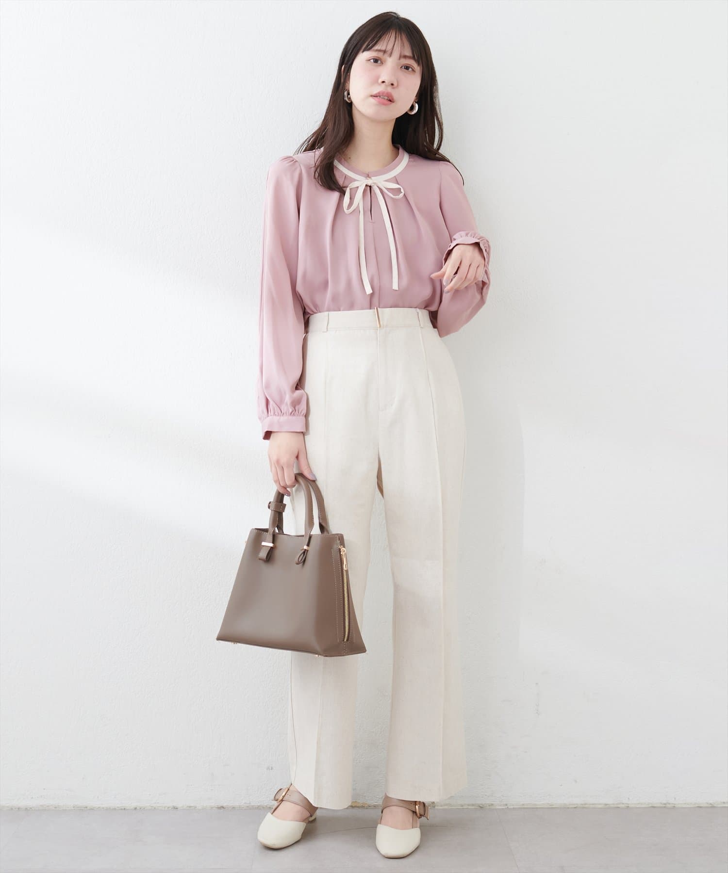 配色のリボンがシンプルのなかに華やかさをプラスしてくれるブラウス。