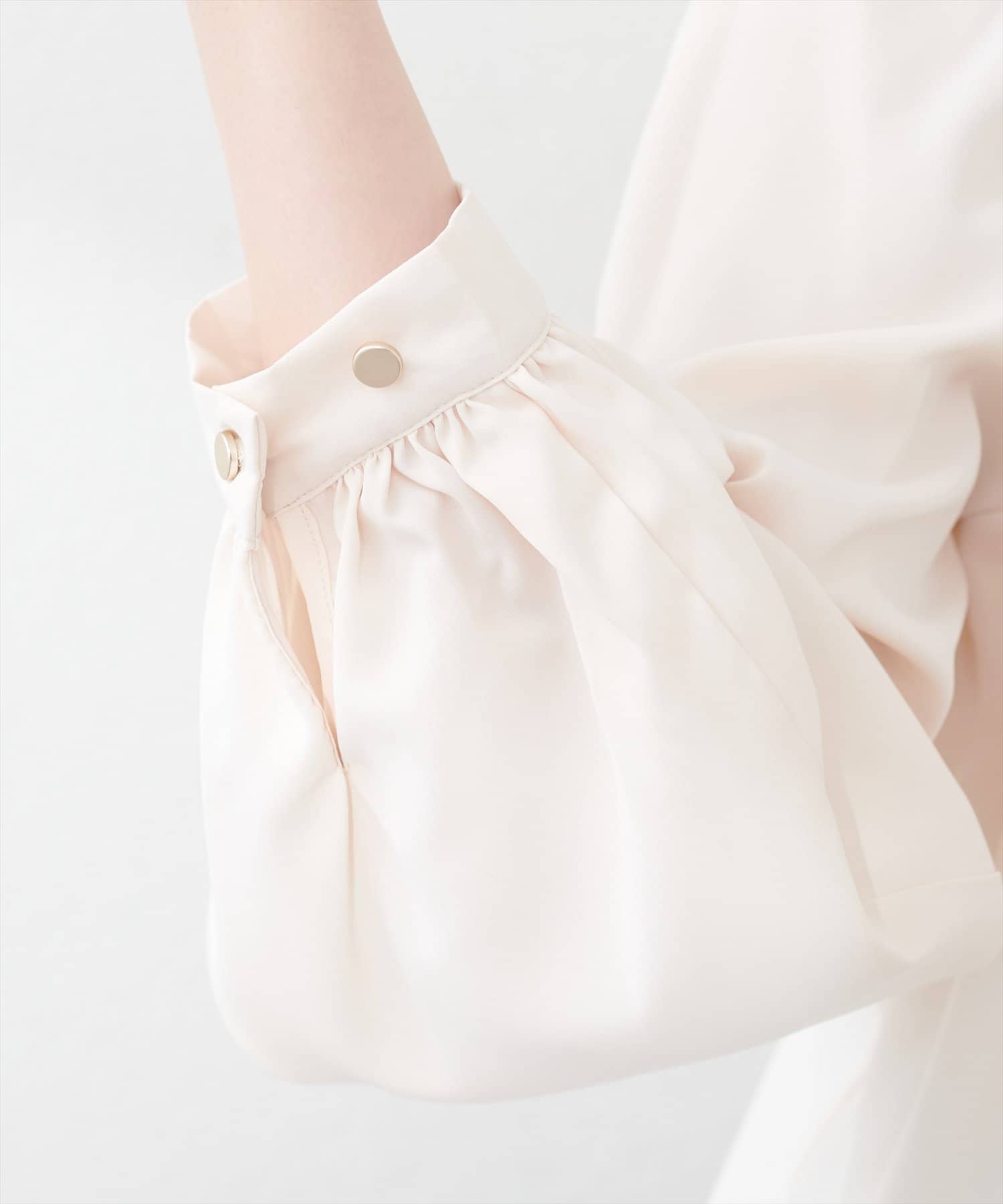 袖の中にはボタンが付いていて、スタンダードな袖と、中のボタンを止めるとくしゅっとデザイン性のある袖に。
