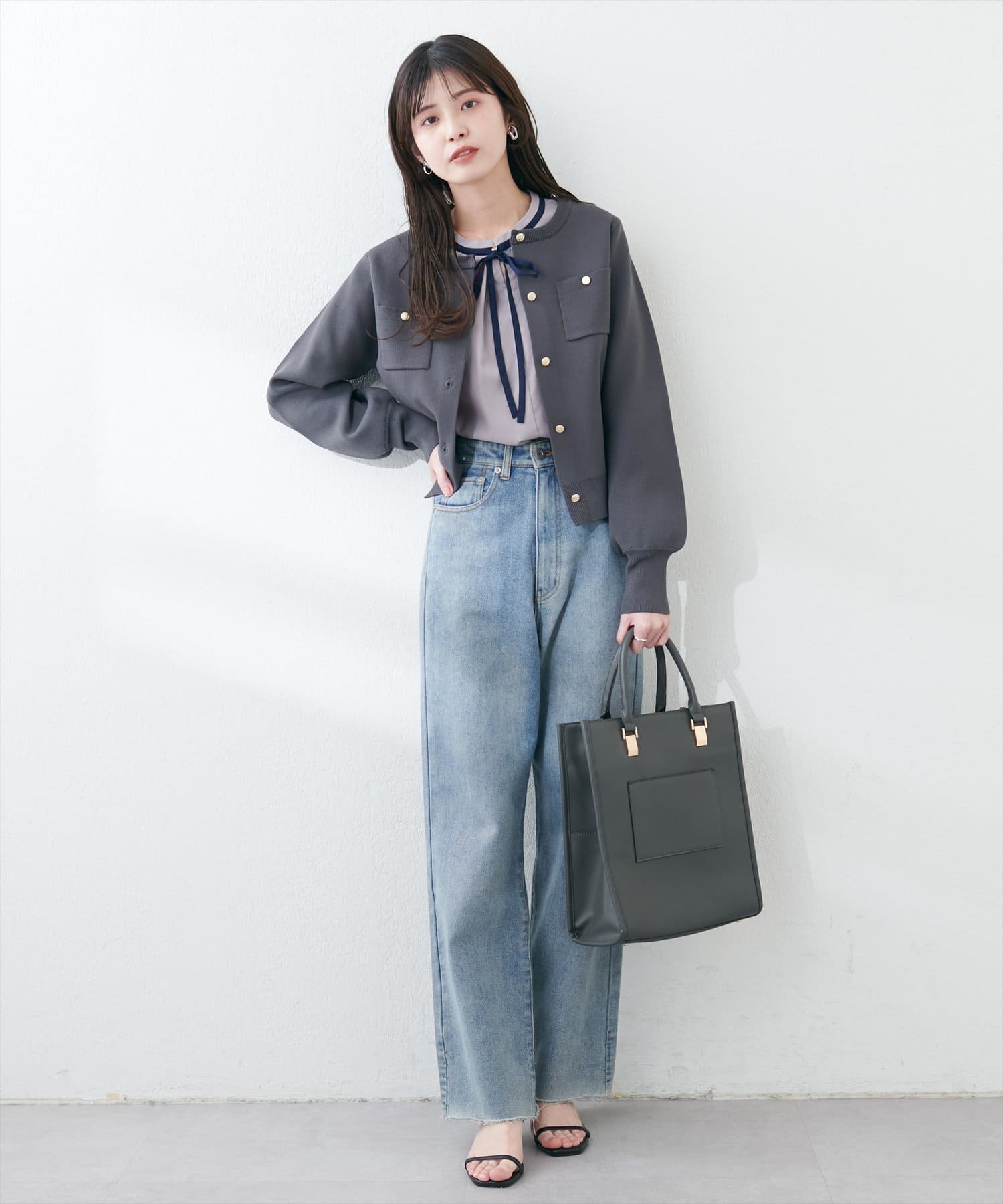 デニムパンツでカジュアルダウンしてデイリー使いにもおすすめです。