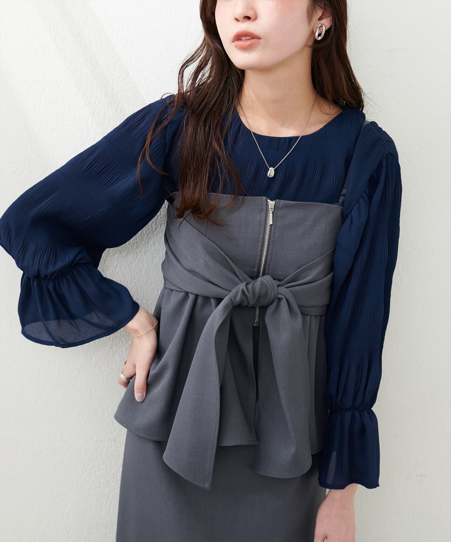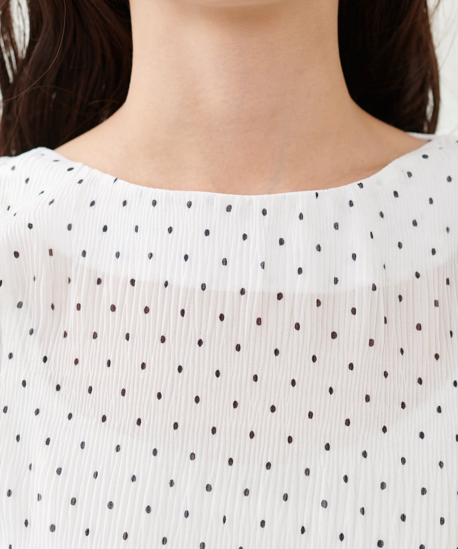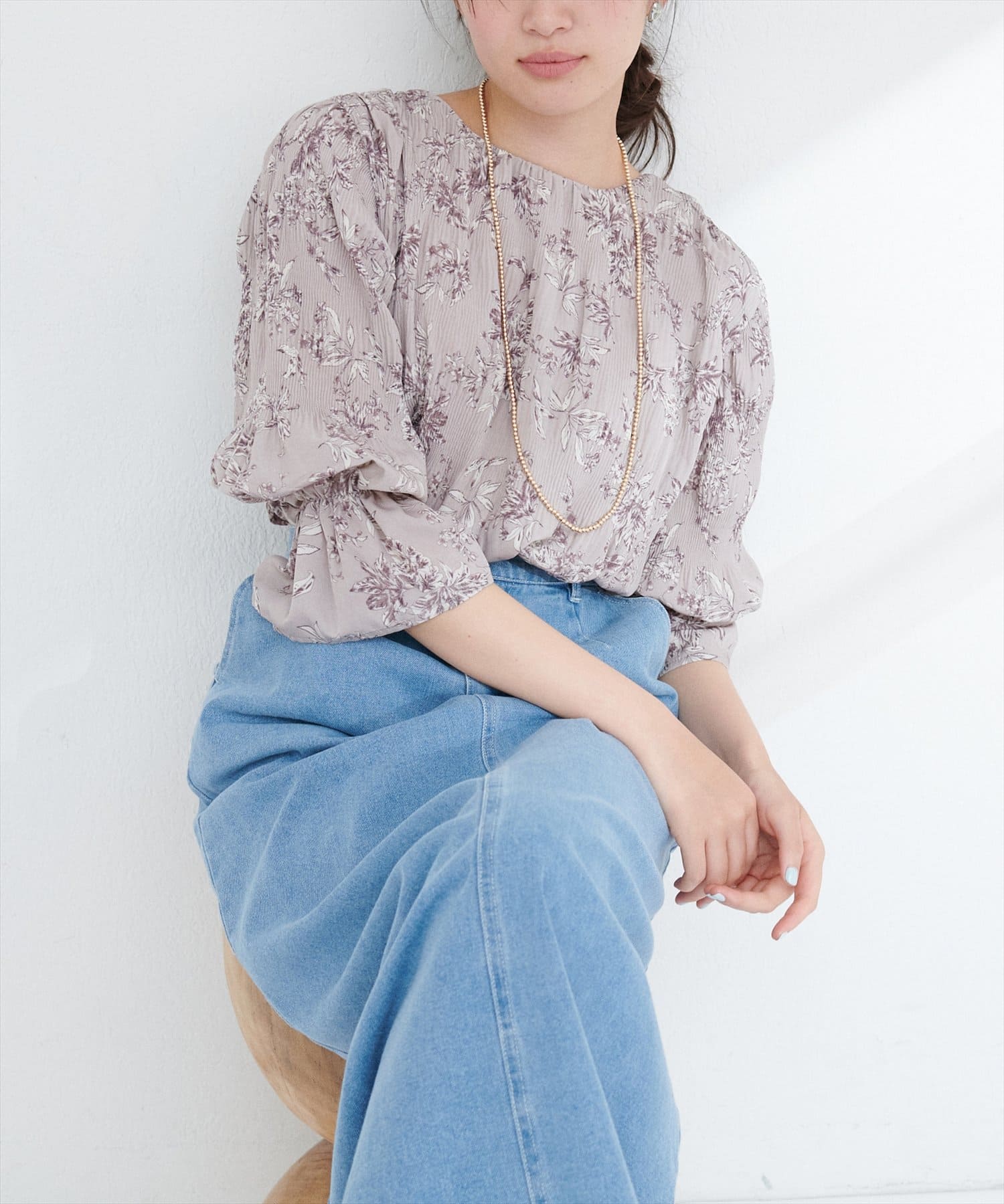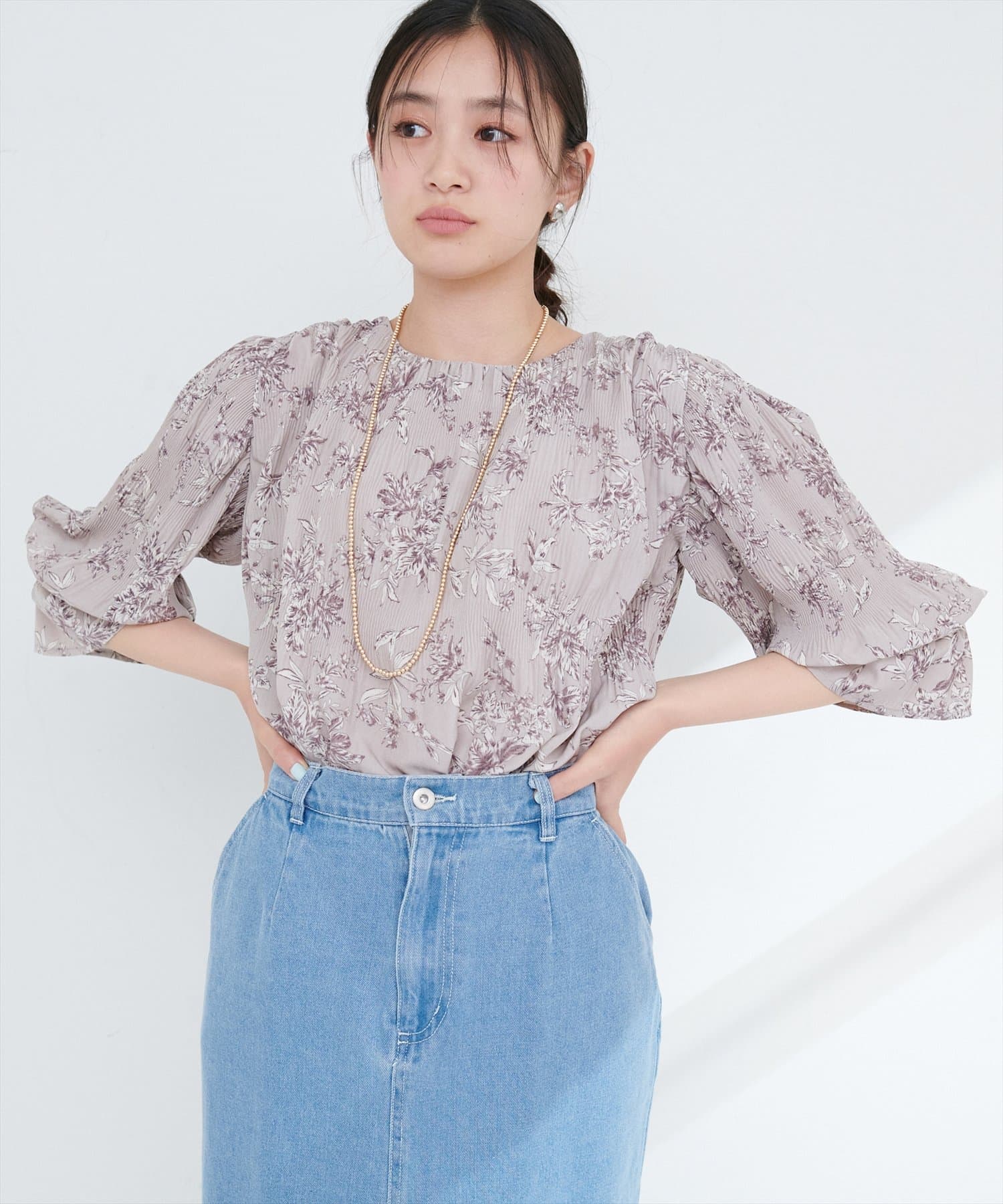 プリーツ素材が柔らかに揺れるフェミニンブラウス