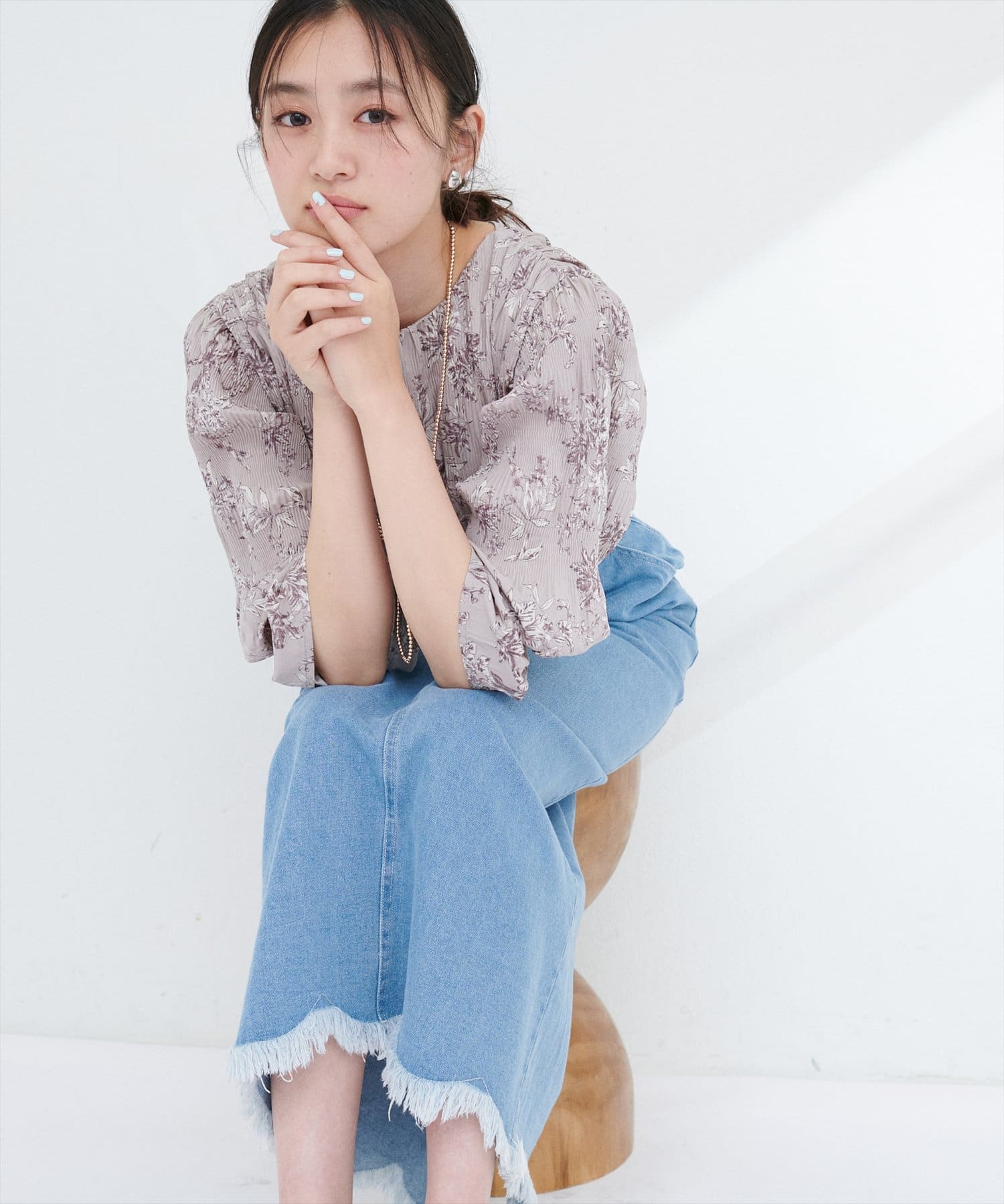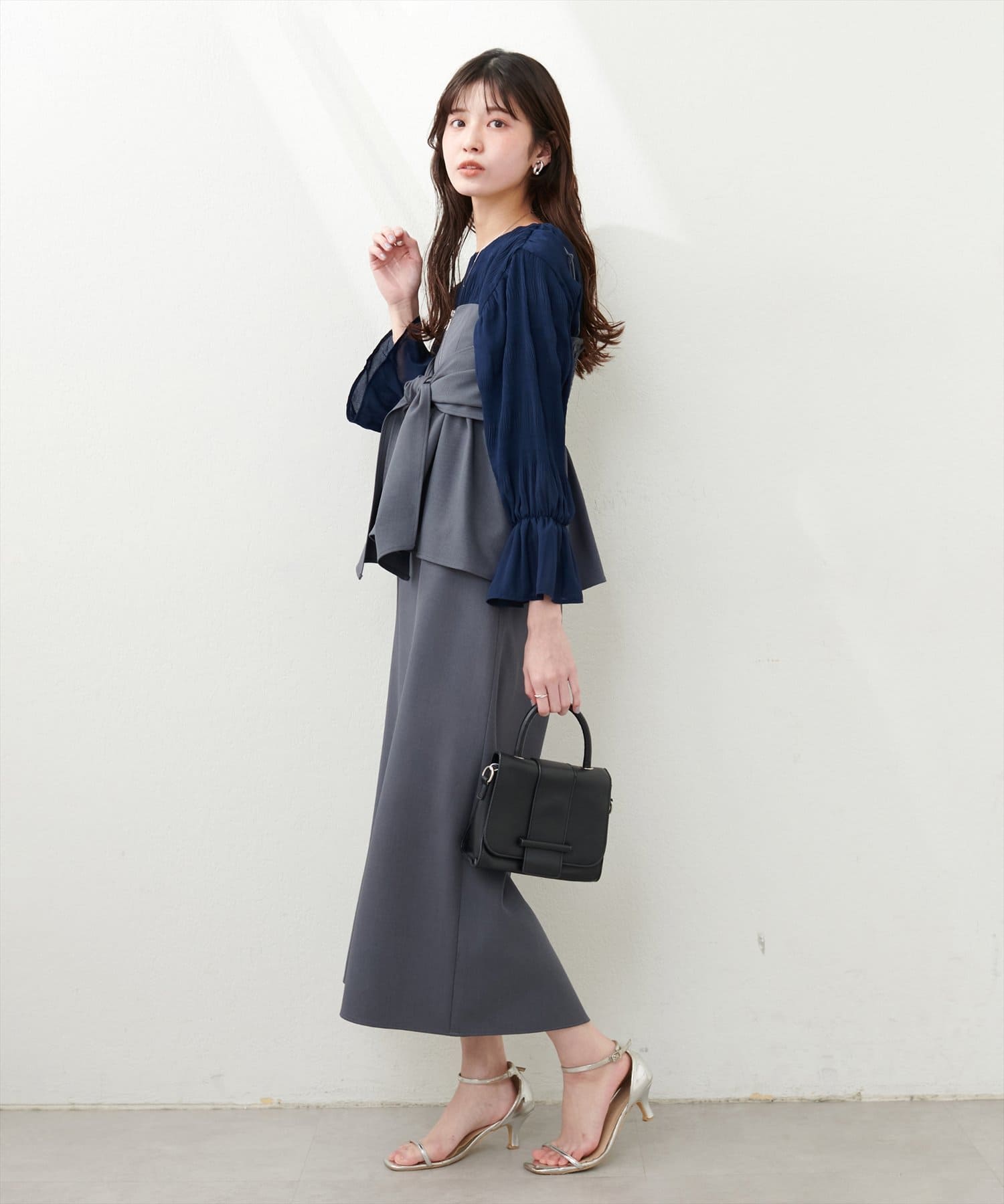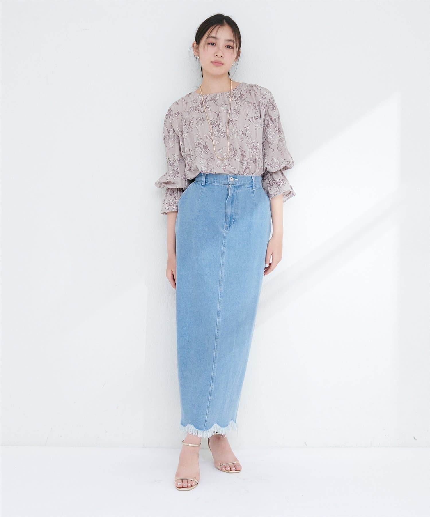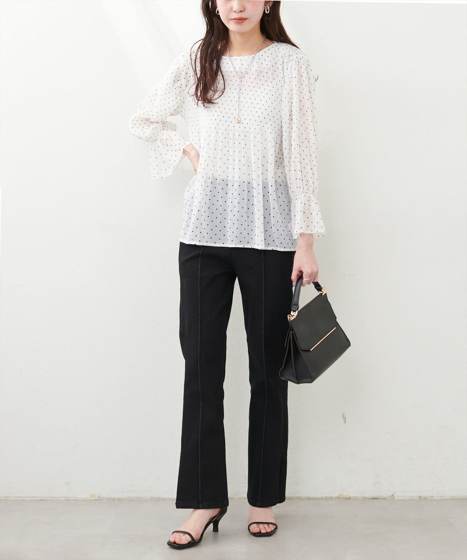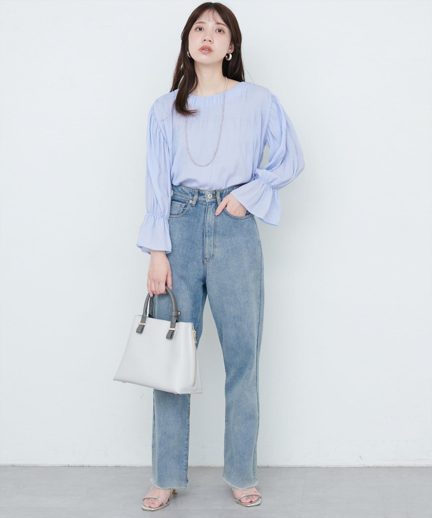 ブラウスの素材感が引き立つコーデに仕上がります。