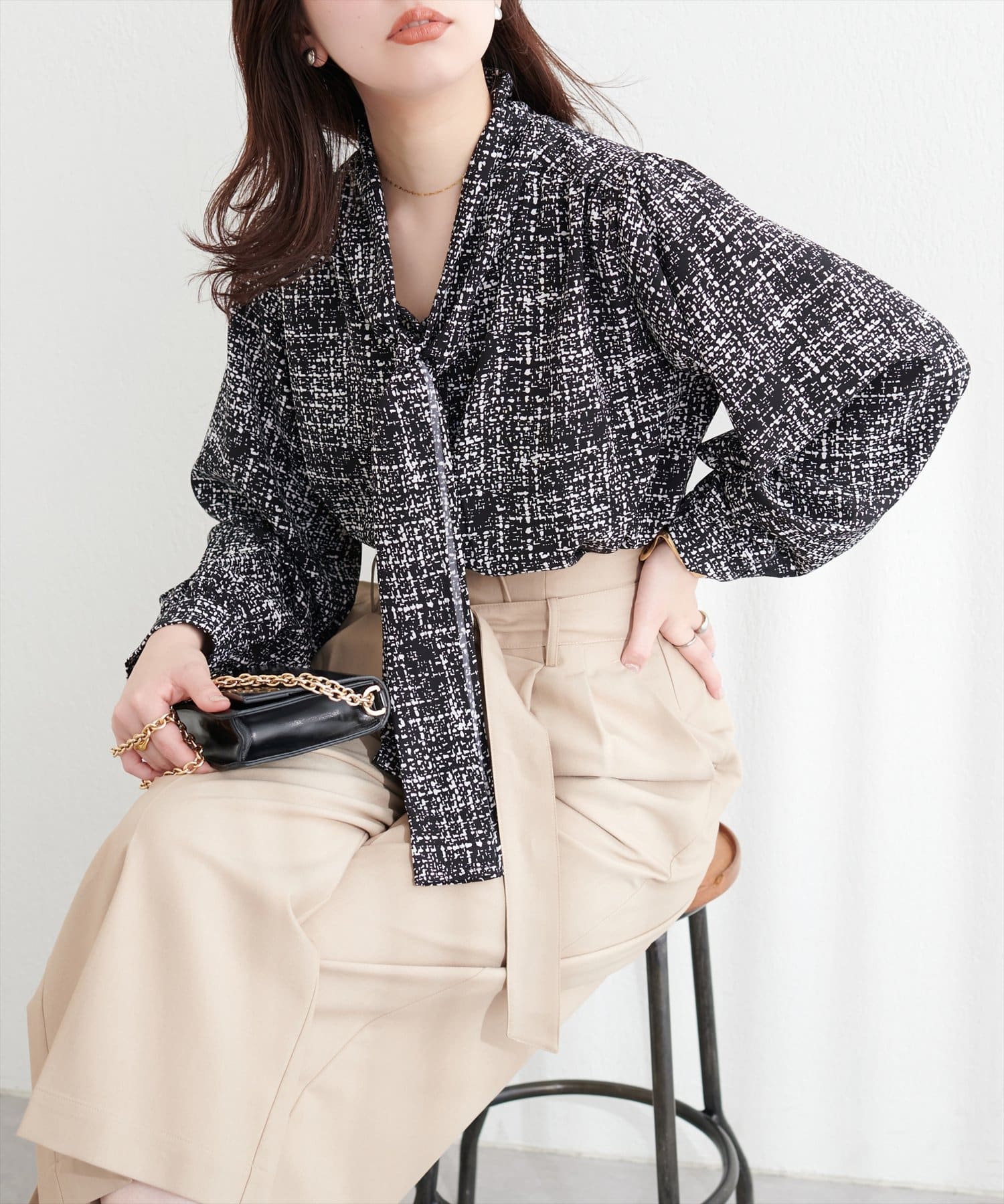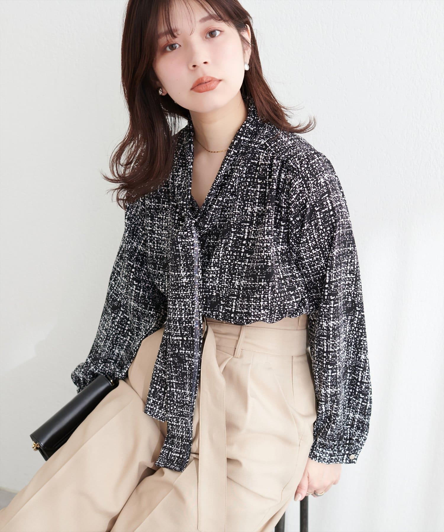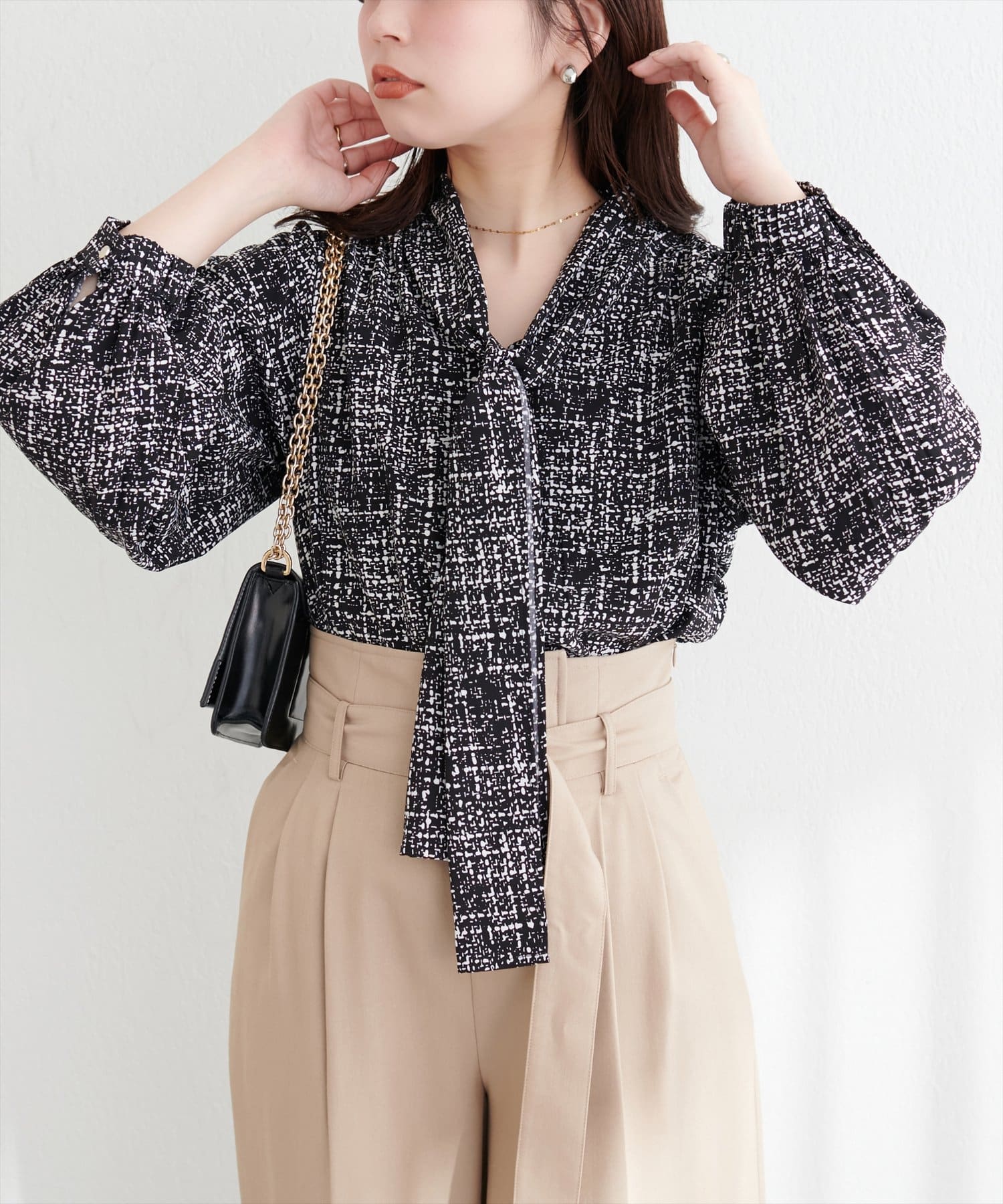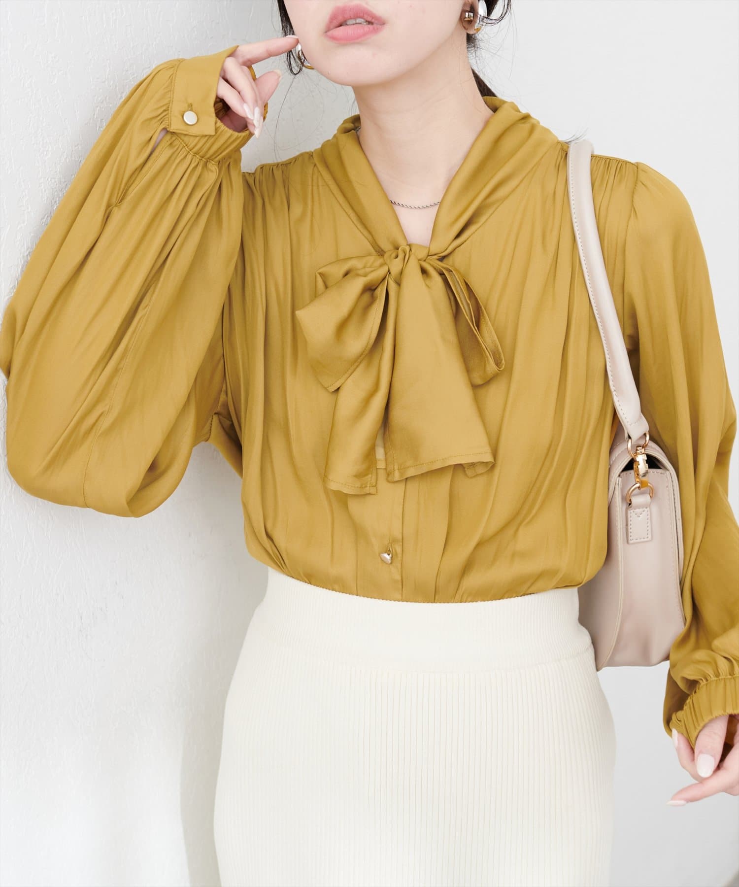 フェミニンな魅力をプラスしたリボンタイブラウス