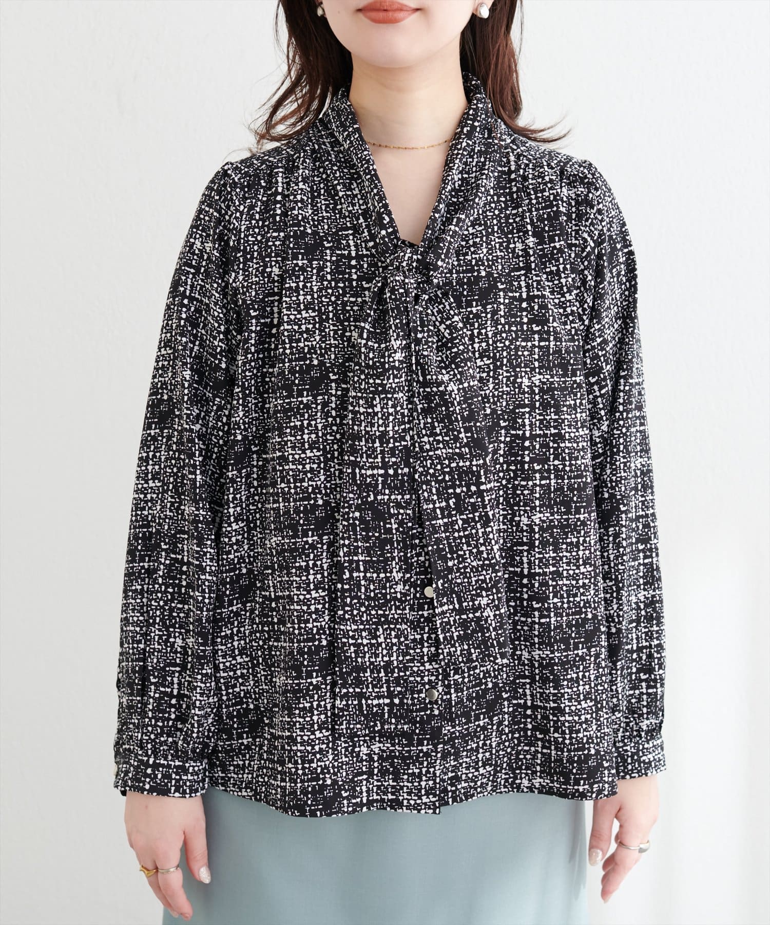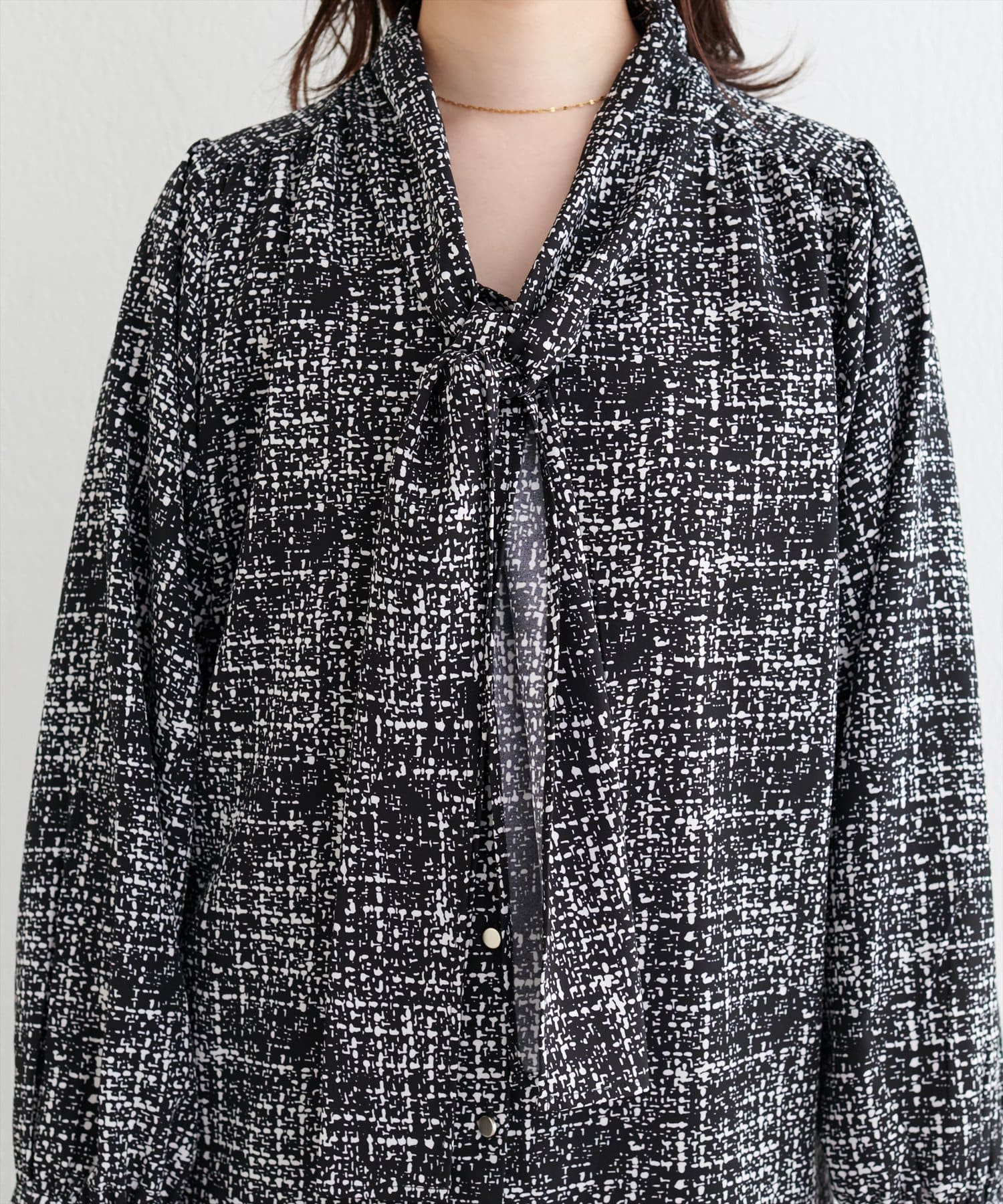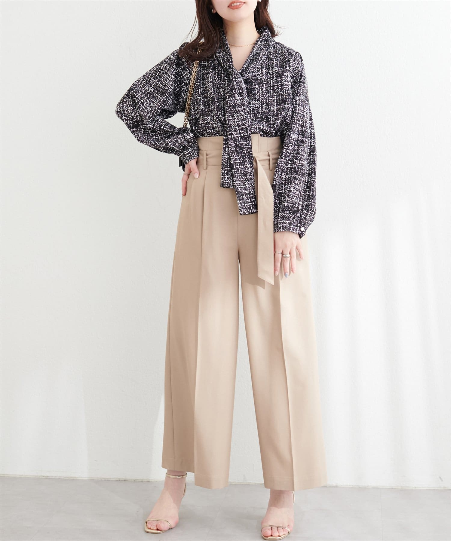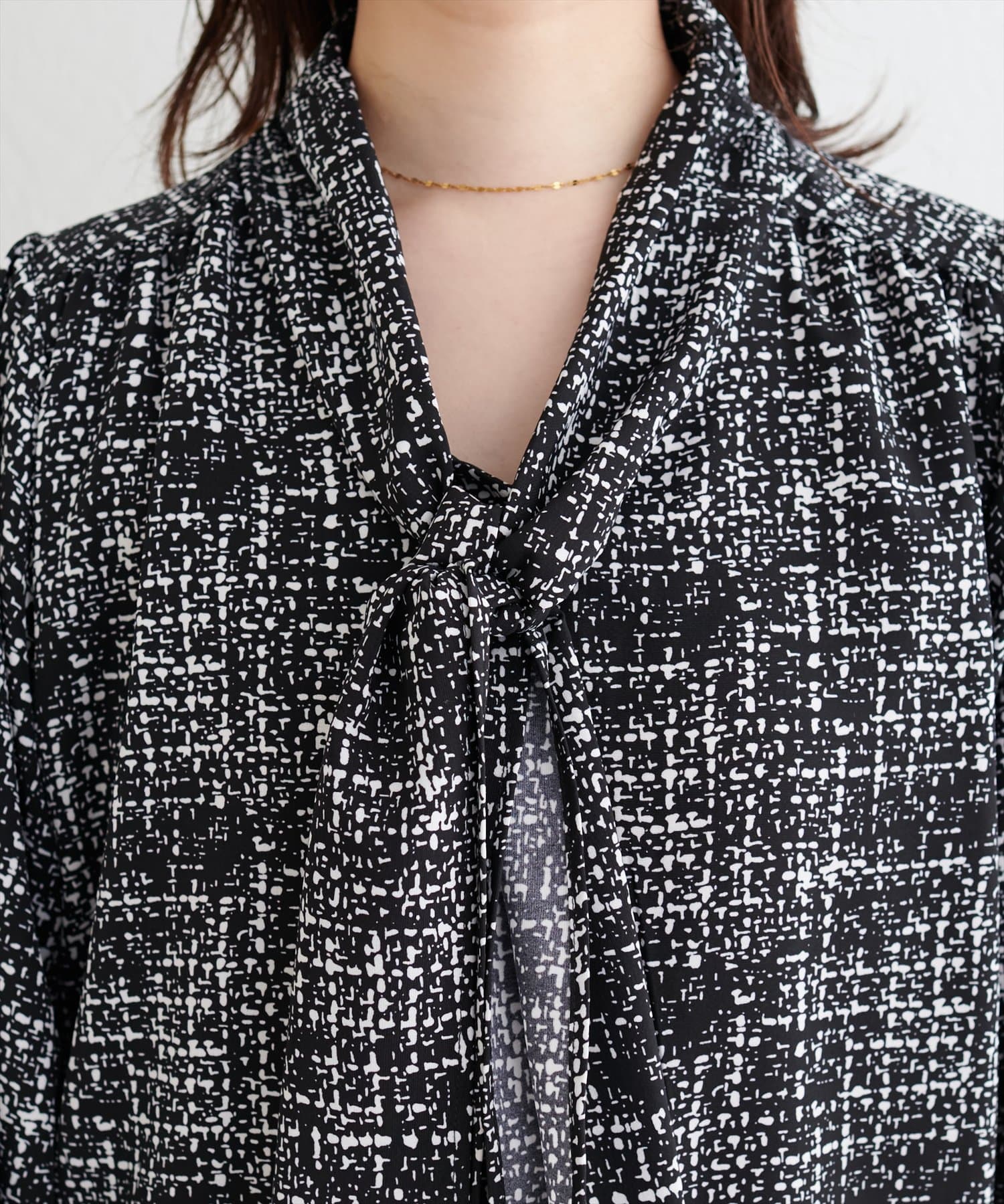 フェミニンな魅力をプラスしたリボンタイブラウス