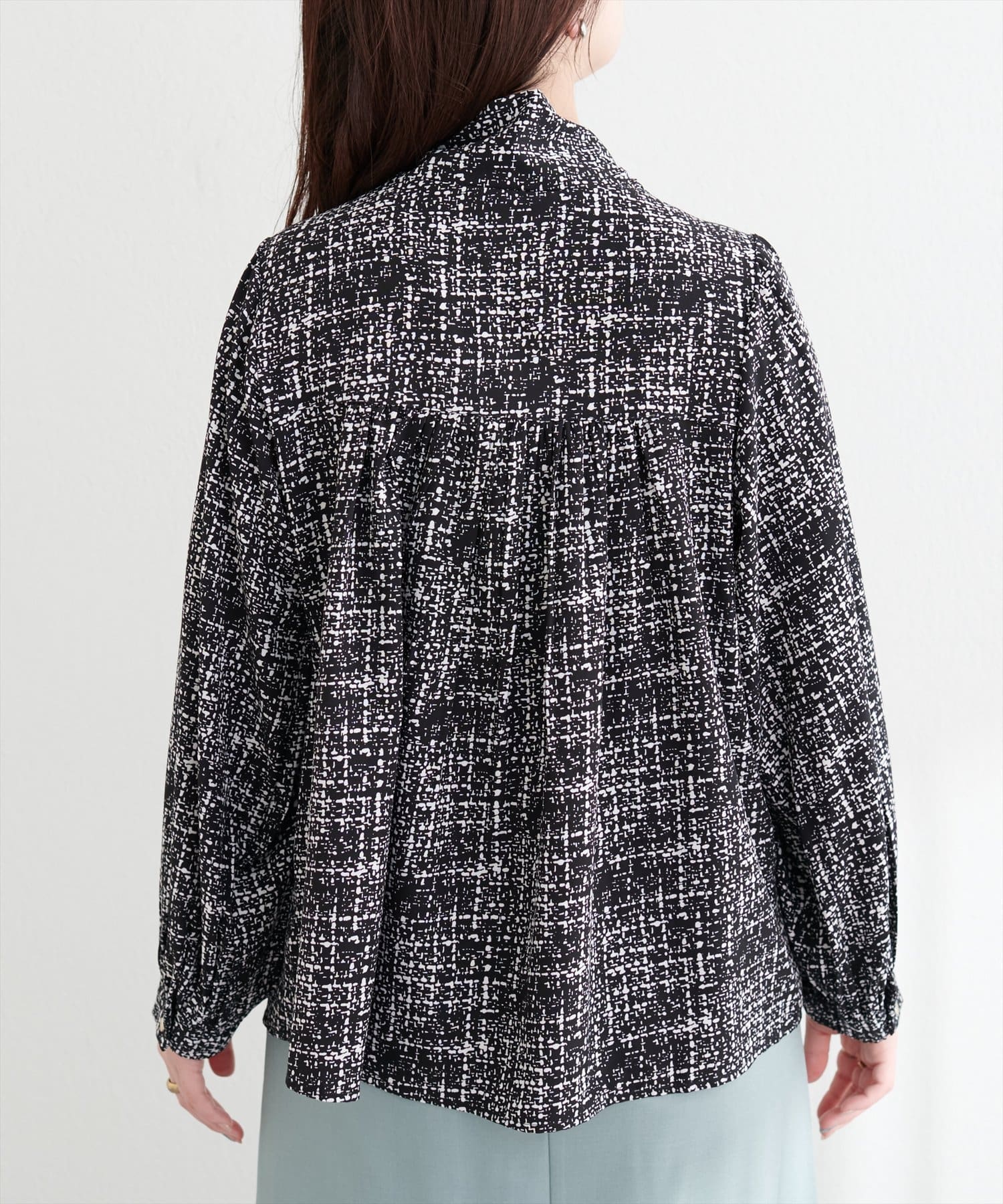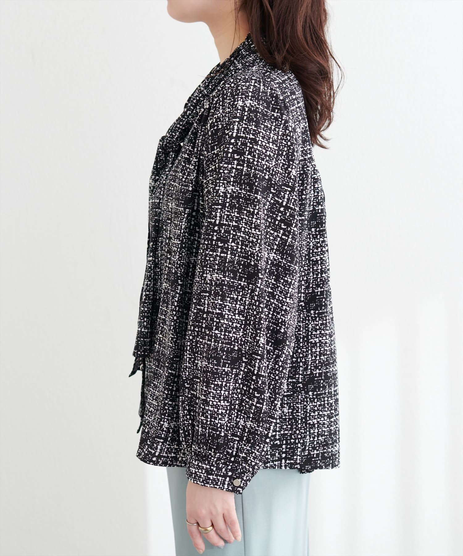 シンプルなノーカラーデザインをアップデートし、上品なリボンタイをプラスしました。