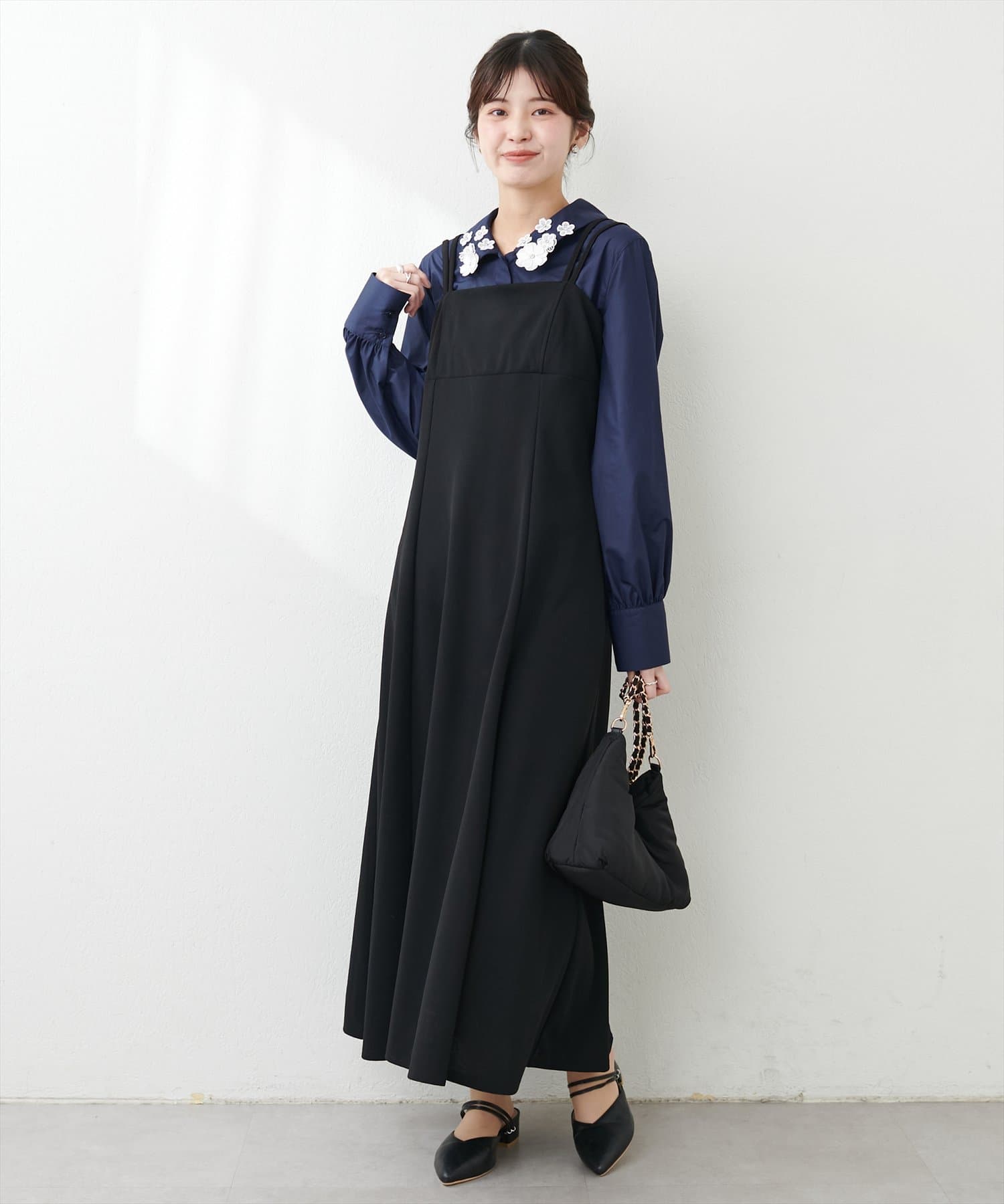 1枚ではもちろん、レイヤードで衿ぐりのお花を覗かせるスタイルもおすすめ。