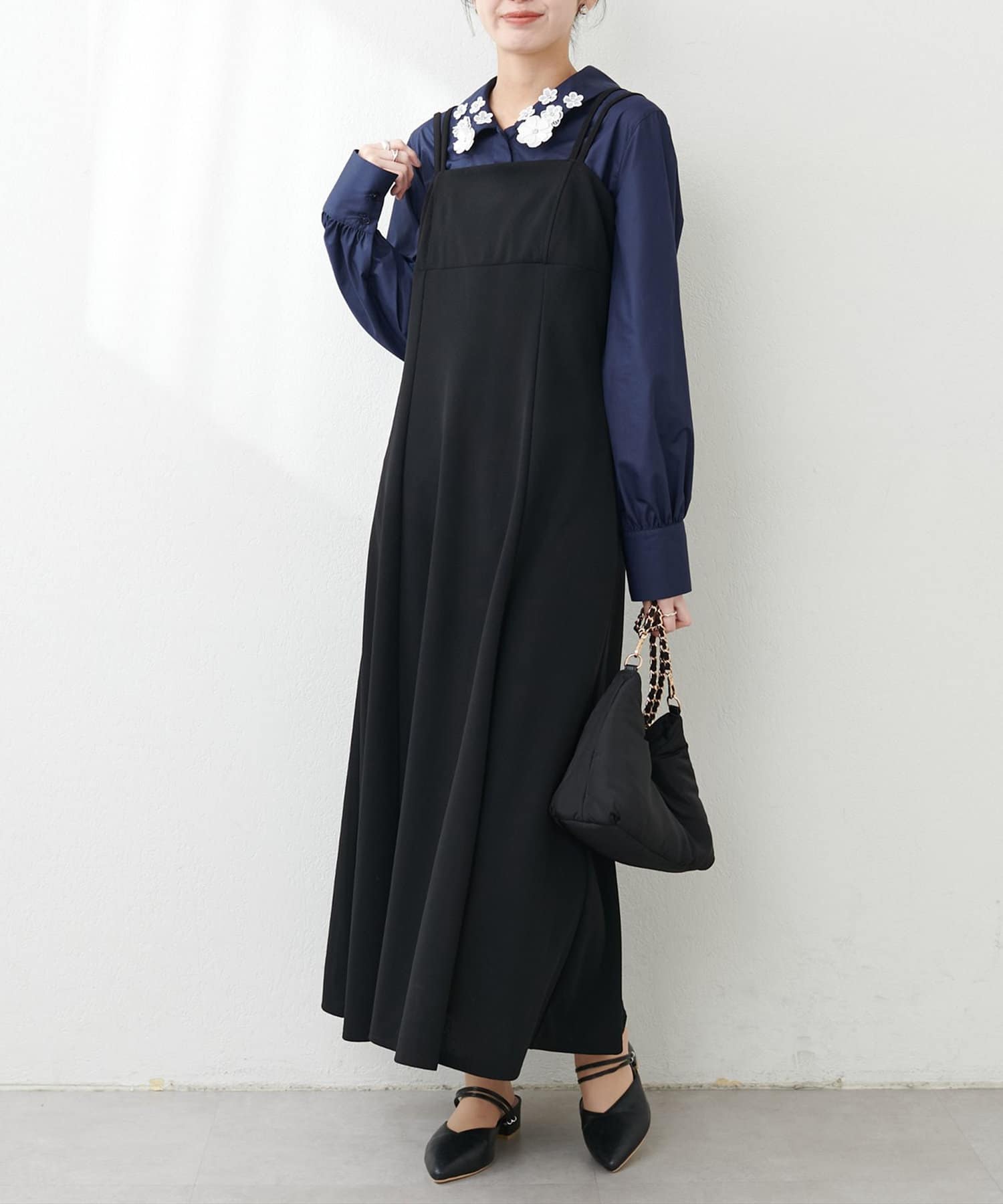 1枚ではもちろん、レイヤードで衿ぐりのお花を覗かせるスタイルもおすすめ。