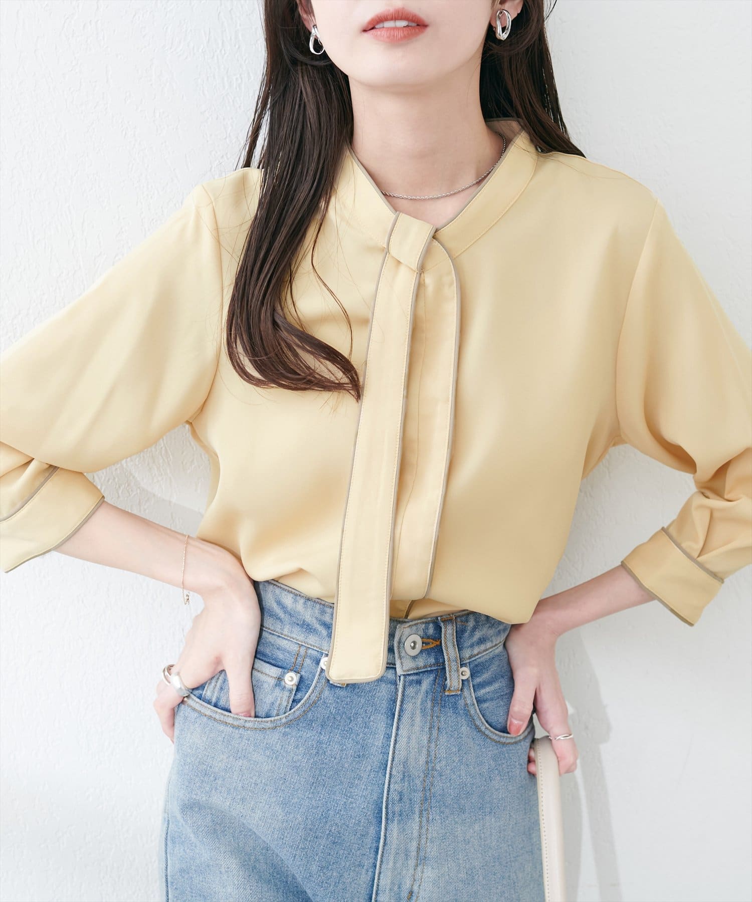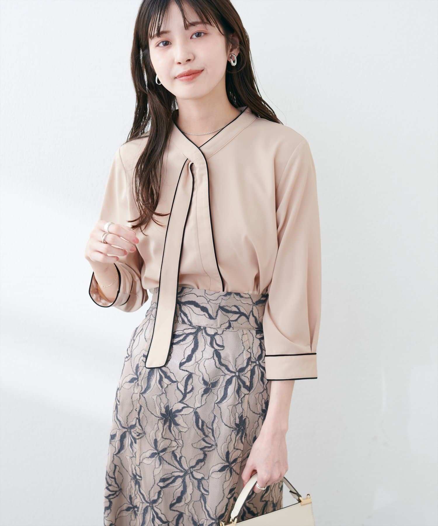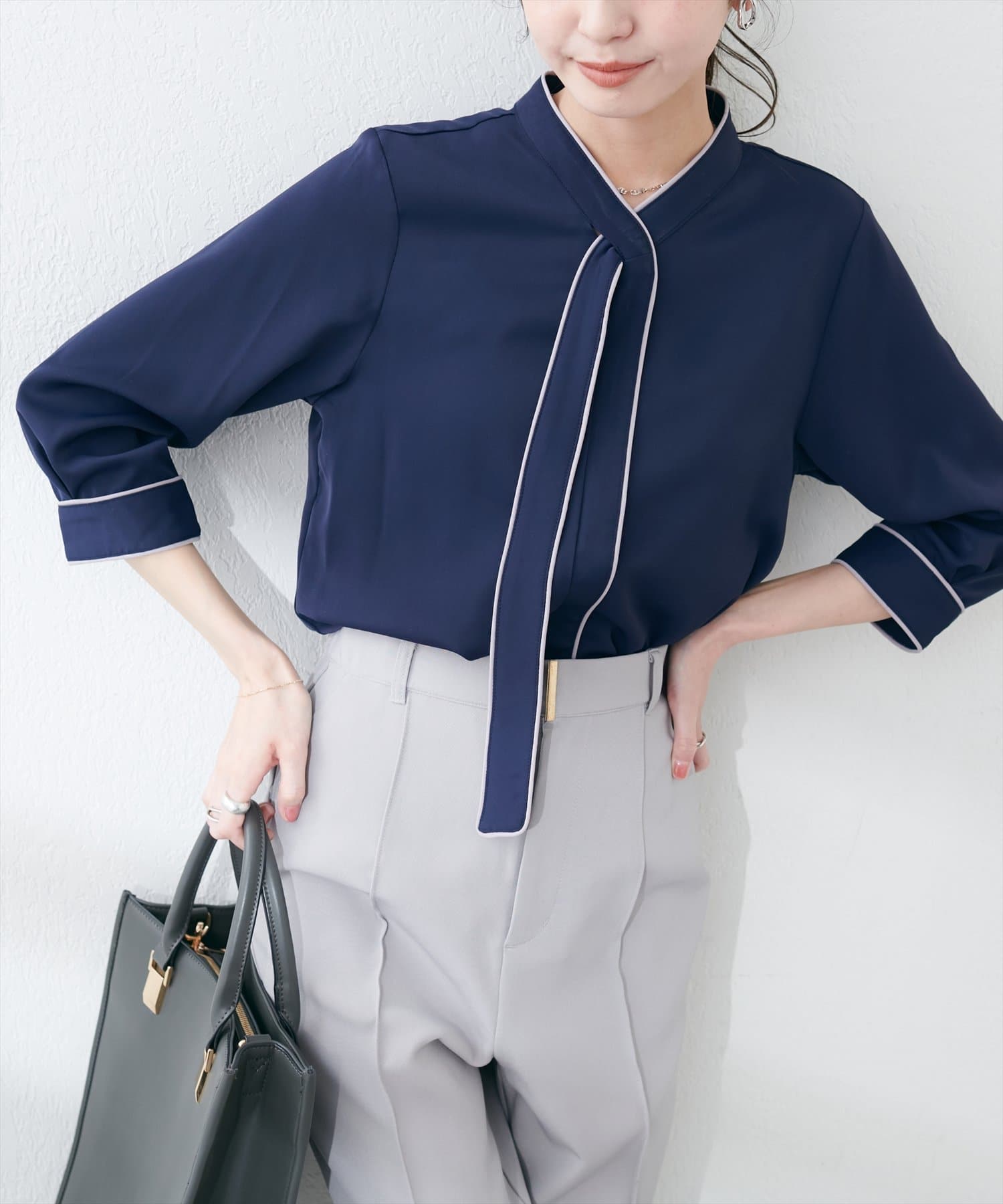 コーデが上品に仕上がる ねじり配色ボウタイブラウス