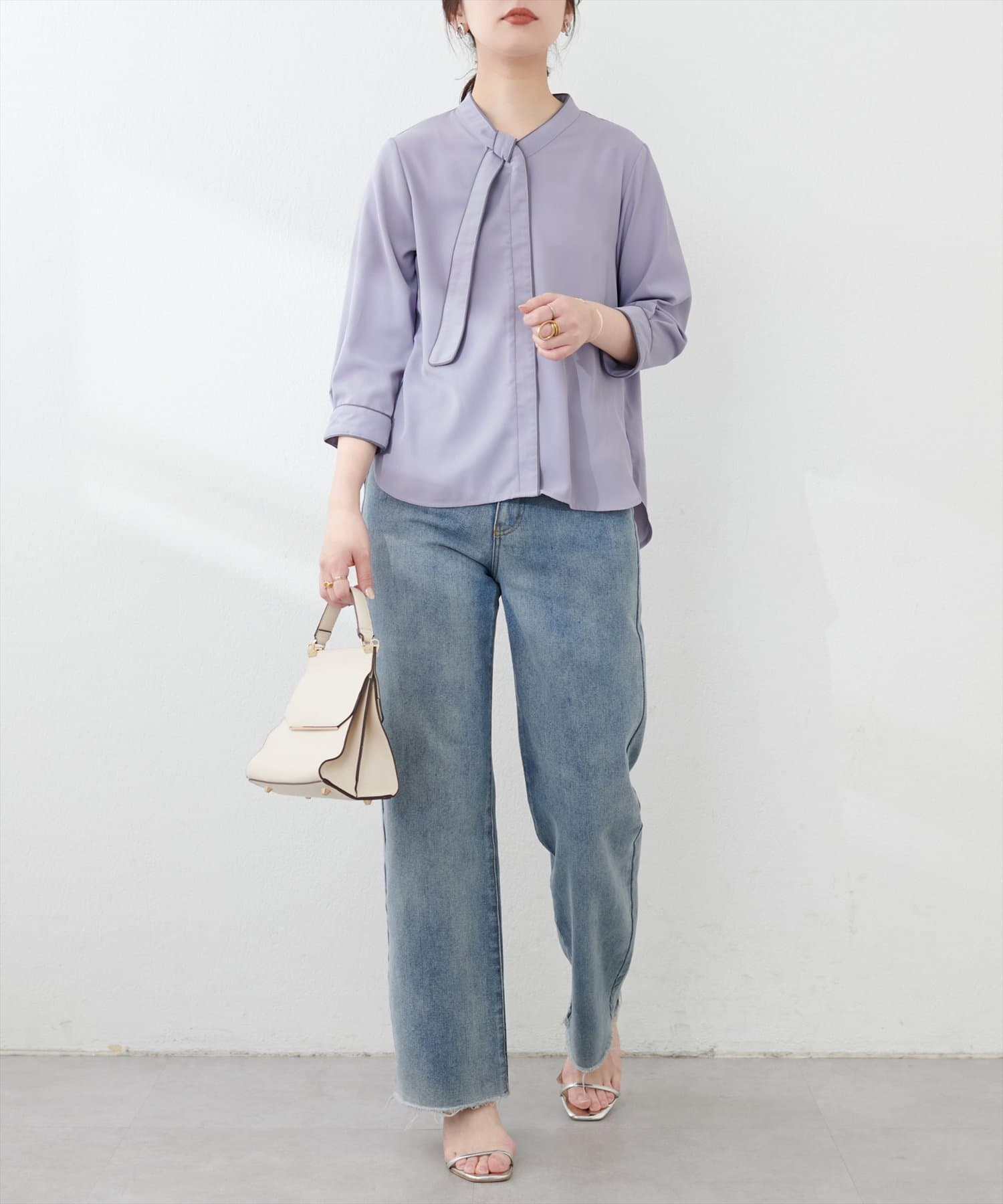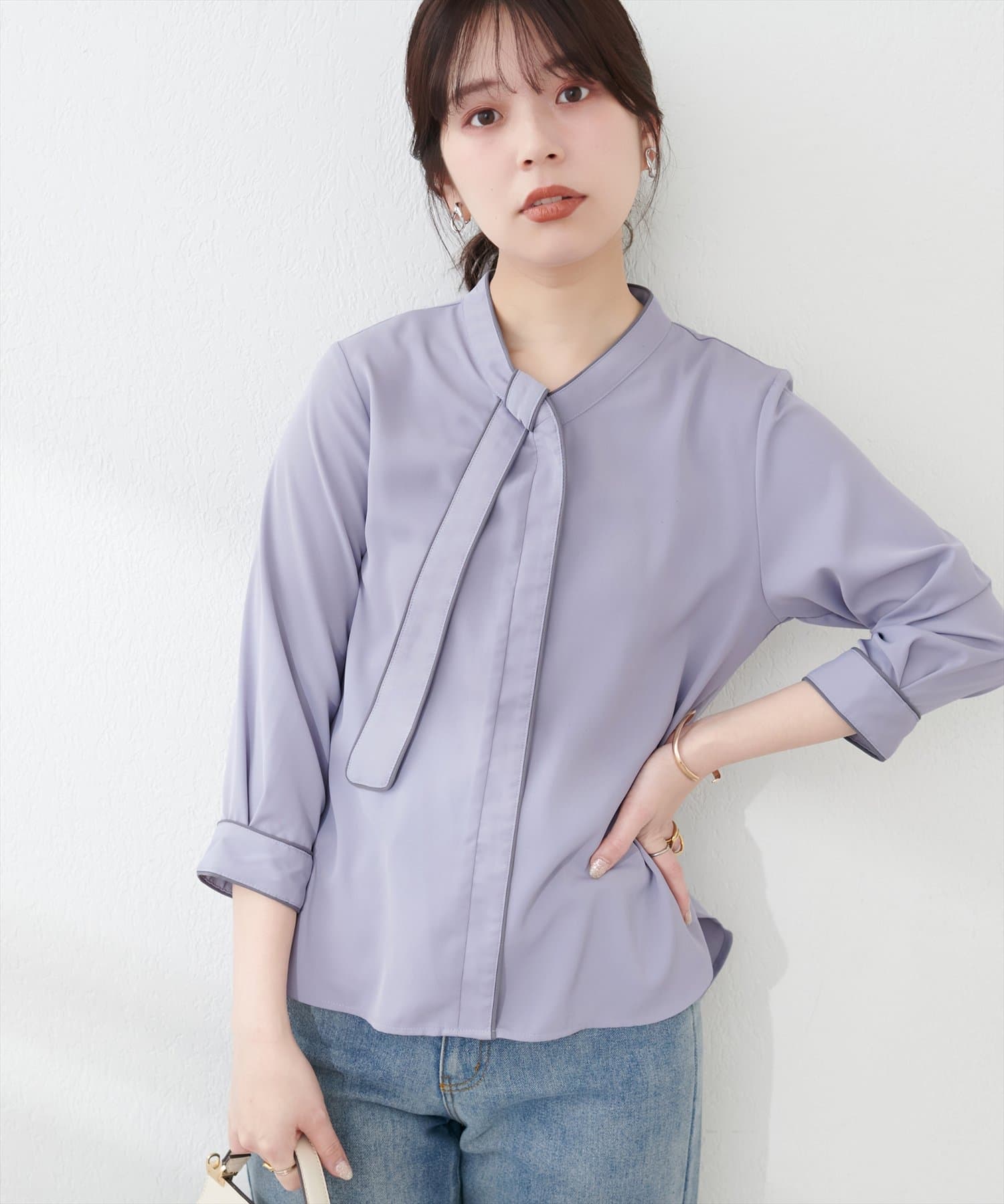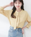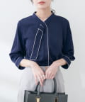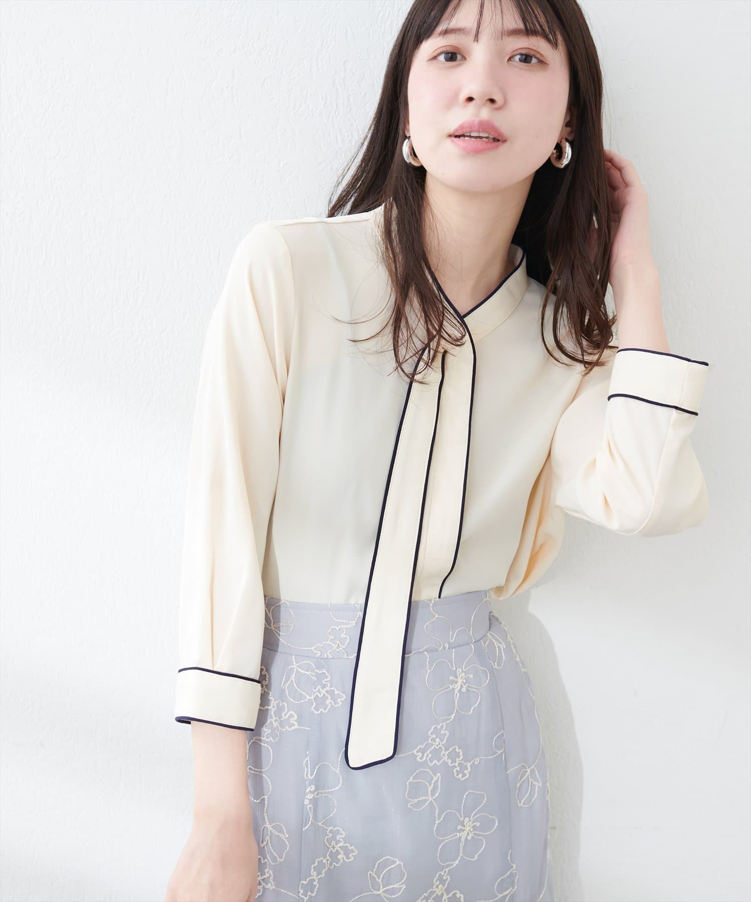 コーデが上品に仕上がる ねじり配色ボウタイブラウス
