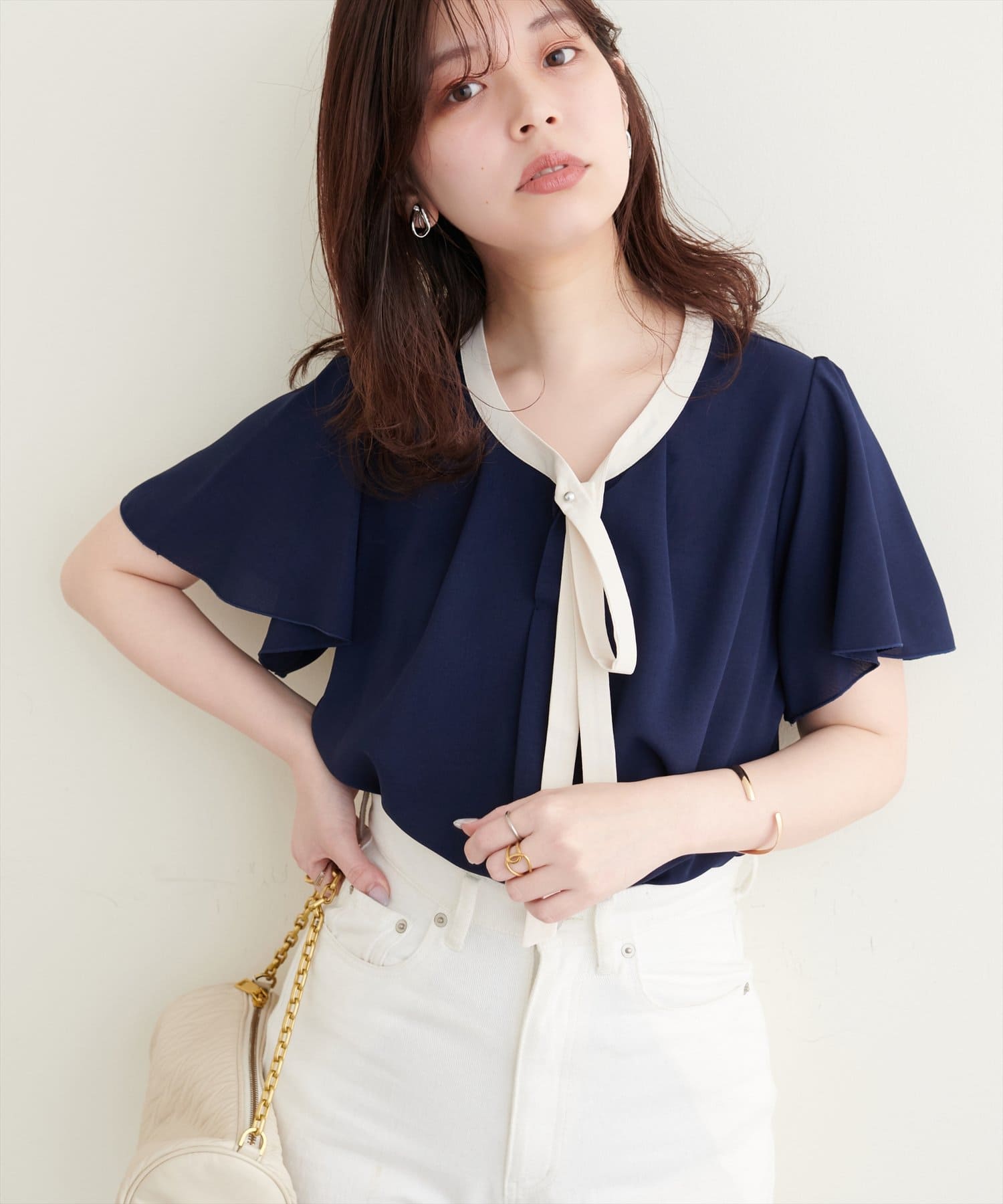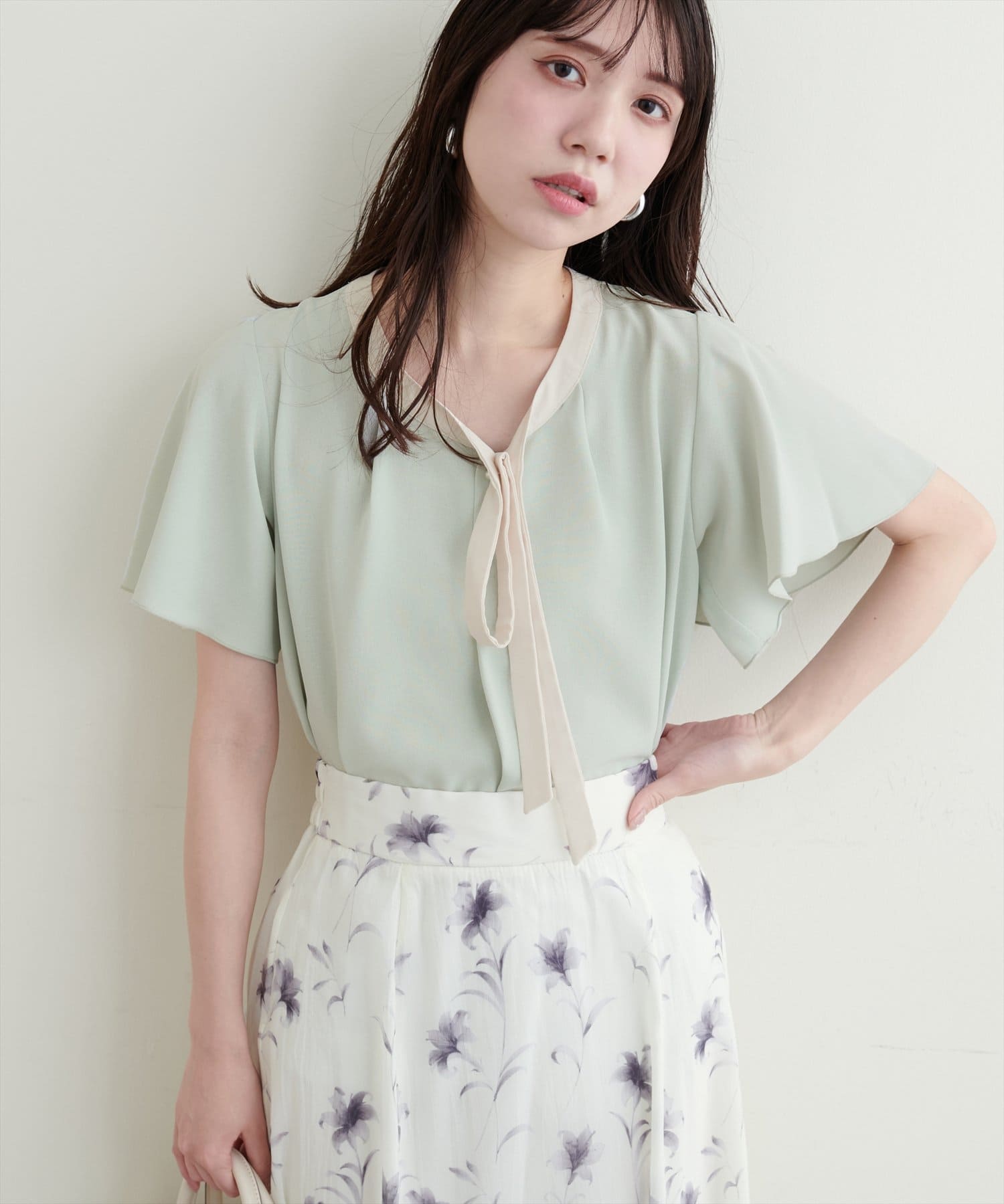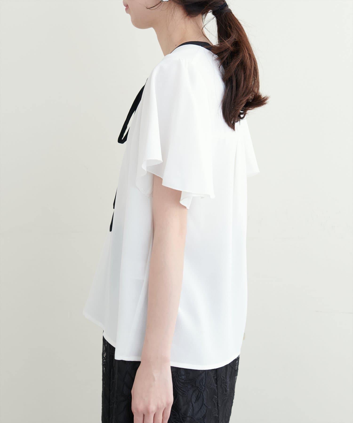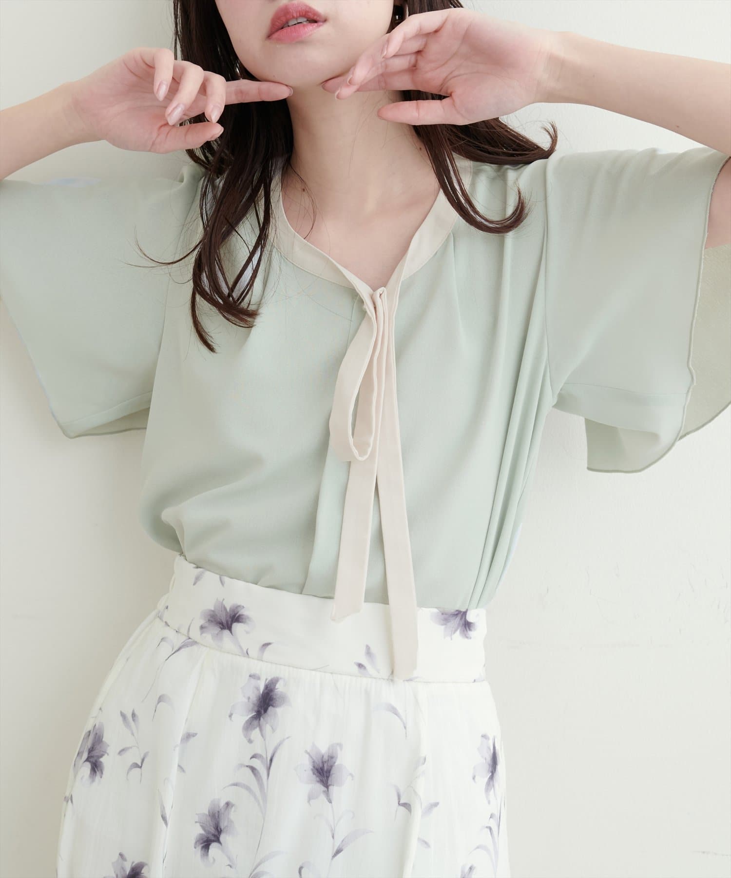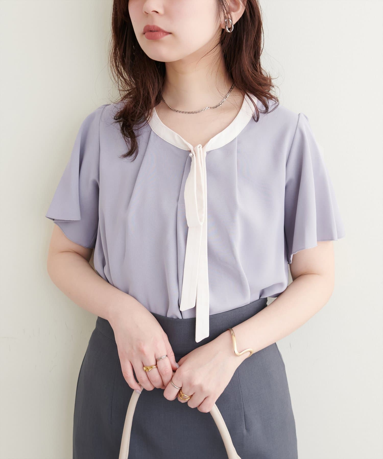 【WEB限定】配色リボンタイフレアスリーブブラウス