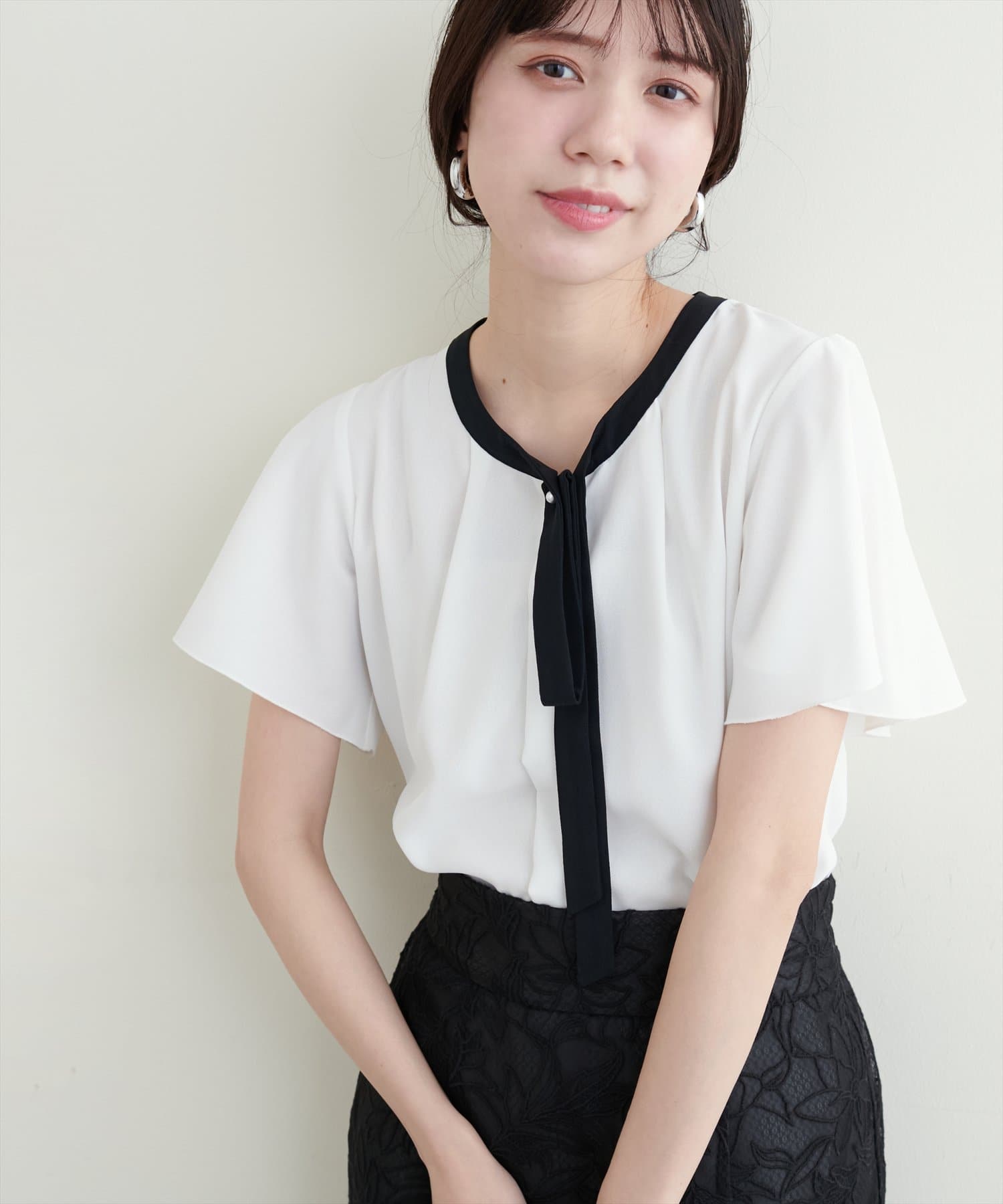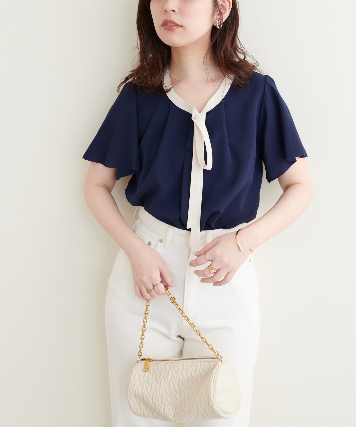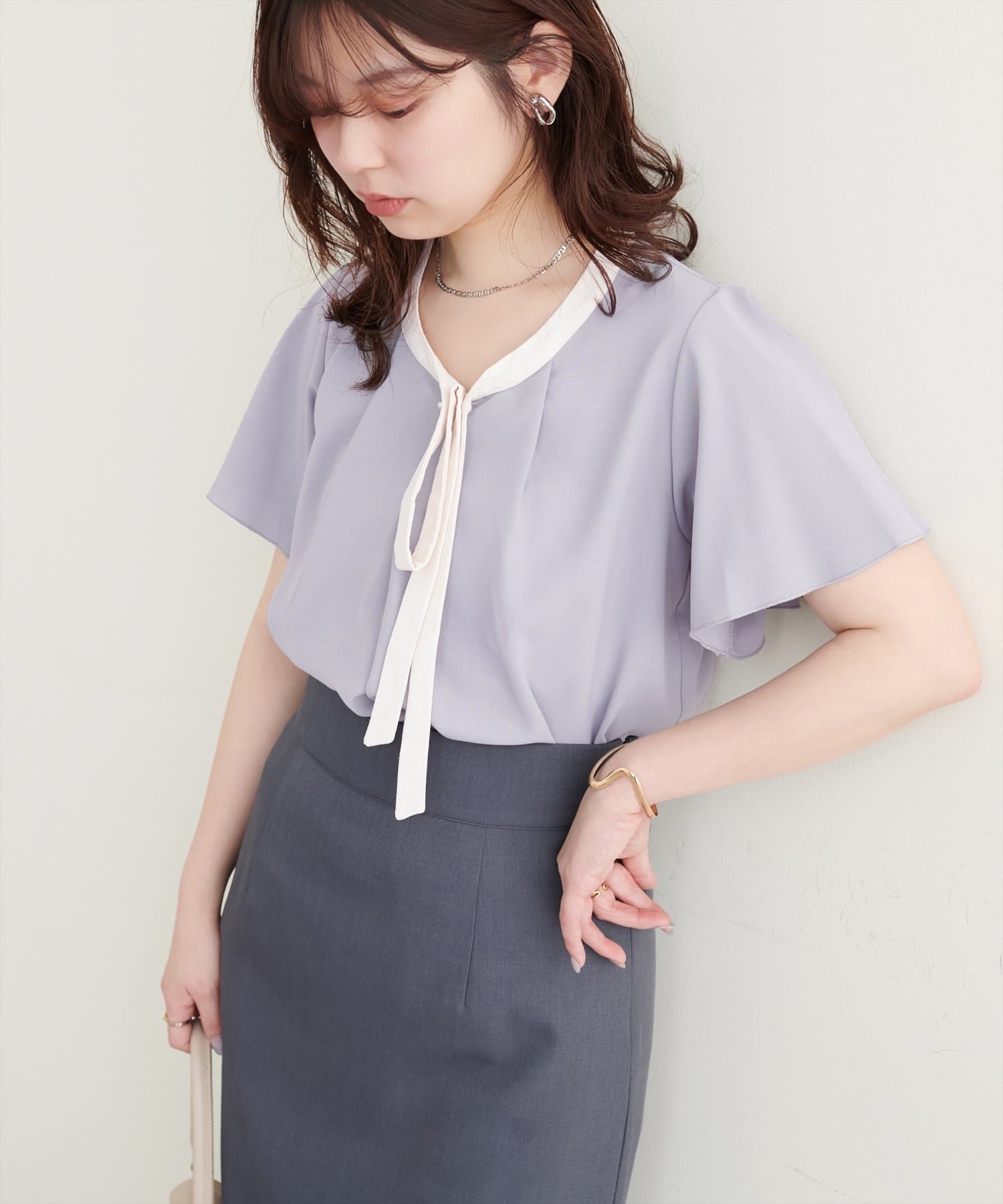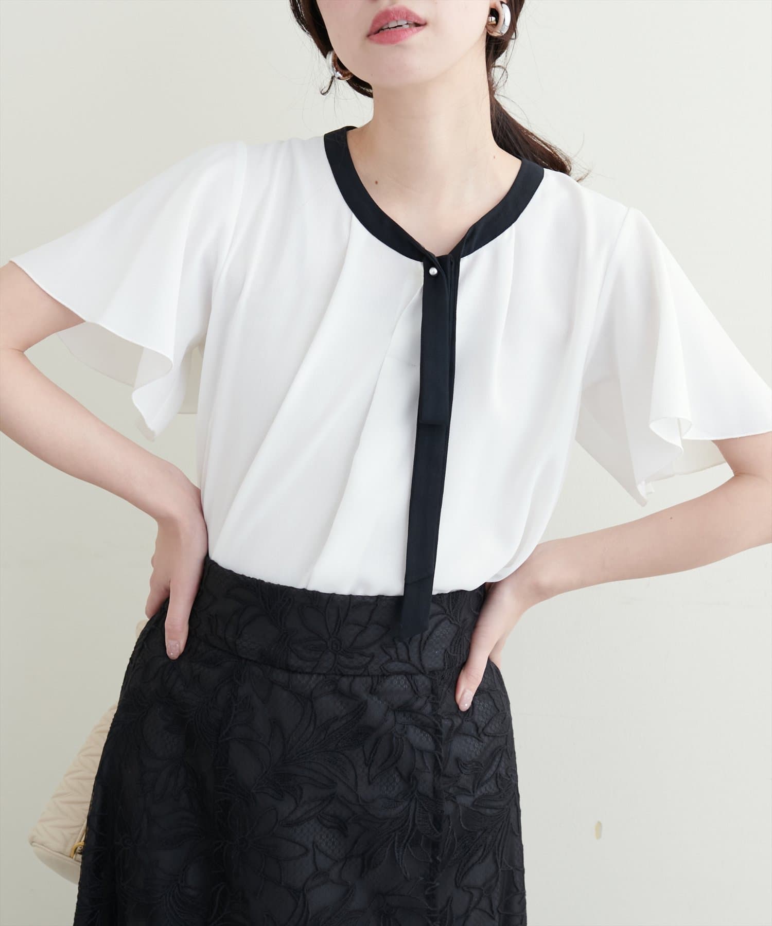 【WEB限定】配色リボンタイフレアスリーブブラウス