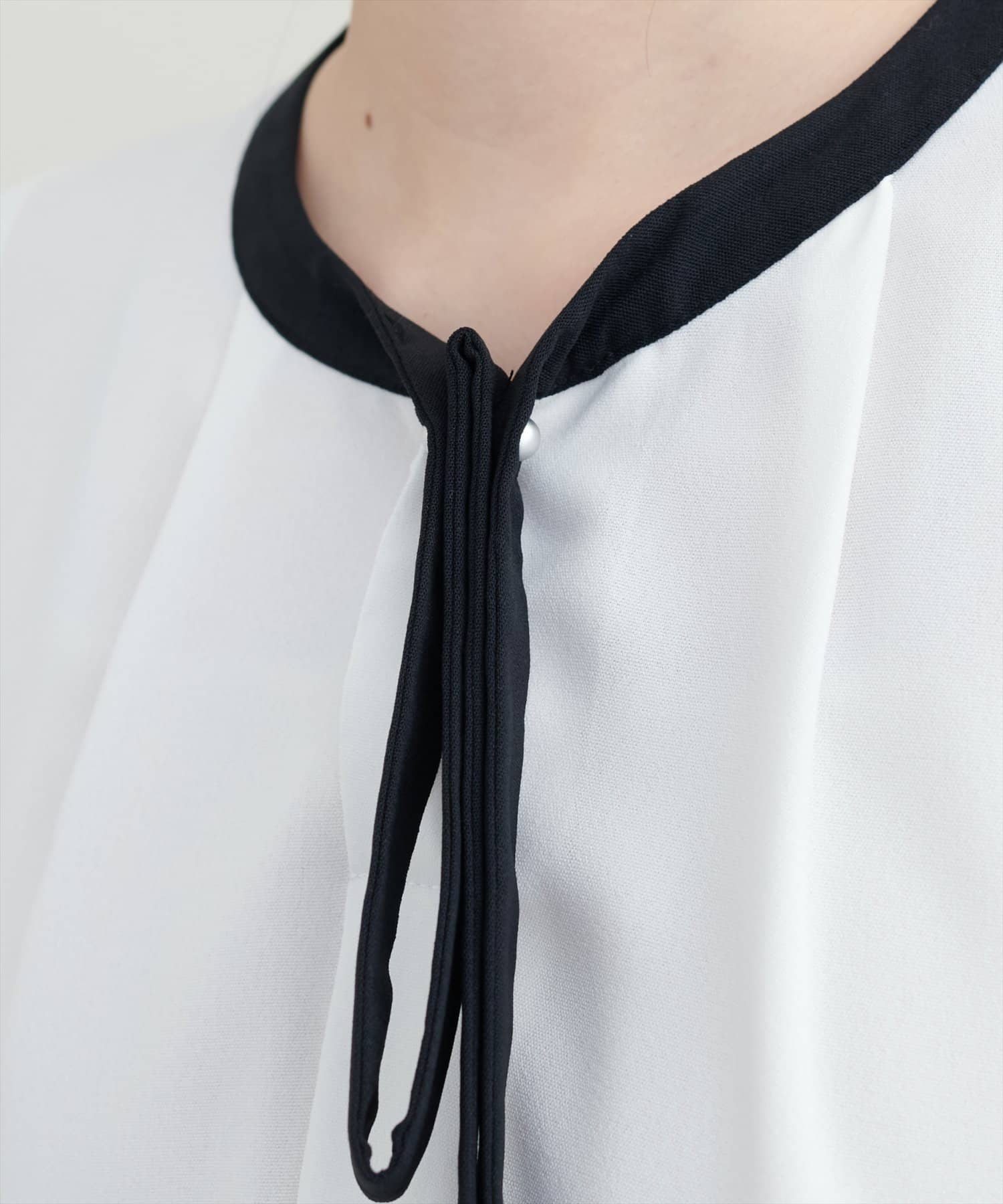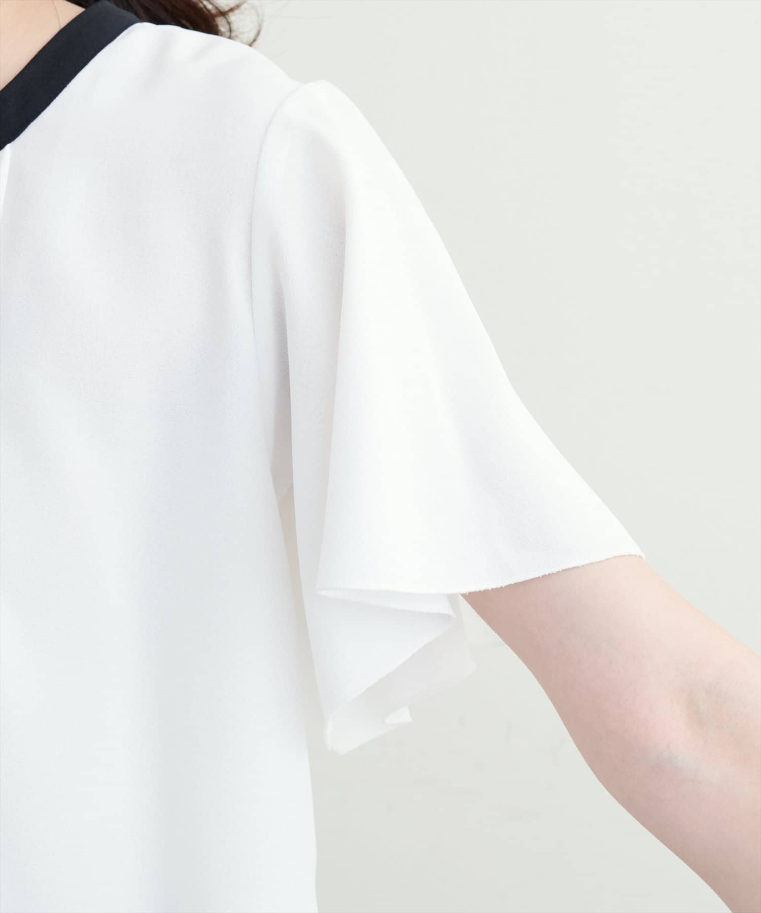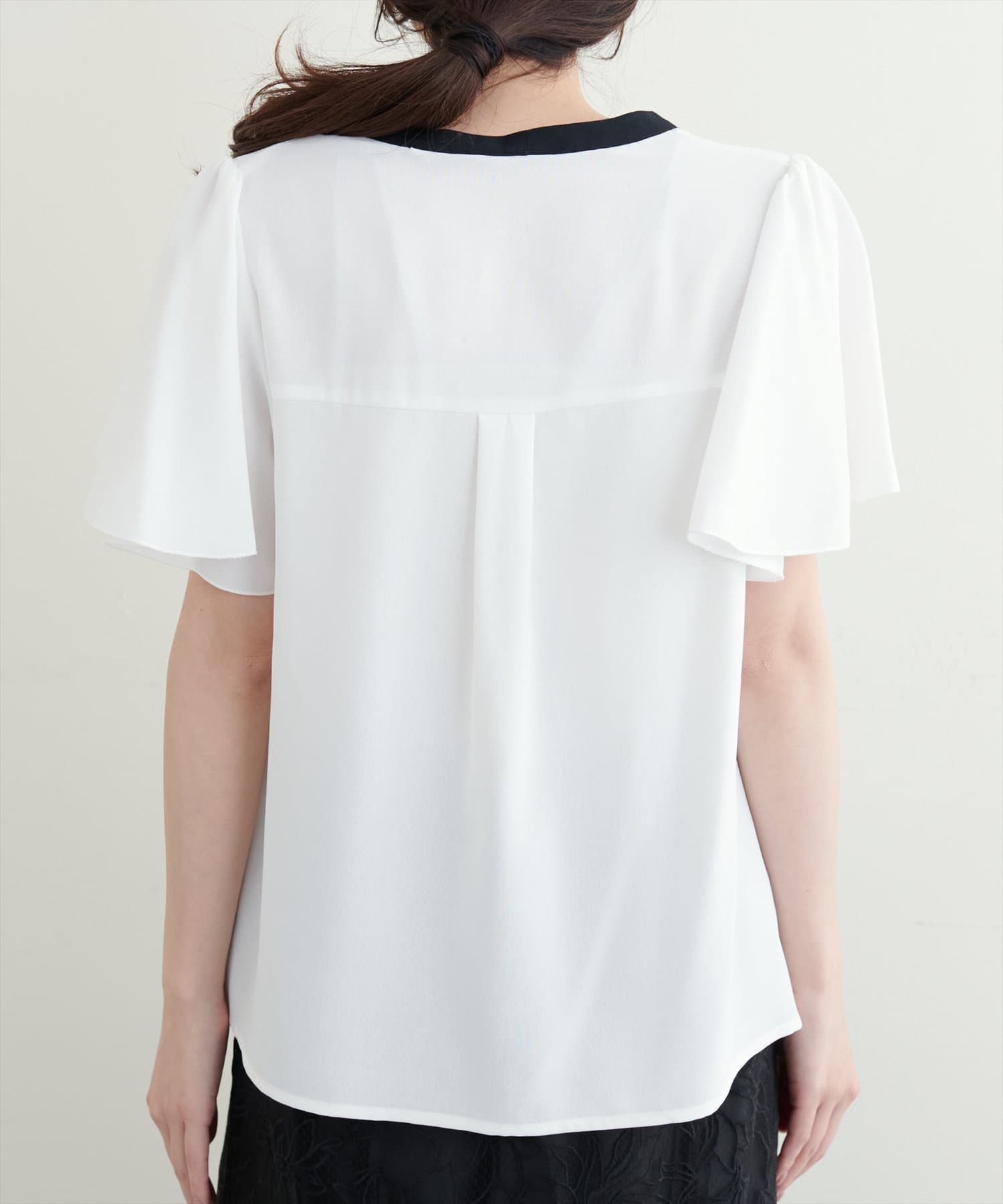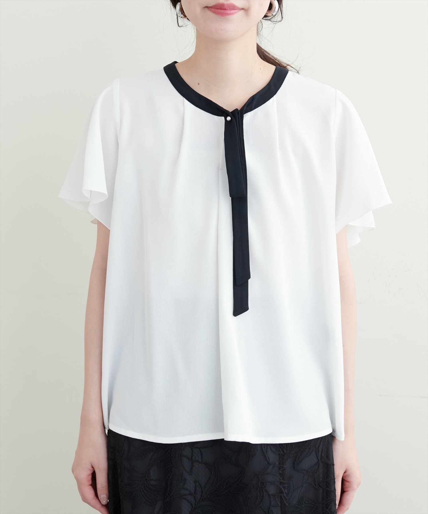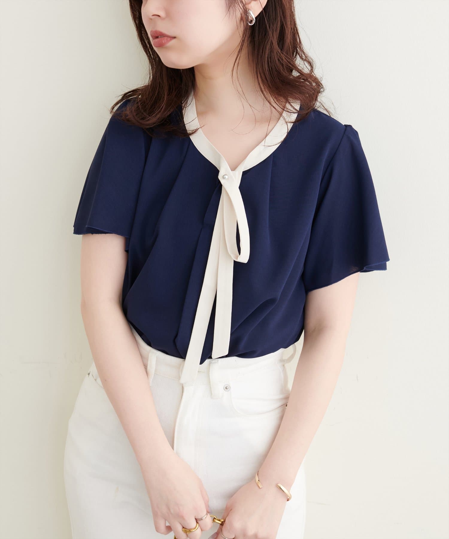 【WEB限定】配色リボンタイフレアスリーブブラウス
