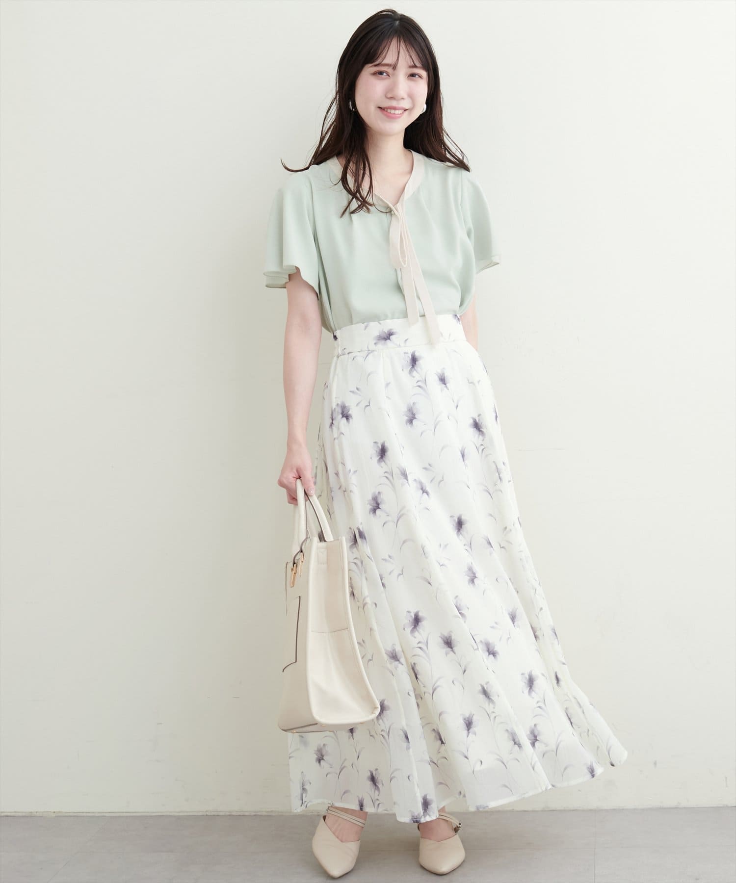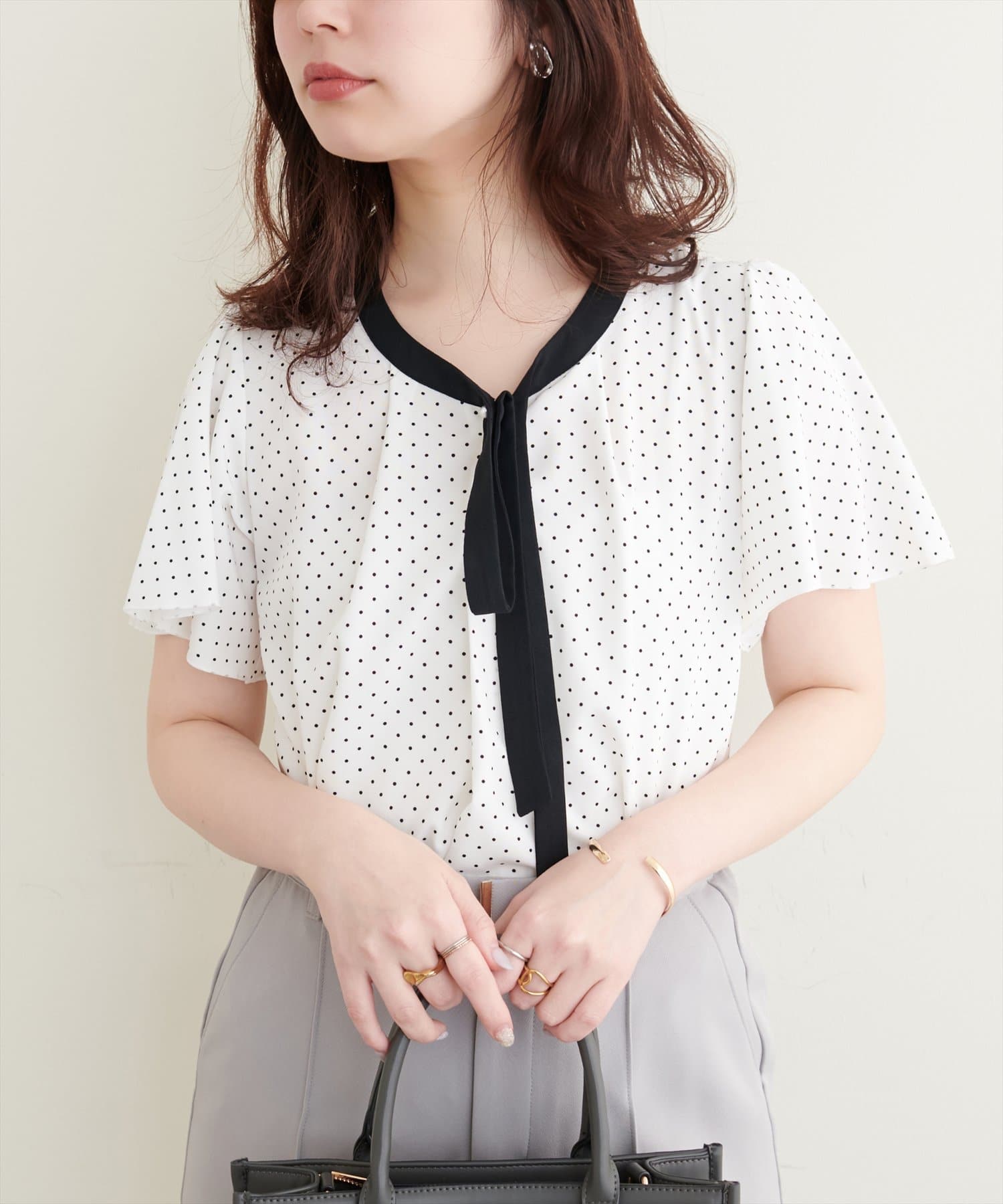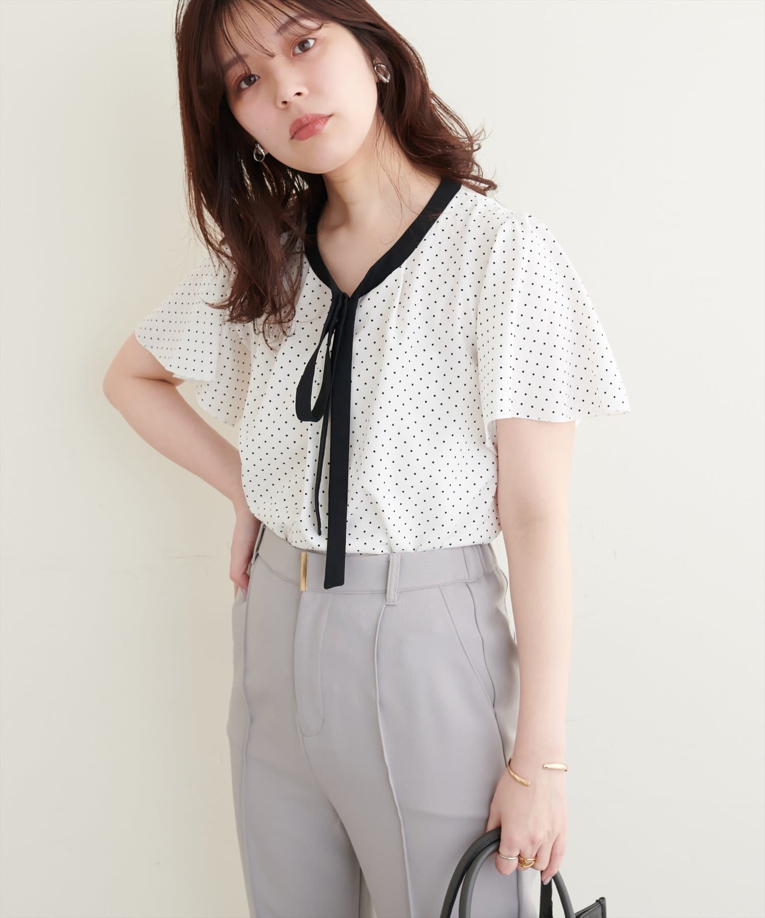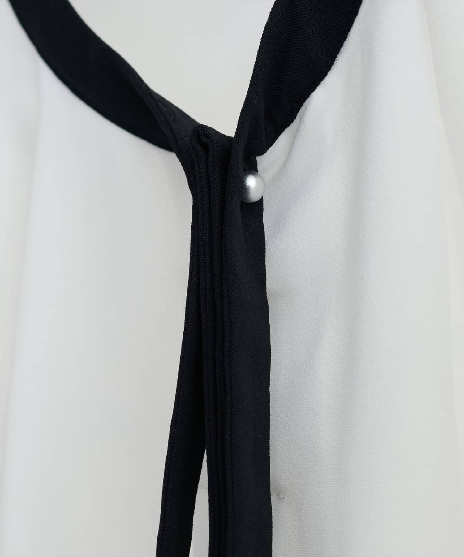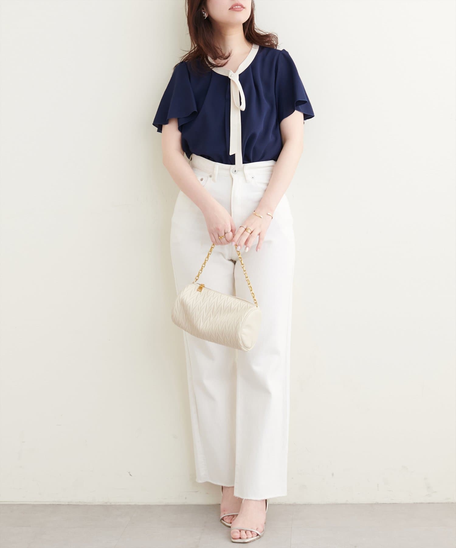 【WEB限定】配色リボンタイフレアスリーブブラウス